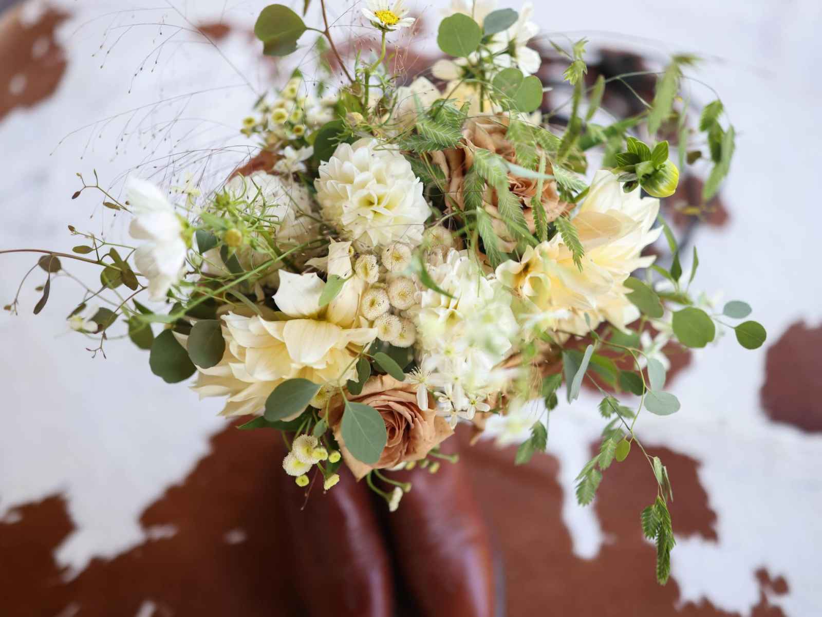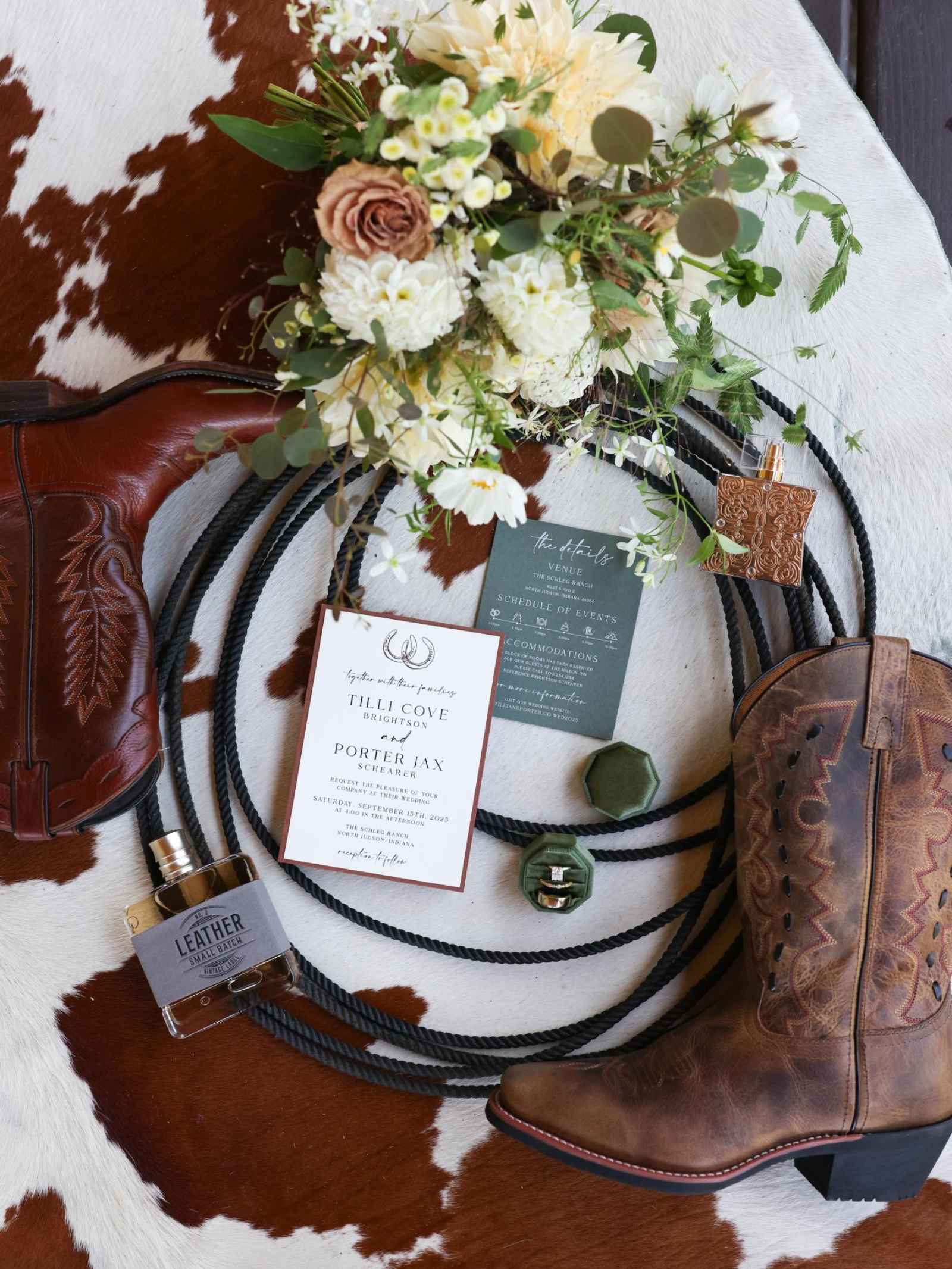 Pantone’s 2025 Color of the Year, Mocha Mousse, was seamlessly woven throughout the design. From thoughtfully styled flatlays to lush florals featuring mocha mousse roses and hydrangeas, earthy neutral tones glowed beautifully in the golden autumn light. The palette felt organic yet elevated—proof that western can absolutely be luxurious!