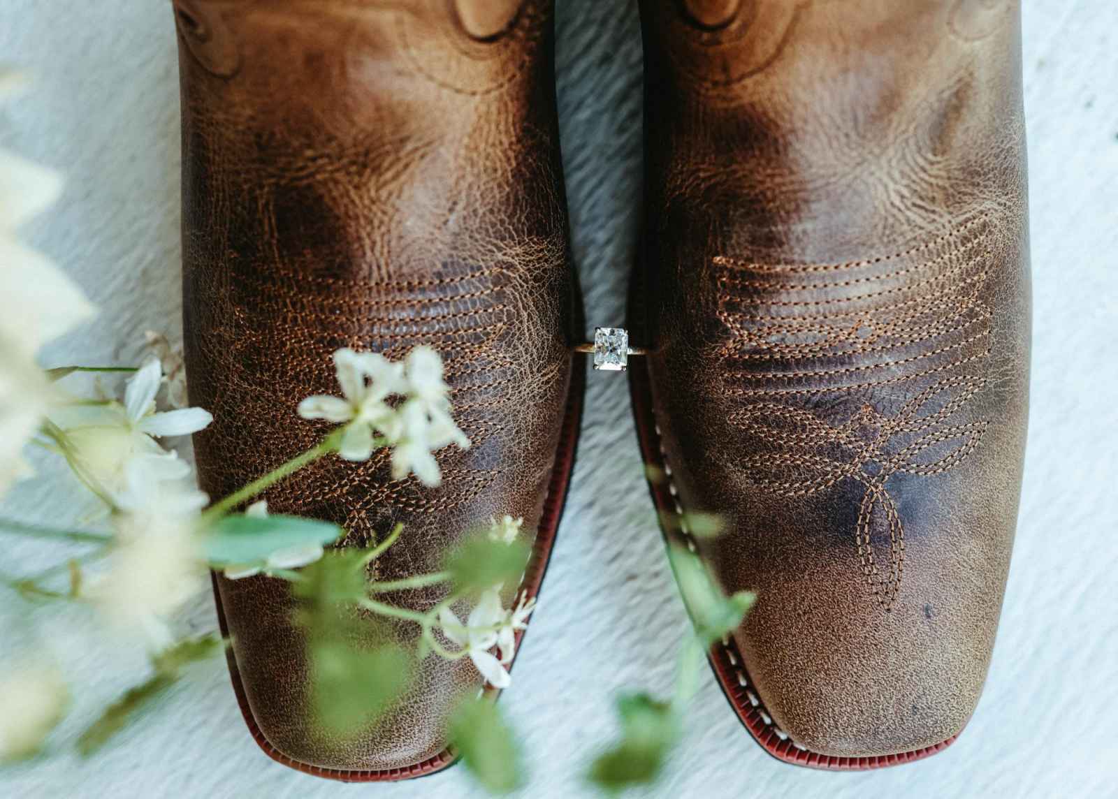 The venue—a stunning horse ranch—was an easy choice. The juxtaposition of rustic, broken-in boots and weathered horseshoes against a brand-new wedding gown created visual poetry. Stalls, open pastures and textured wood elements added depth and richness, helping to fully develop the narrative of Wildly in Love.
