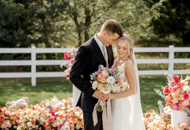 Allyson Hutchison | September 10, 2025For their wedding, Liz and Jordan wanted to highlight the flowers that Liz's family works hard to grow. That said, they wanted to find a simple yet elegant venue that provided them with an indoor and outdoor option and a beautiful design so they could properly focus on the florals.