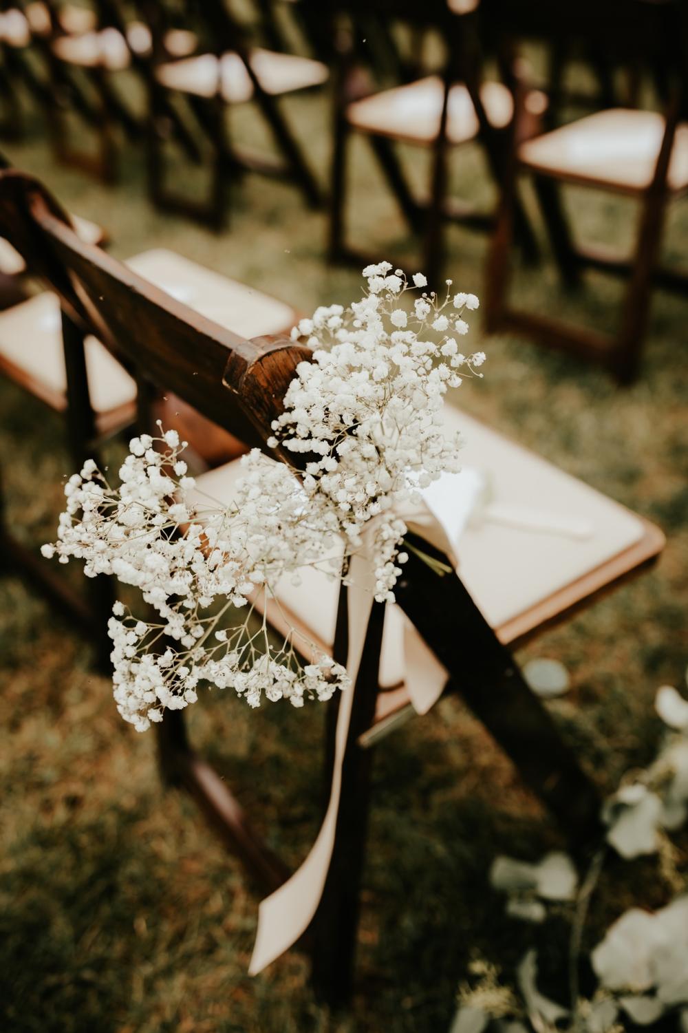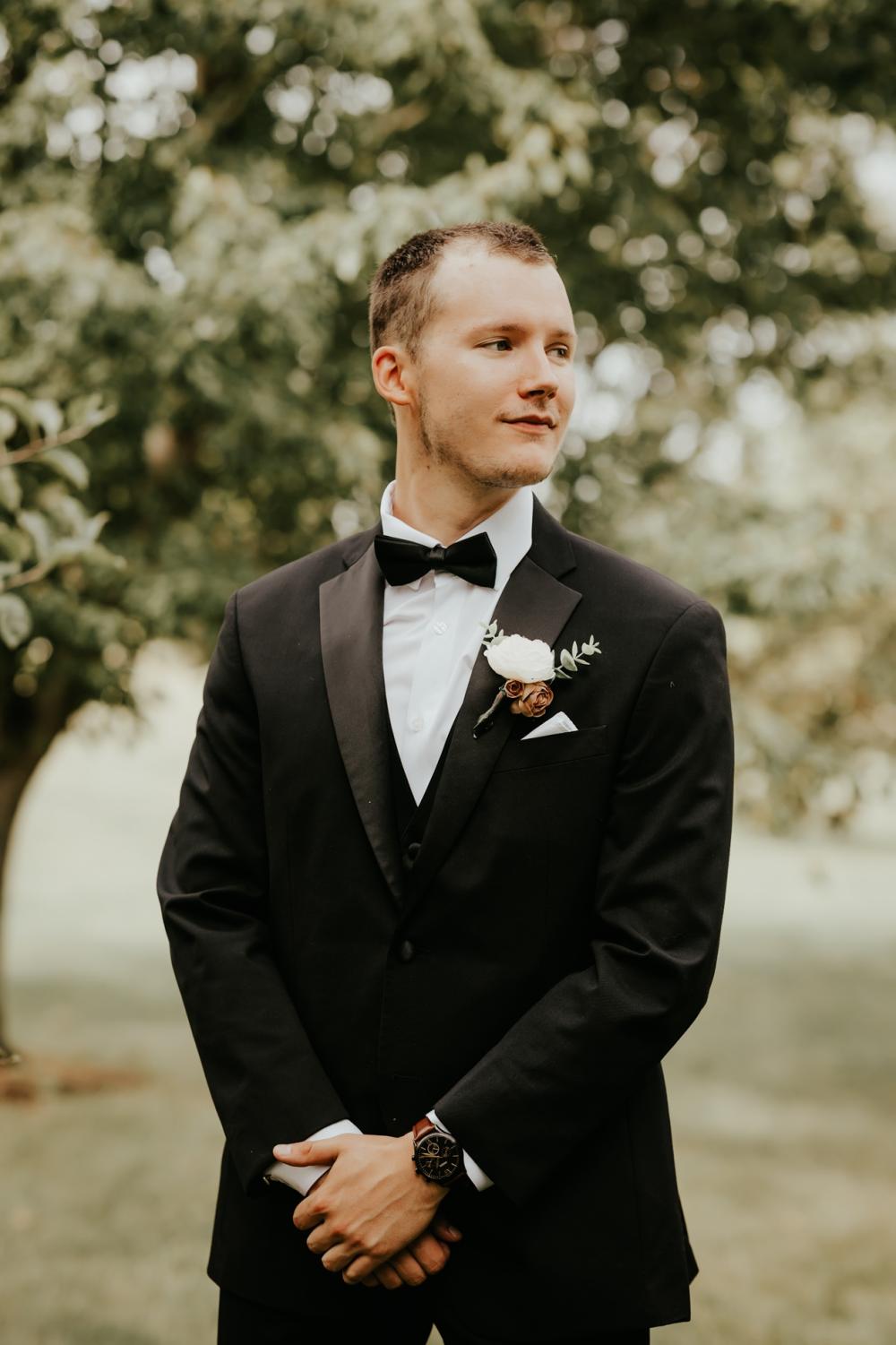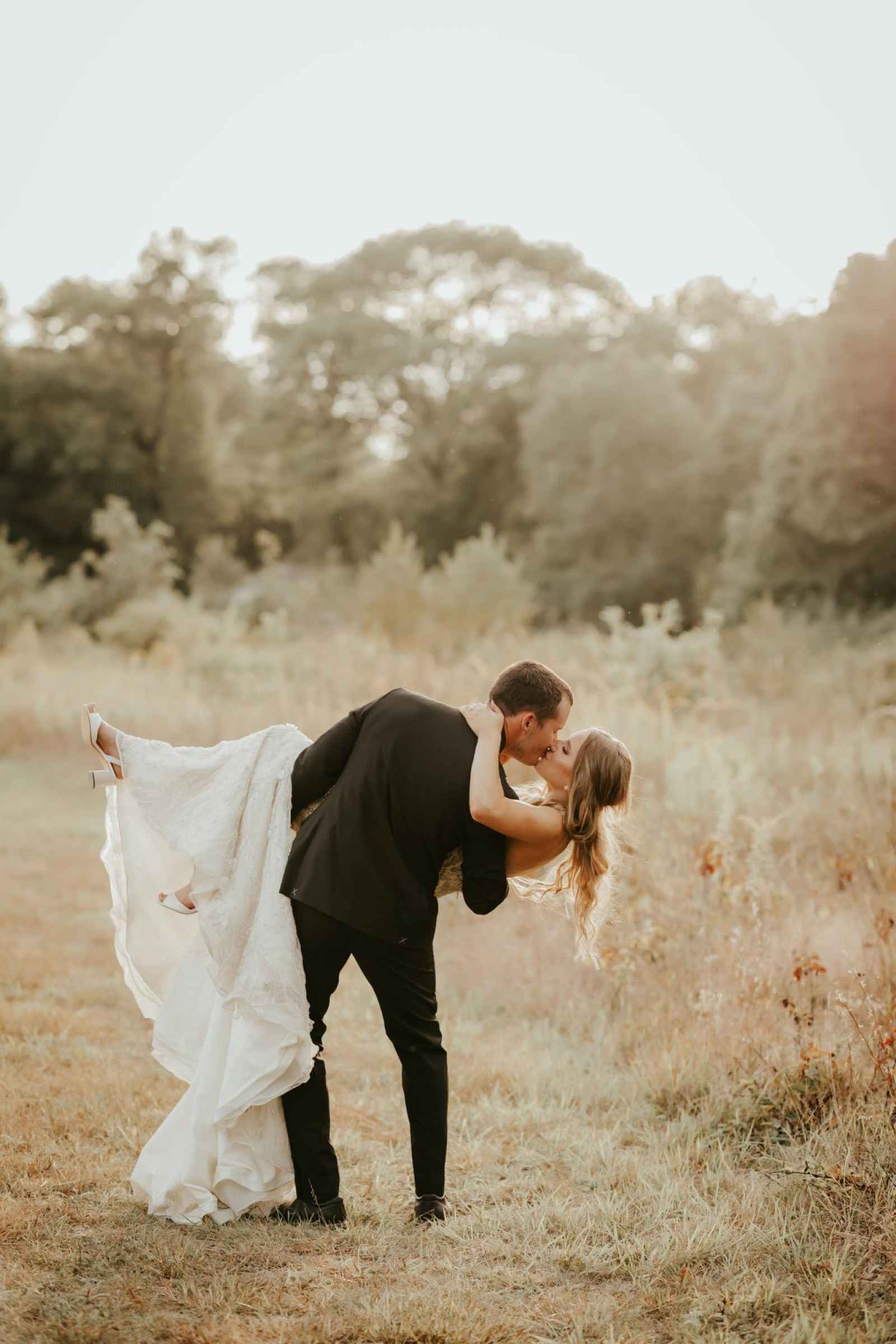 Look at all the intricate details in Maddie's dress! "When I began this process I had no clue what style I even wanted. This was the first shop I looked at and my mother-in-law pointed out this dress that was away from the others hanging on the wall. This was the very first dress I tried on and nothing else compared," Maddie gushes. Even though Maddie looked at dresses in seven other shops, her mind kept drifting to that first one she tried on. We are obsessed with the subtle details in the gown that add so much texture and dimension to her look! It's the perfect gown for their elegantly rustic wedding.