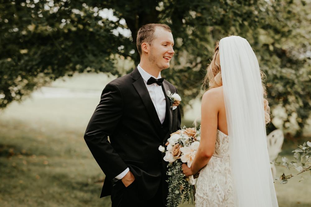 For Maddie and Ben, planning began a month after they got engaged. The first thing on their list was to find their wedding date and book a venue. The one they ended up choosing included a coordinator, which helped immensely with their planning. The rest of their vision came together through the use of social media. "We decided on Danielle Schury Photography after checking out her galleries on Instagram. She totally fit the vision for the type of photos I wanted!" Maddie raves. "Danielle also referred us to our incredible DJ and we were so pleased!"
