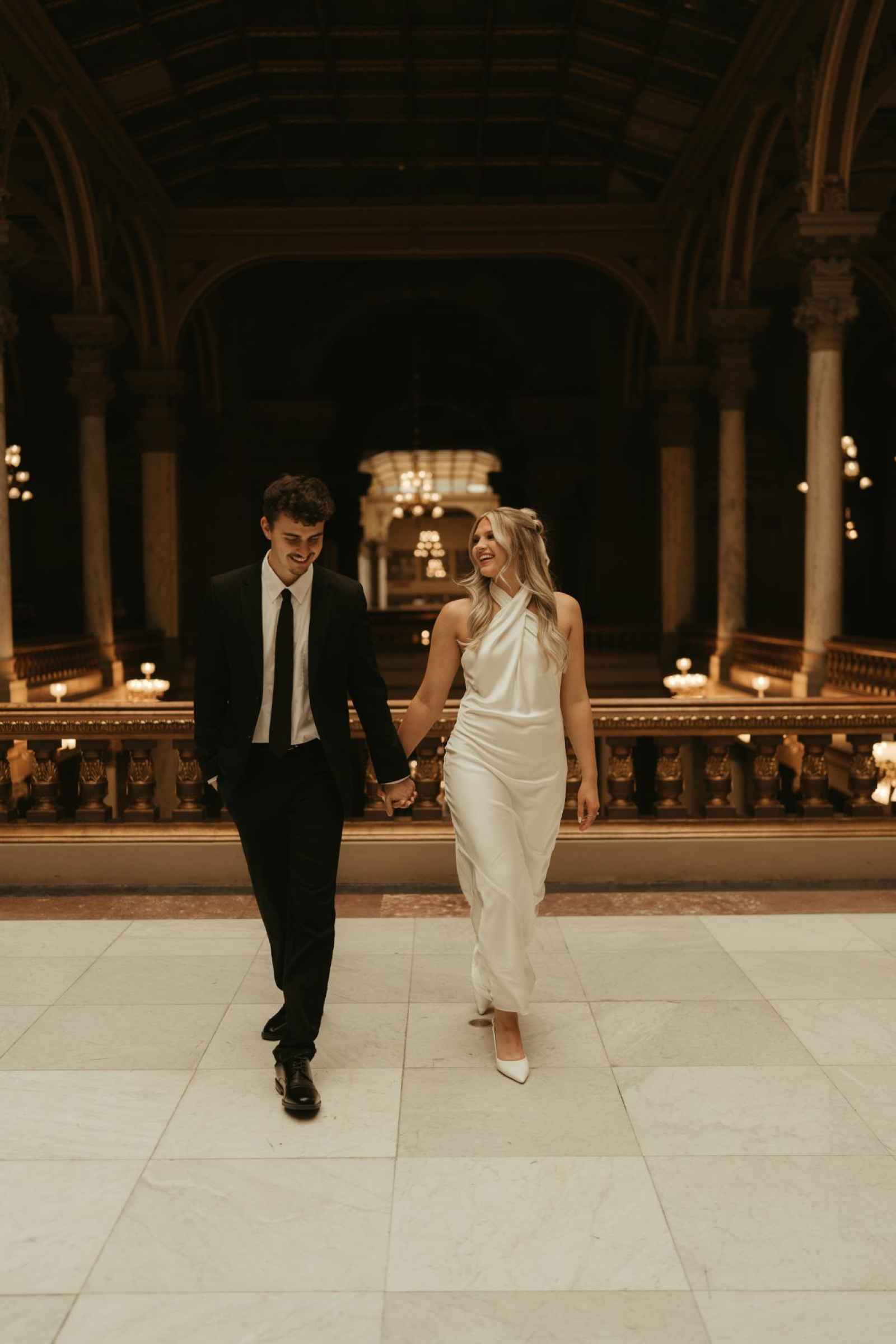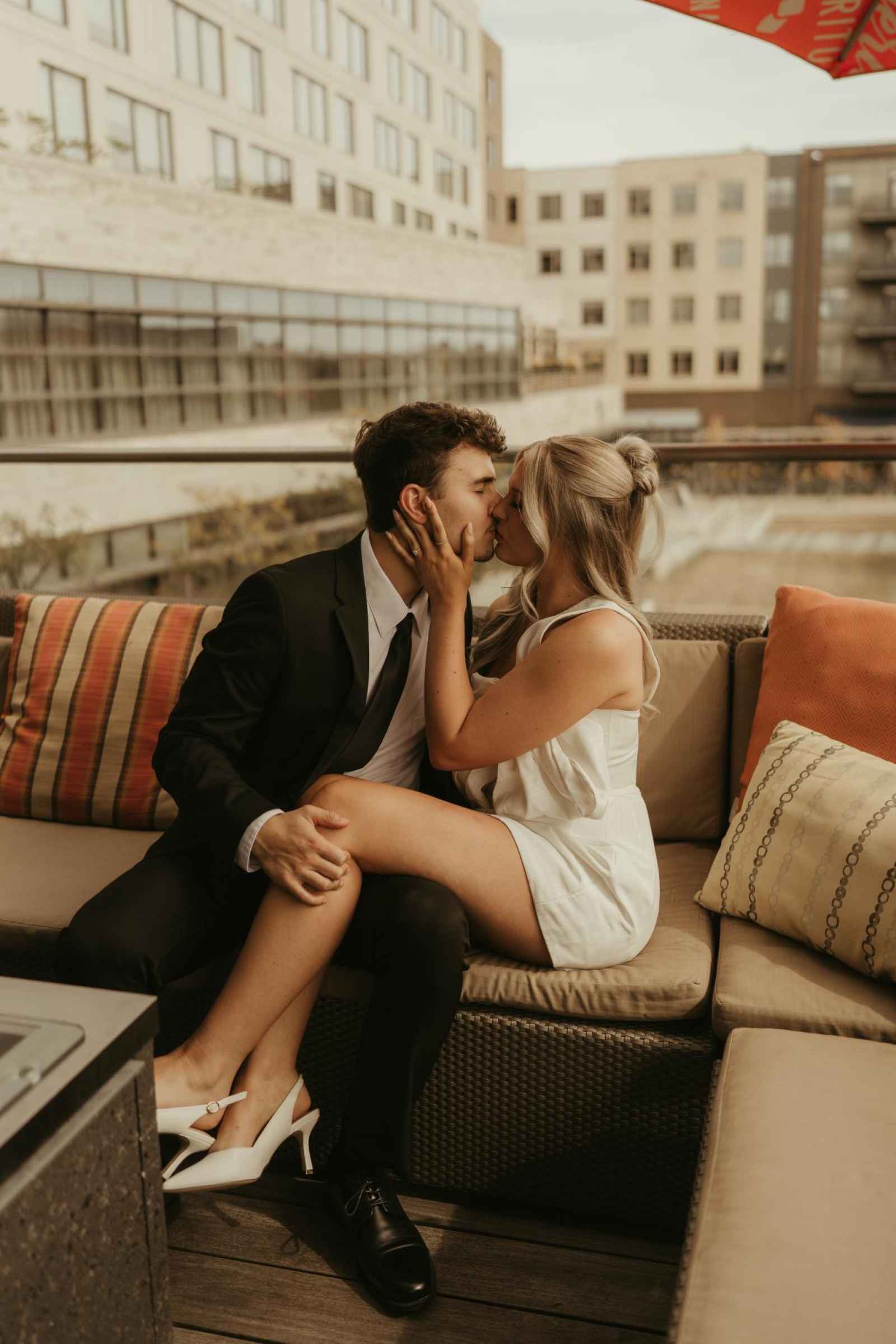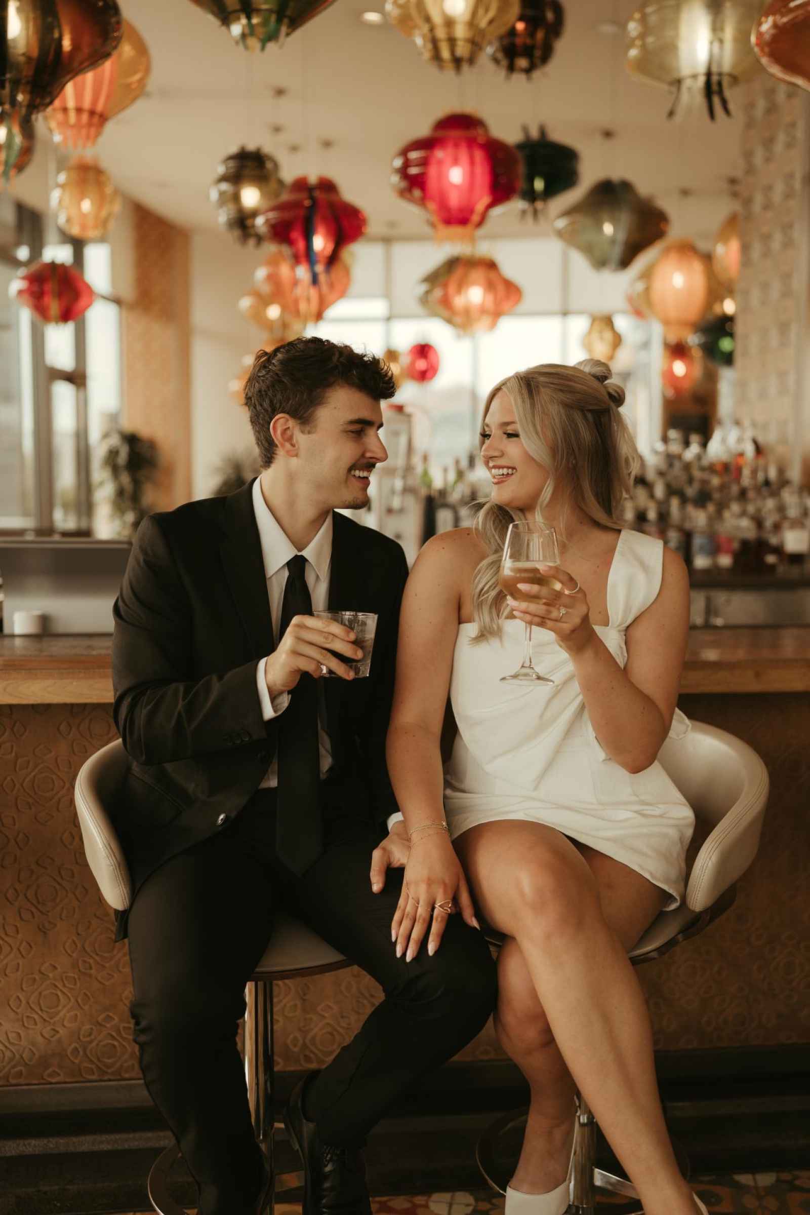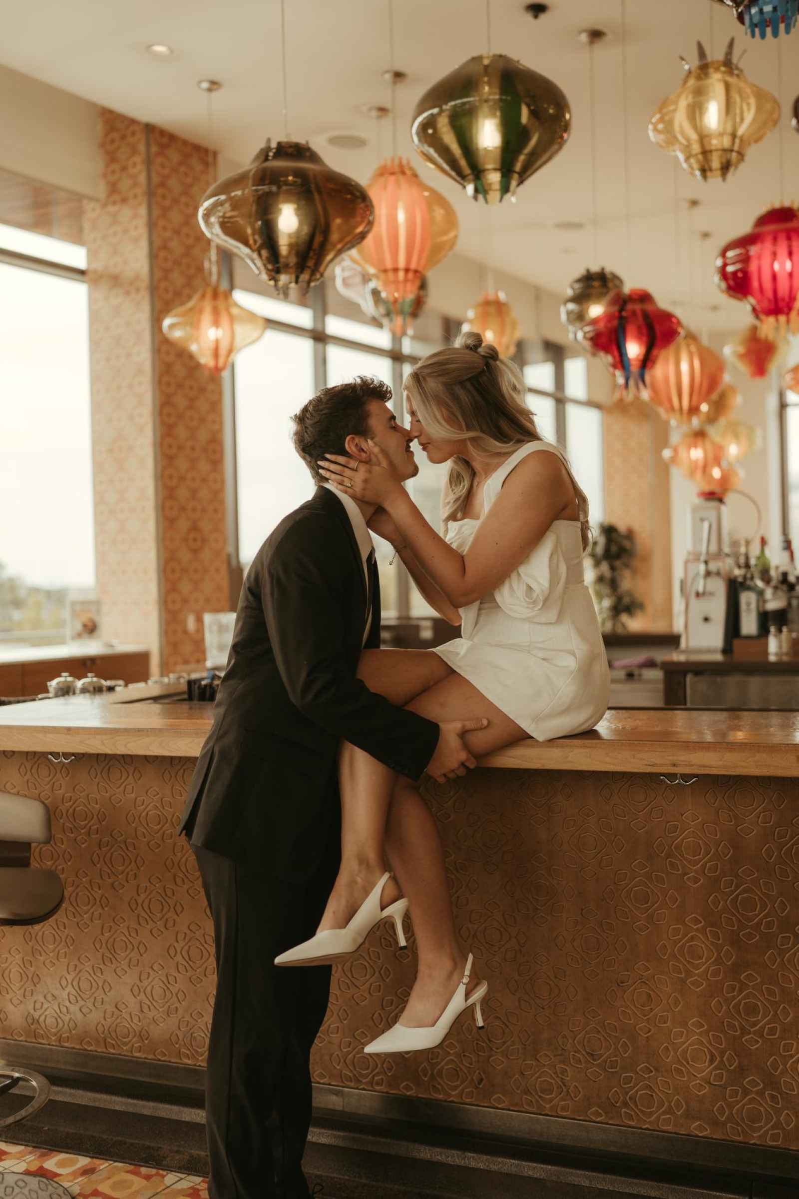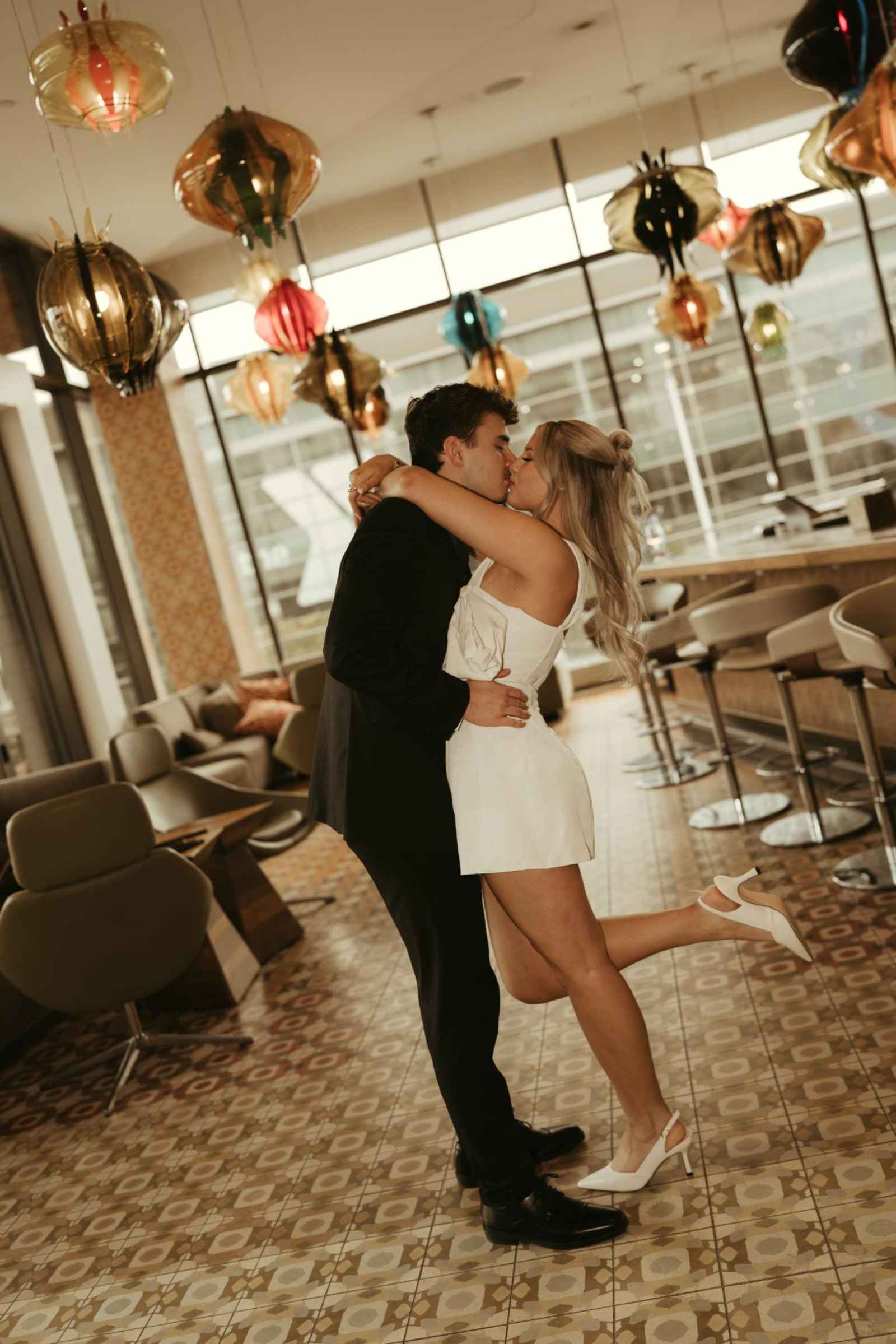 Emma and Spencer opted to shoot at two locations to reflect the different sides of their relationship. Indiana State House offered a stately, elegant backdrop—ideal for the “classy and elevated” photos they envisioned, while Plat 99 brought in a dose of personality with its creative, modern vibe, setting the stage for fun, playful images that showcase who they truly are as a couple!