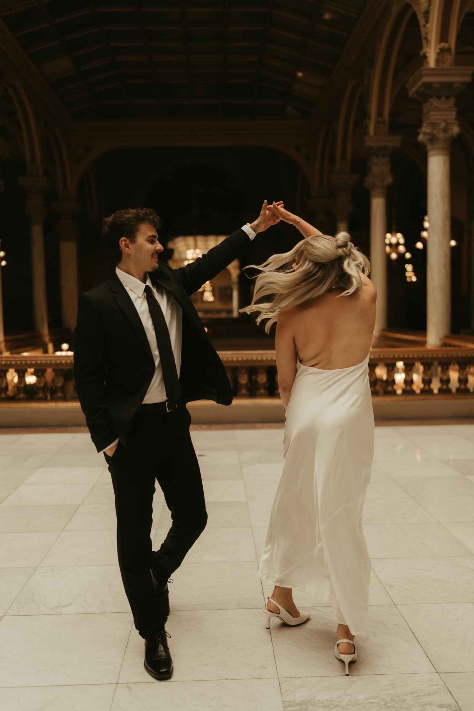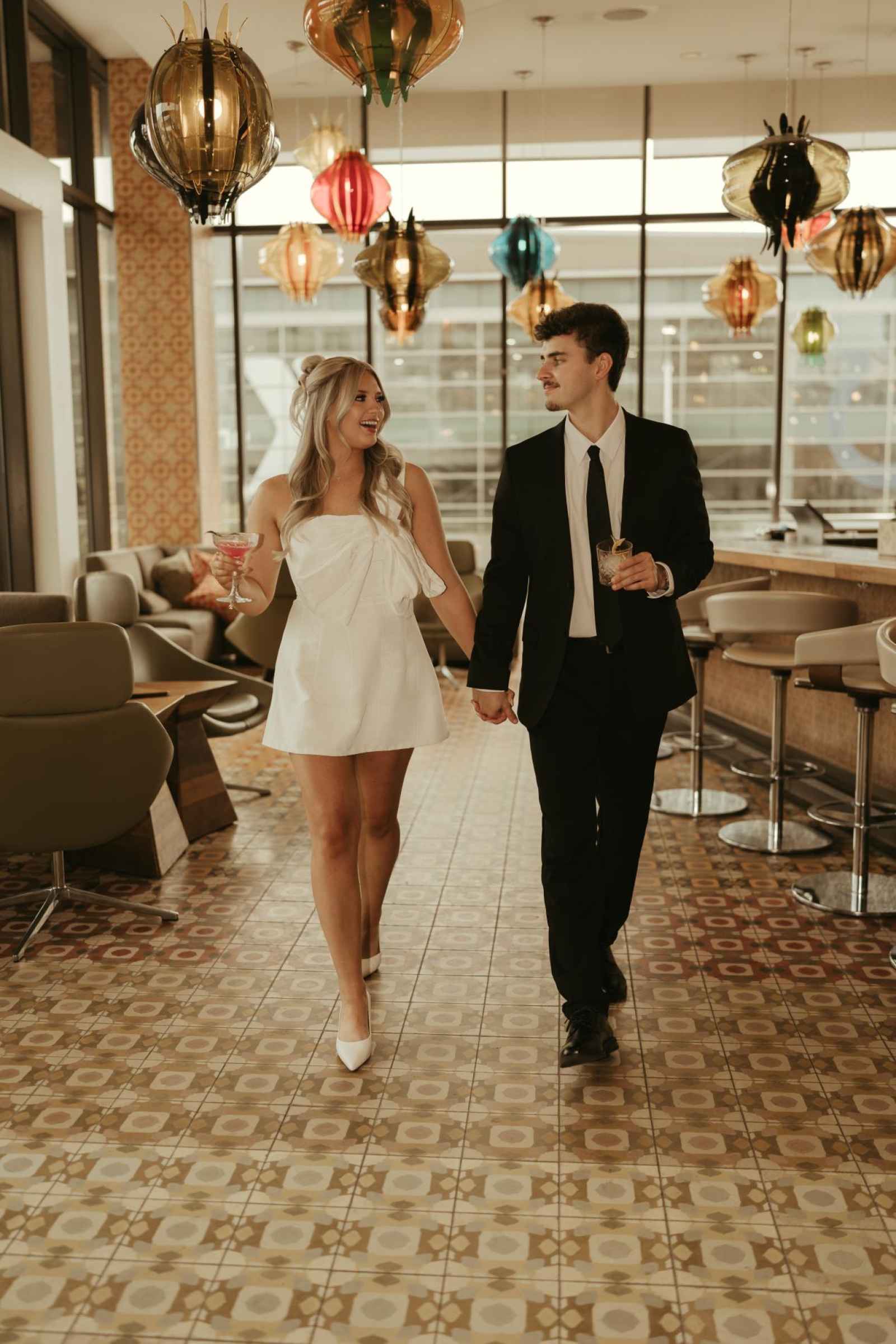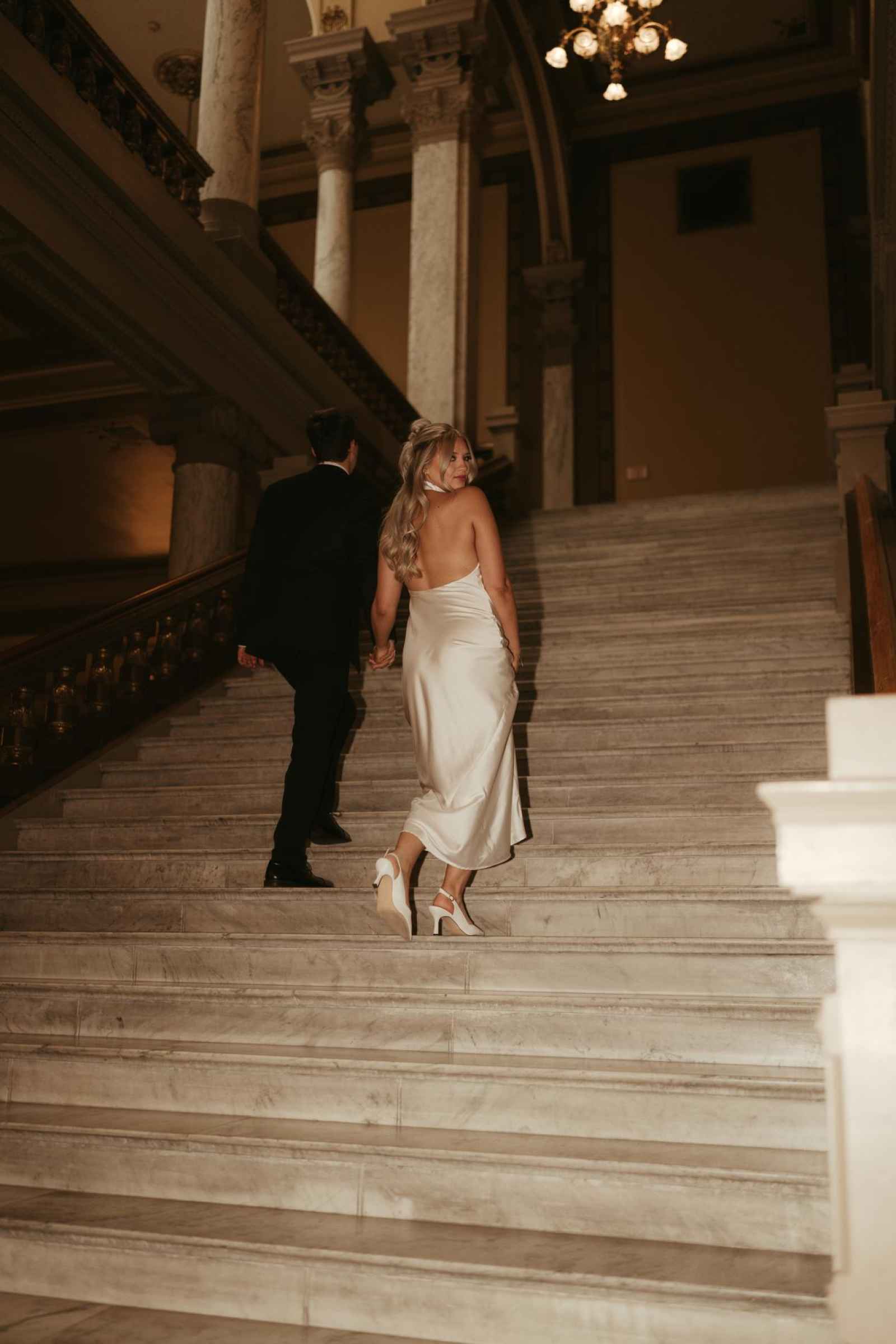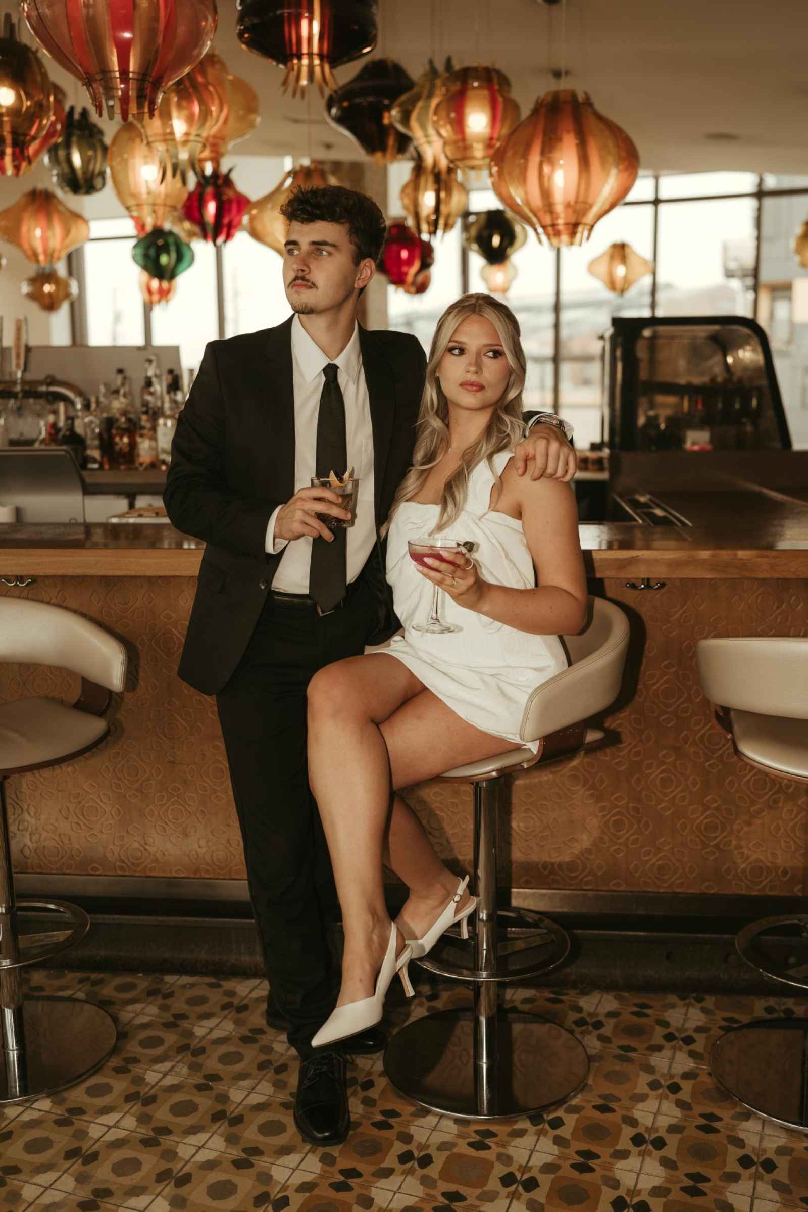Emma and Spencer opted to shoot at two locations to reflect the different sides of their relationship. Indiana State House offered a stately, elegant backdrop—ideal for the “classy and elevated” photos they envisioned, while Plat 99 brought in a dose of personality with its creative, modern vibe, setting the stage for fun, playful images that showcase who they truly are as a couple!