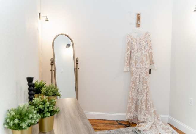 Even though Danielle thought she knew what she wanted when she went dress shopping, she ended up changing her mind when the time came. "I originally wanted a dress with no lace and more of a sleek white style. Turns out that didn’t happen once I tried on my dress. It was the second dress I tried on and I kept referring to it on all the other dresses I tried on, so I knew it was the one," Danielle gushes. The team at The Wedding Shoppe was super helpful in finding Danielle's dream dress, and we think she looks absolutely stunning in this a-line gown!