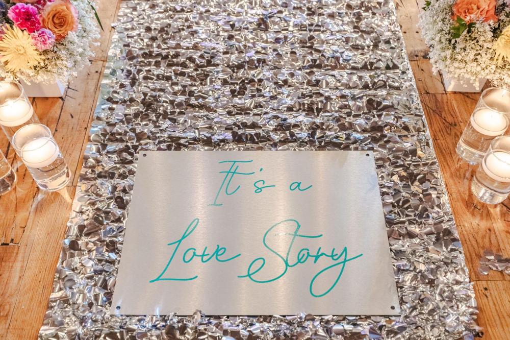Set the tone from the very start with a ceremony aisle that nods to Taylor’s most iconic ballad. A sign reading “It’s a Love Story” welcomes guests into your own fairytale beginning—because this day is all about saying yes to forever!