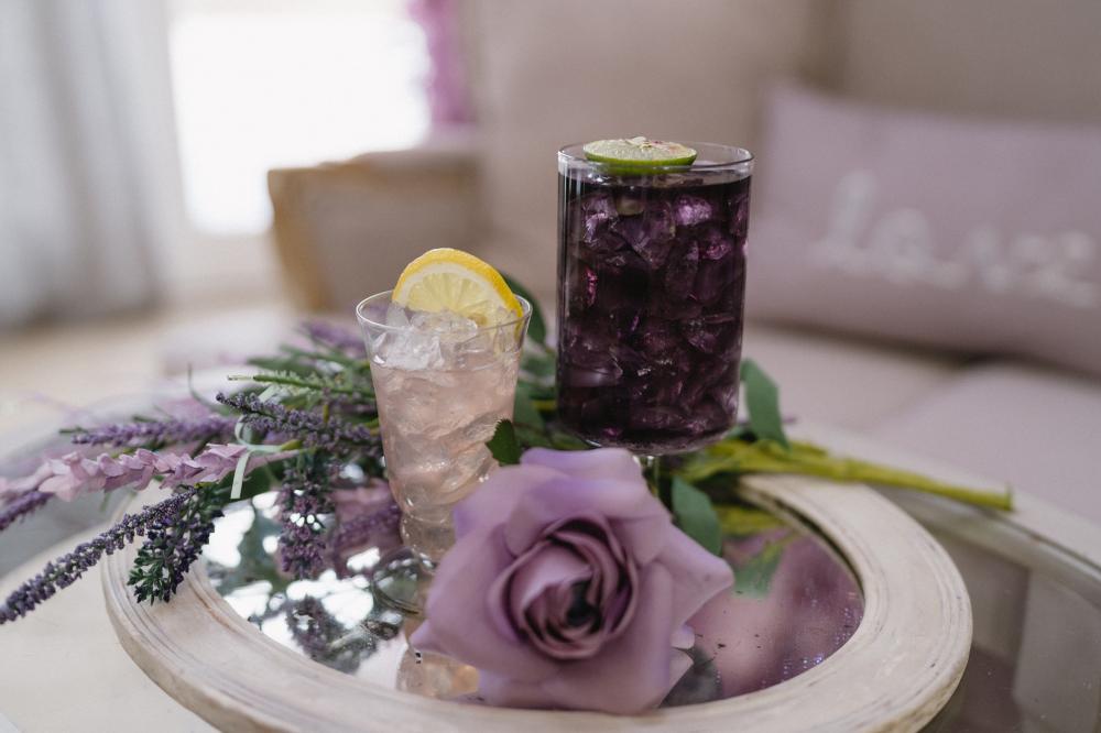 Lavender-hued cocktails add a soft, romantic touch to any celebration, referencing Taylor's Midnights era. These signature drinks bring both elegance and a playful nod to Swift-inspired details for guests to enjoy.