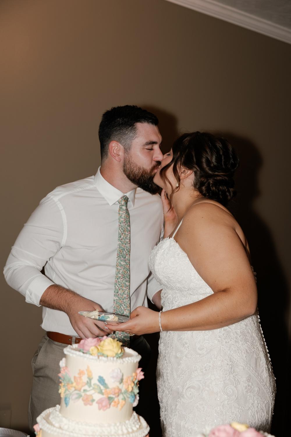 Even though Madison and Trenton met in middle school, they didn't rekindle their friendship and start dating until college. They actually reconnected on a dating app! When it was time to propose, Trenton secretly gathered some of their closest friends to take pictures and asked Madison to a beach picnic. After Madison said yes, they all celebrated. Their friends actually bought them a celebratory piece of cake that ended up becoming their wedding cake!