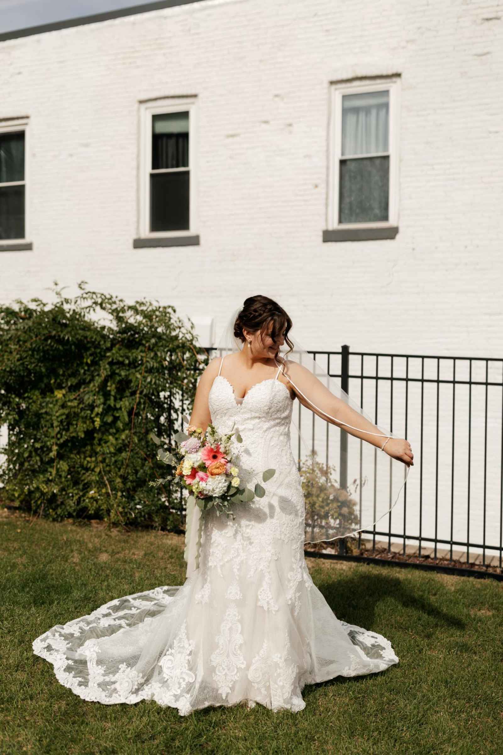 Despite Madison thinking she knew what she wanted in a wedding dress, she ended up surprising herself! "I thought I would have a ballgown, and walked away with a fit and flare. It was perfect! I shopped at two places in one day and found it the first day," Madison raves. "Ultimately, when you know, you know!" We think she looks absolutely stunning in the gown she chose! The lace detailing is absolutely gorgeous, especially the delicate lace on the end of her train.