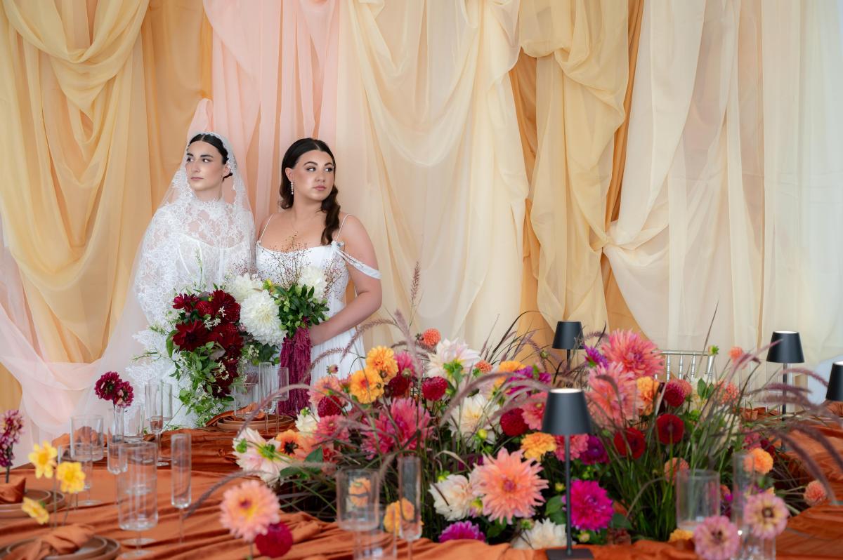 This already dramatic tablescape is further elevated with the use of AAYS' Sheer Drape Panels!