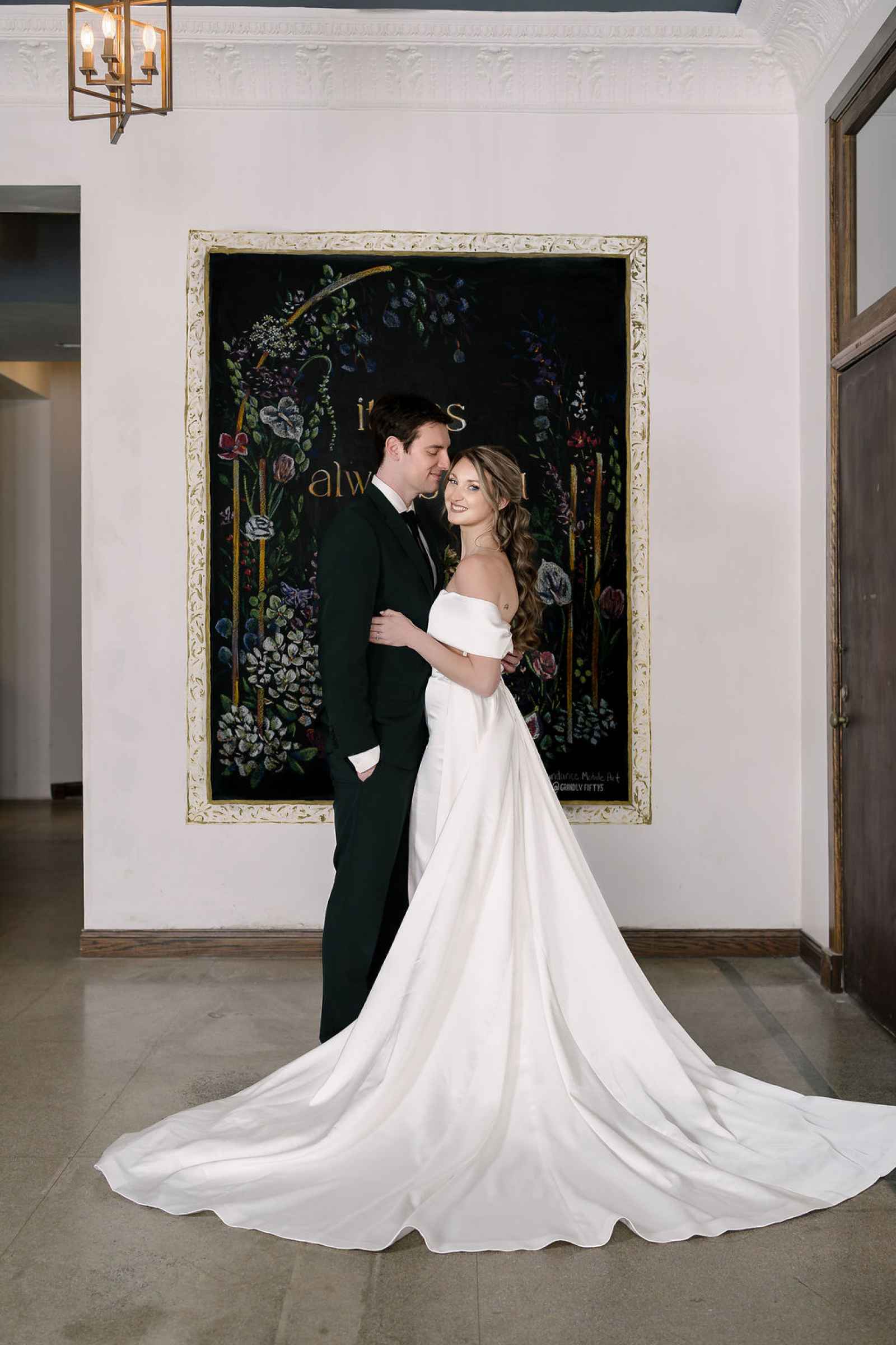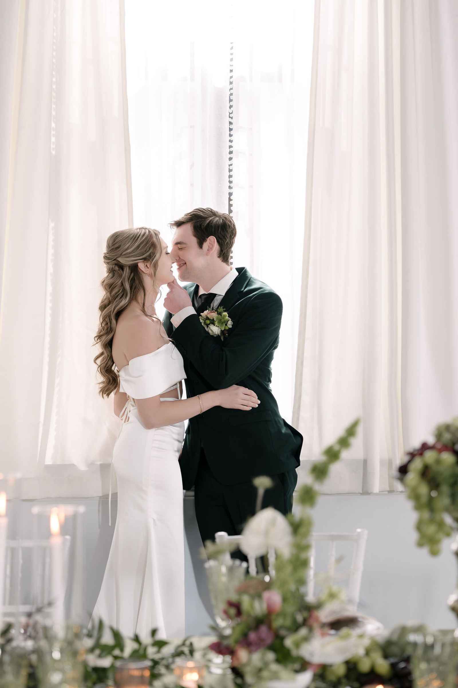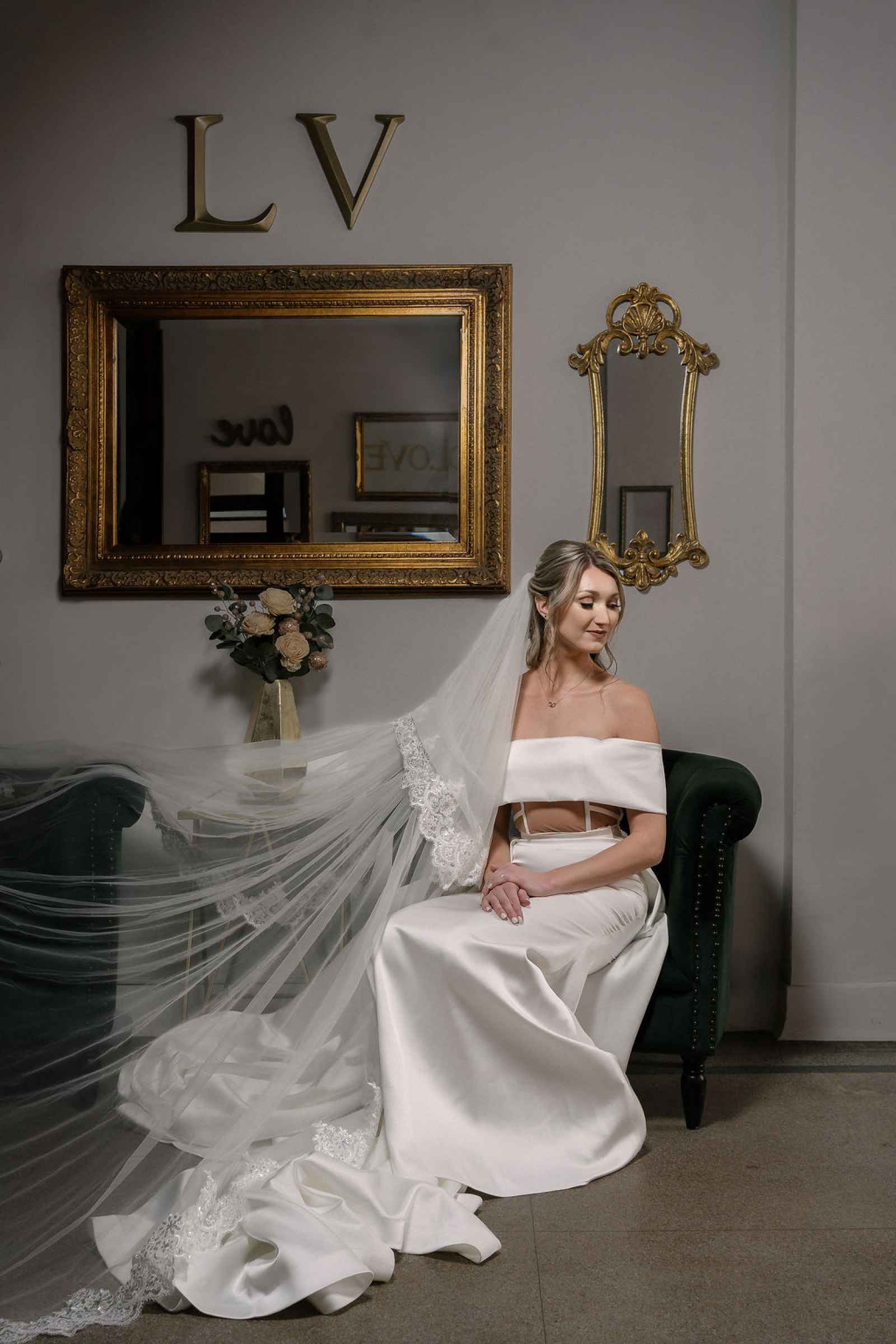 The Grand LV, built in 1928 and thoughtfully renovated in 2019, is a historic gem in downtown Niles, Michigan, offering timeless character and a versatile space. Its abundant windows in the Kull Memorial Stateroom flooded the shoot with beautiful natural light, enhancing the fresh, sophisticated aesthetic Jaime envisioned. We also fell in love with the grand staircase and opulent chandelier! By leaning into these standout architectural features, we created a setting that felt both timeless and inviting—perfectly complementing our theme.