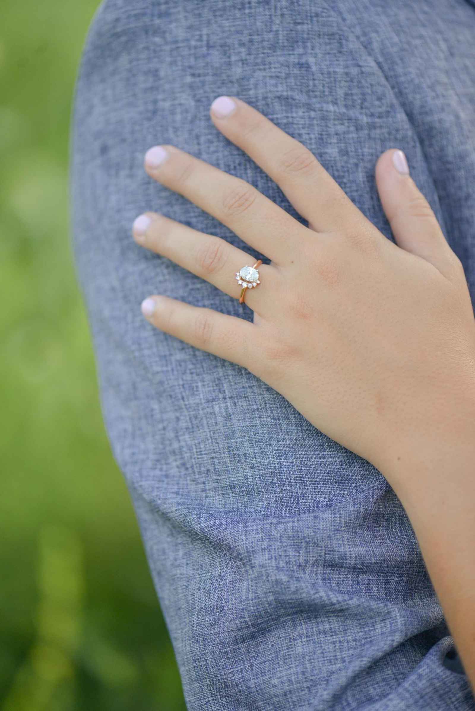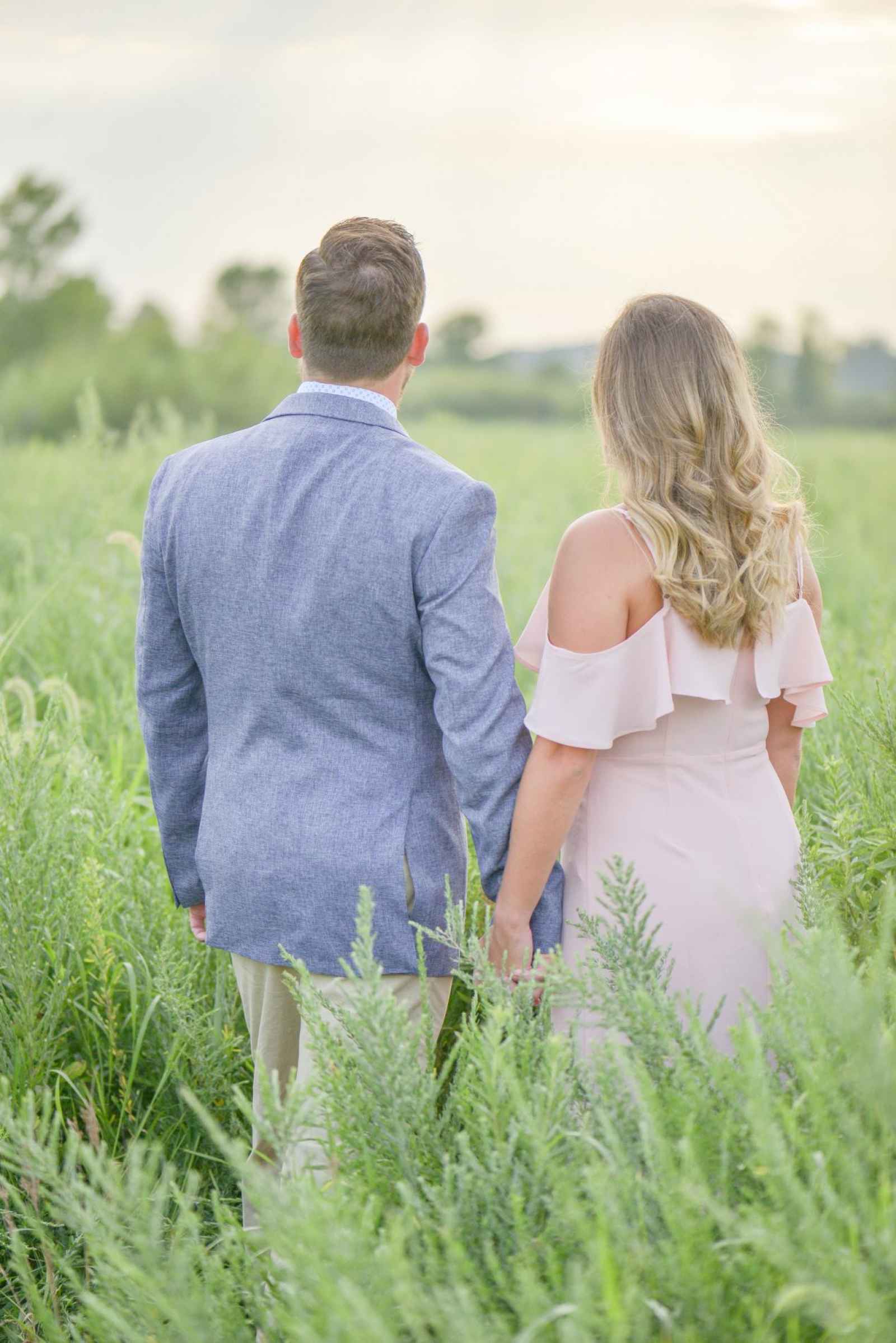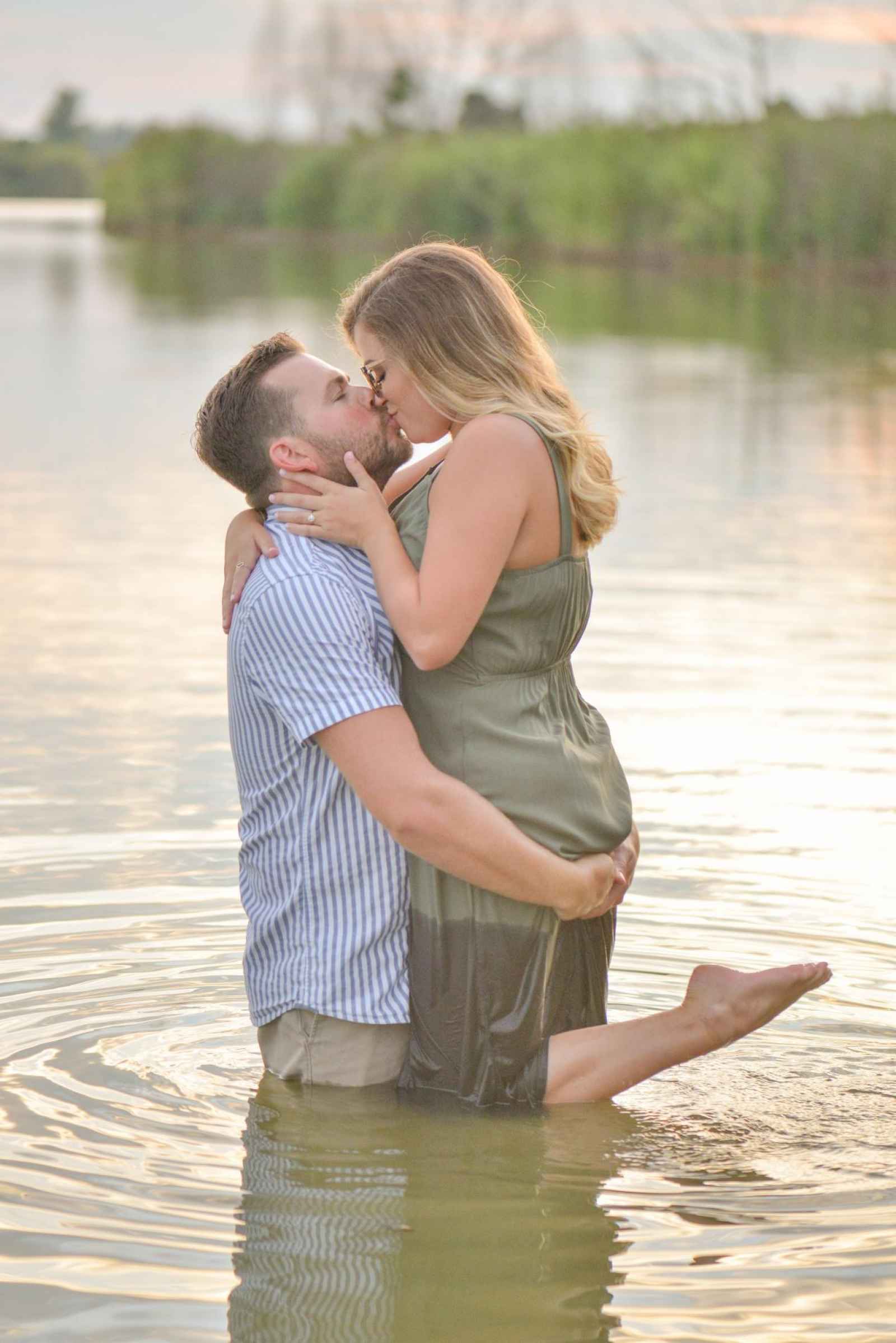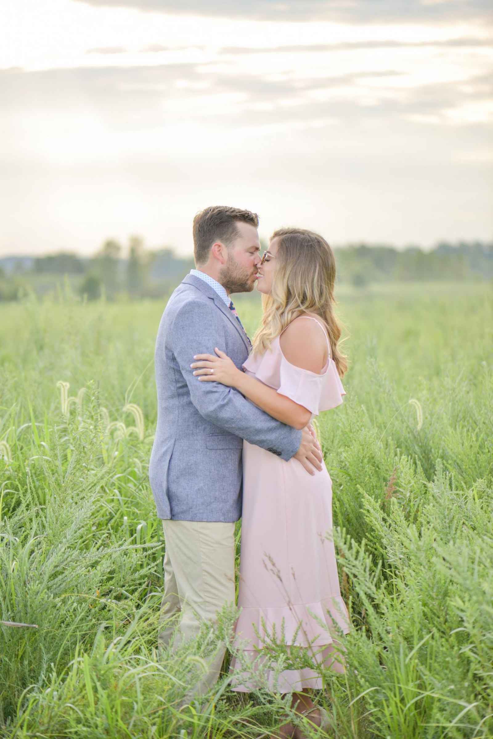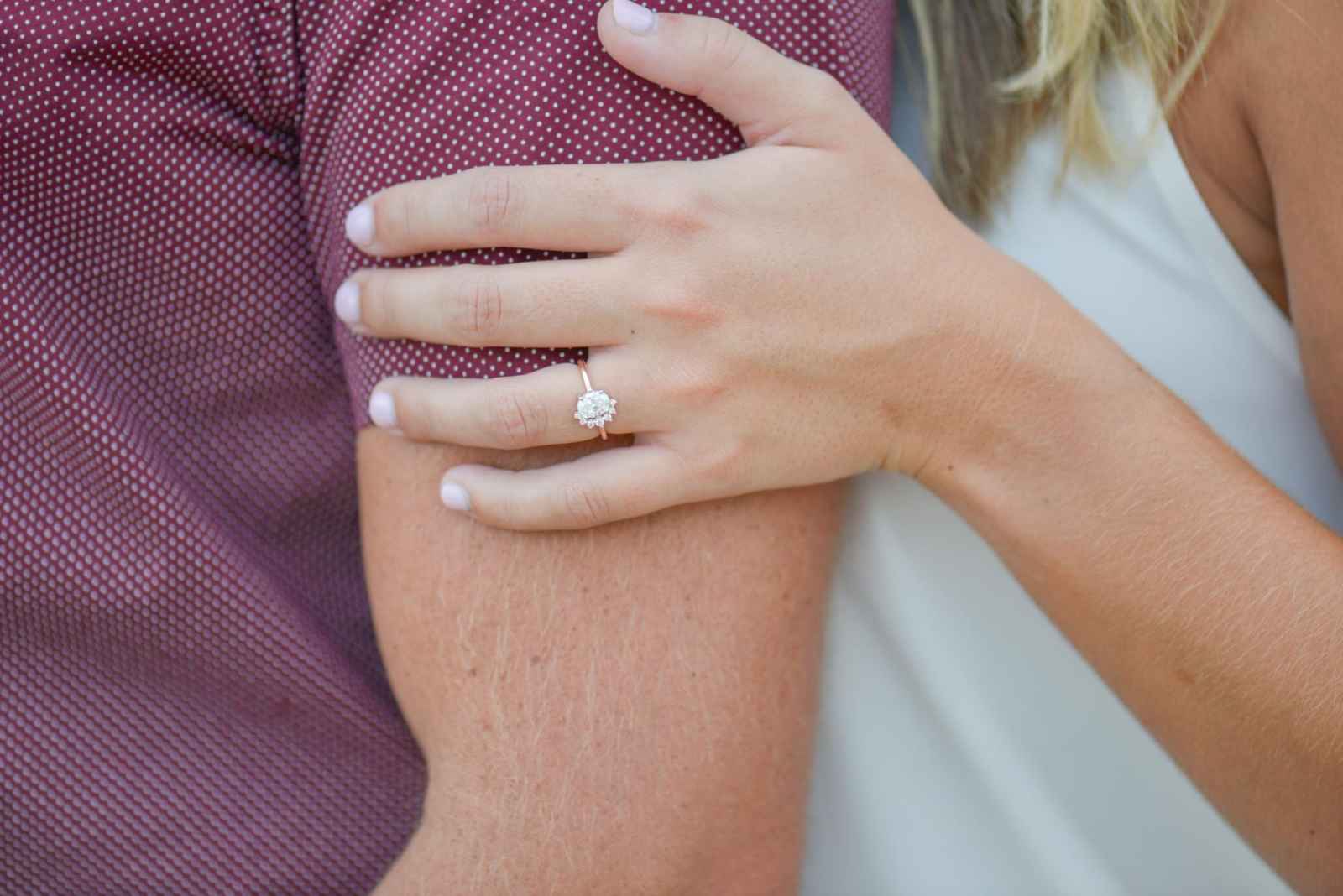 Shelby wanted her ring to stand out, and Augie made just the right choice! When the couple started to look at outfits to wear for their session, they kept a color scheme in mind. “We went for three outfits for three themes–comfortable and casual for starting out, romantic with soft colors for the pictures in the field and neutrals for our water pictures,” Shelby explains.