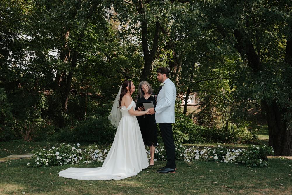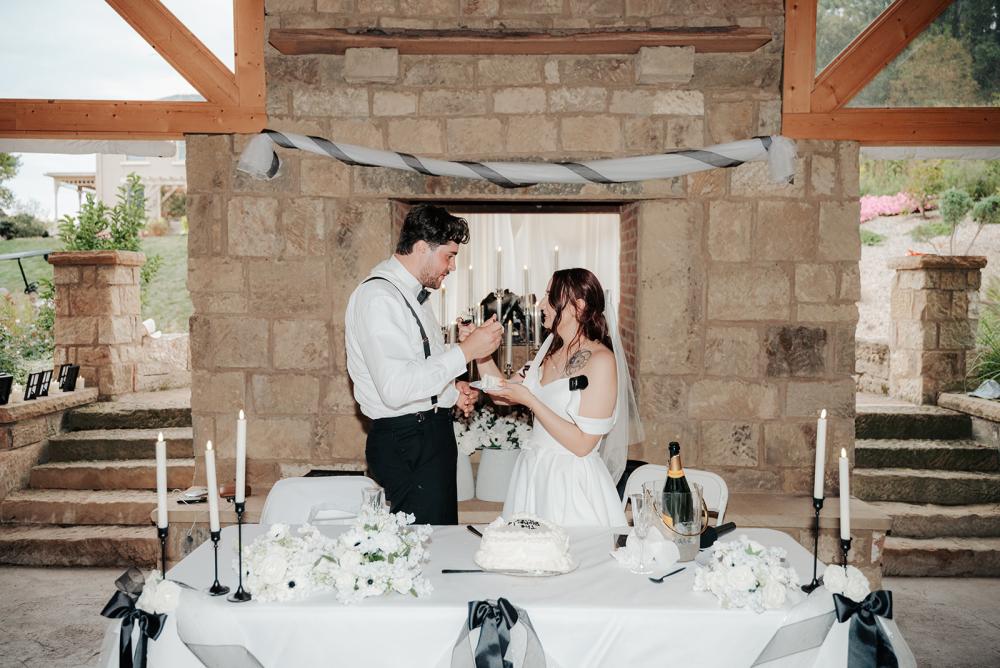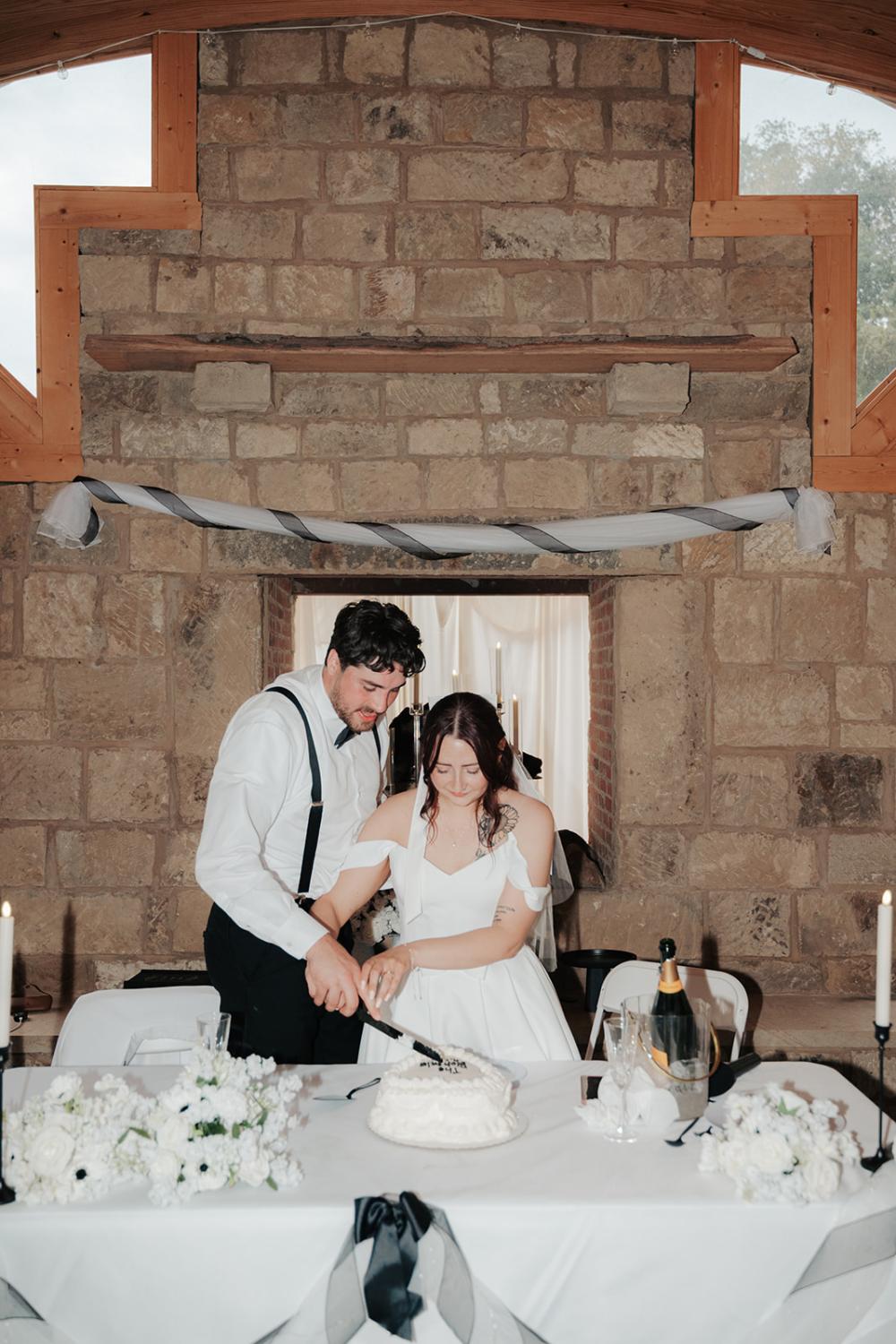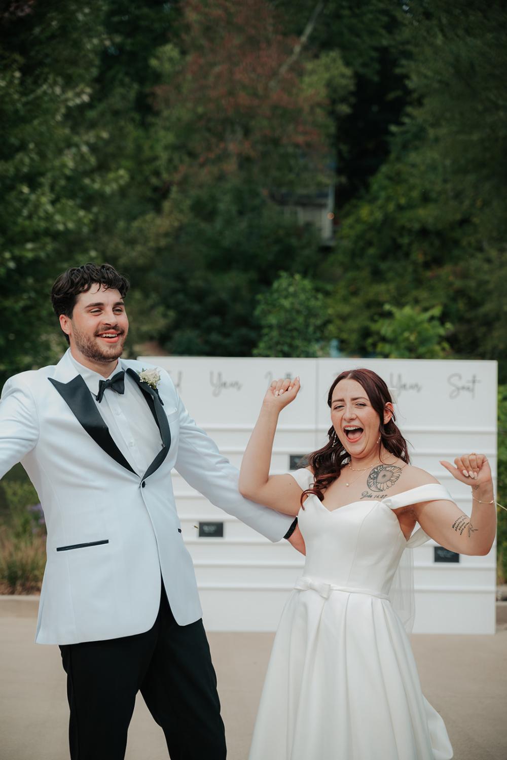 trying to find creative ways to make everything beautiful without overspending," Jillian shares. They wanted something that was timeless yet modern with an elegant air. Jillian and Josh settled on a black and white color scheme to let the natural greenery have the spotlight!
