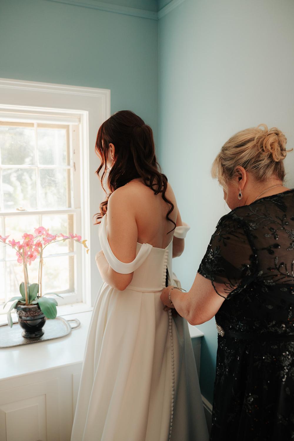 Going into dress shopping, Jillian had a clear vision. She wanted something flowy and fairy-esque. However, once Jillian started trying on simpler dresses, she was amazed at how much she liked them. Jillian admits, "Those gowns made me feel confident, timeless and like a young woman beginning a new chapter of her life. I ended up trying on just about every style because dresses can truly surprise you, and I’m so glad I kept an open mind." The gown that ended up being "the one" was an elegant A-line, satin, off-the-shoulder gown. We love that the dress came with a small bow belt that keeps her initial whimsical dress idea alive even though her taste changed!