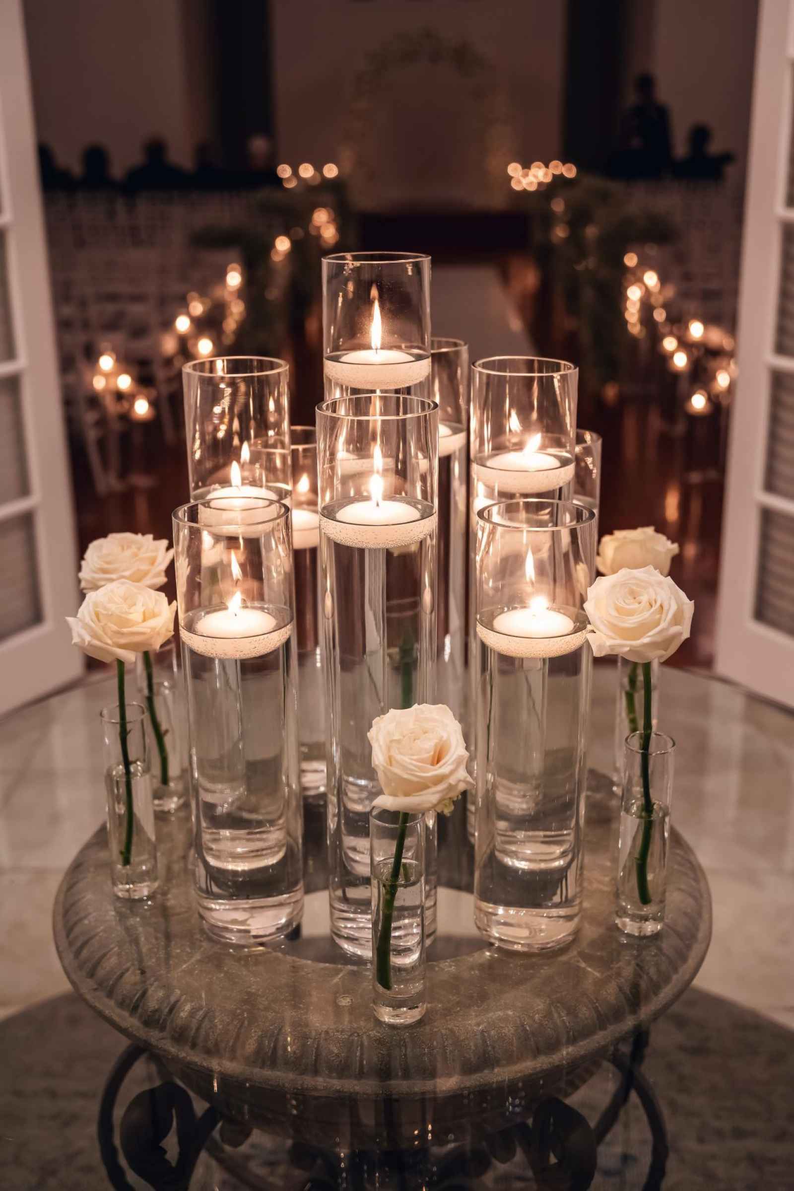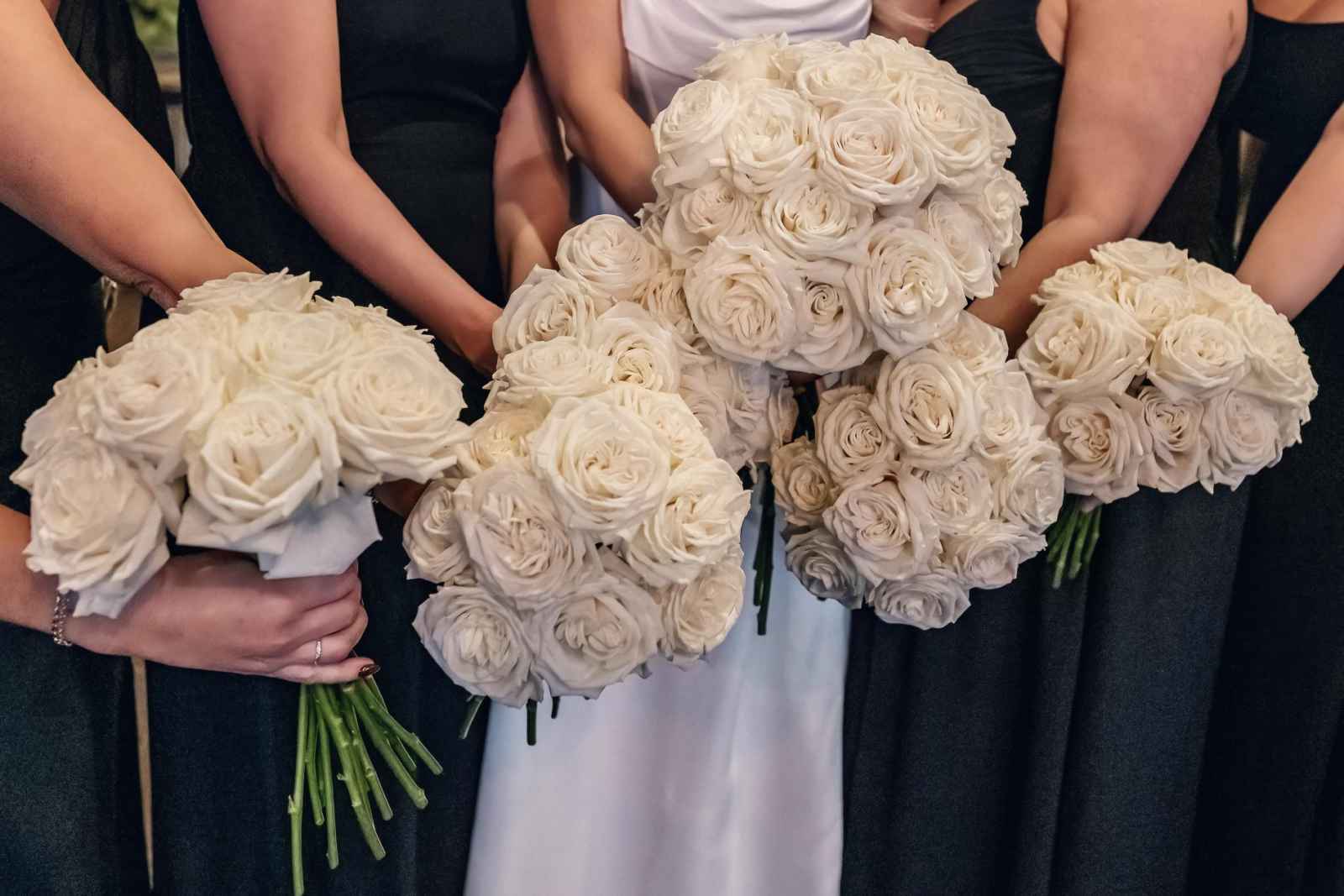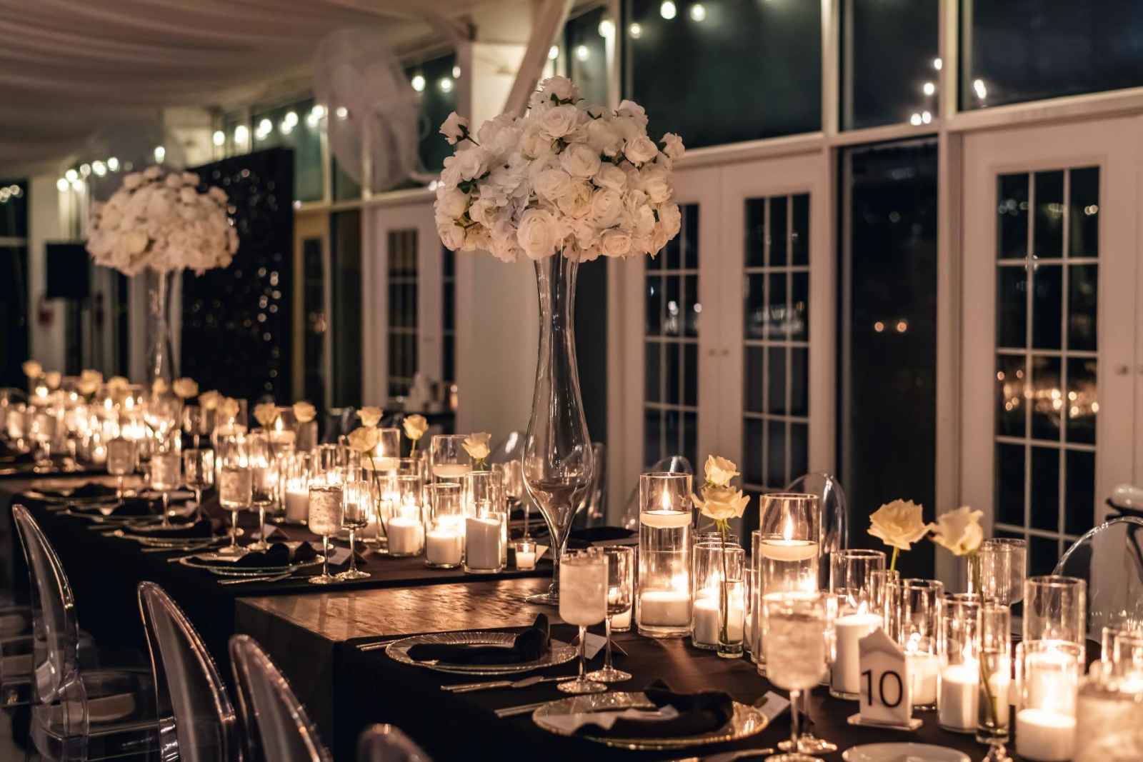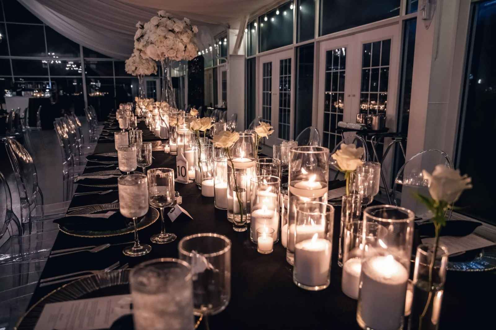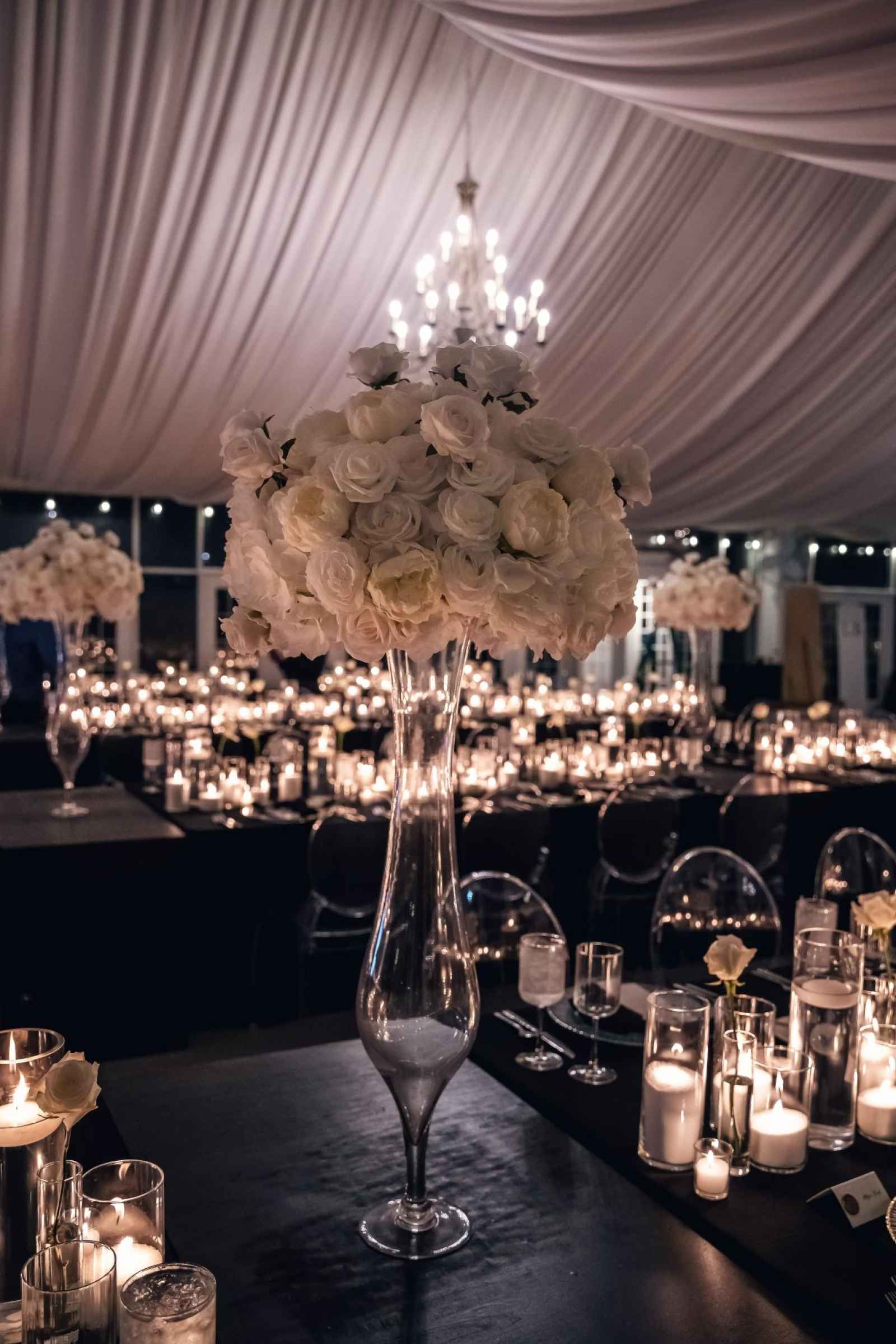 Flora and Flame brought Lauren and Brandon's entire vision to life! While Lauren initially inquired with them regarding their phone booth rental, they ended up providing florals, candles, stationery, signage, custom-built pieces and more. “Flora and Flame Design was one of those meant-to-be moments. While scrolling through New Year’s Eve wedding ideas, I came across a beautiful wedding at Ritz Charles from the year before,” Lauren shares. “After probably hours of Instagram sleuthing, I found Beth and reached out to rent the booth. After just one video chat, I knew she got me. She understood my vision immediately, and her energy was everything we were looking for.”
