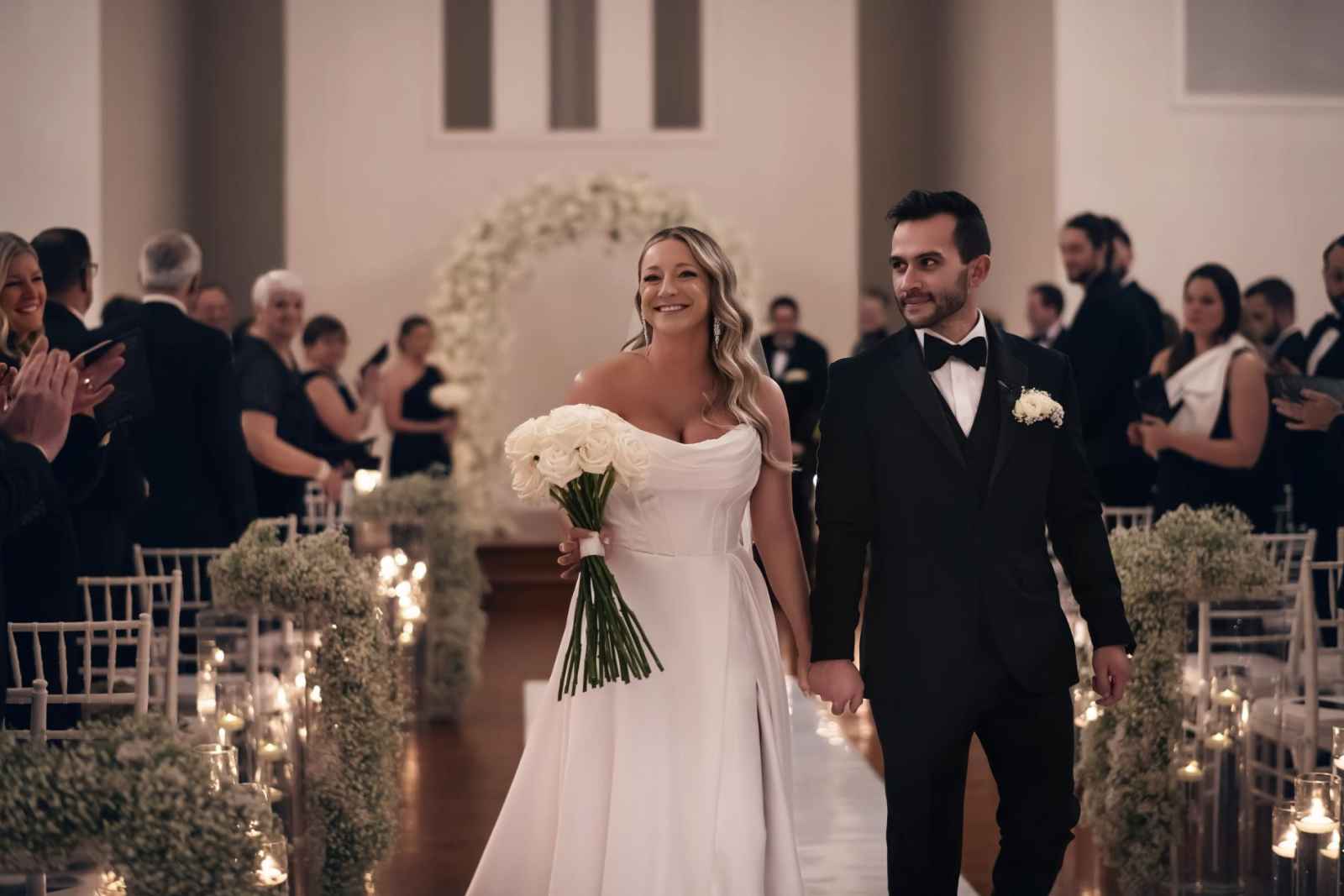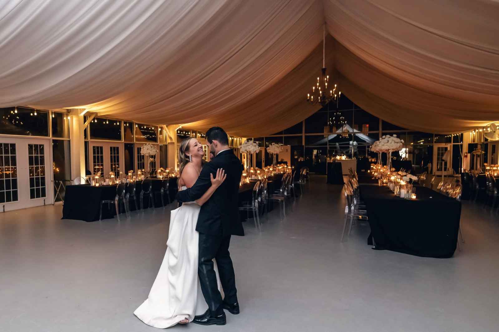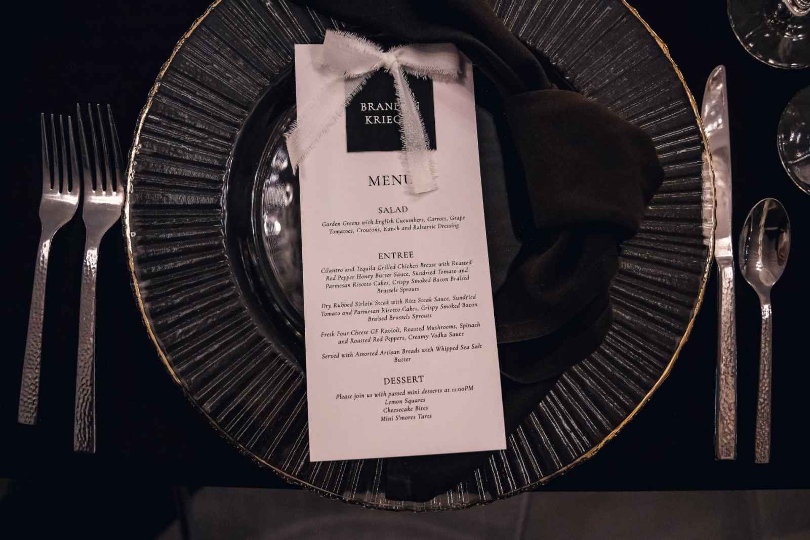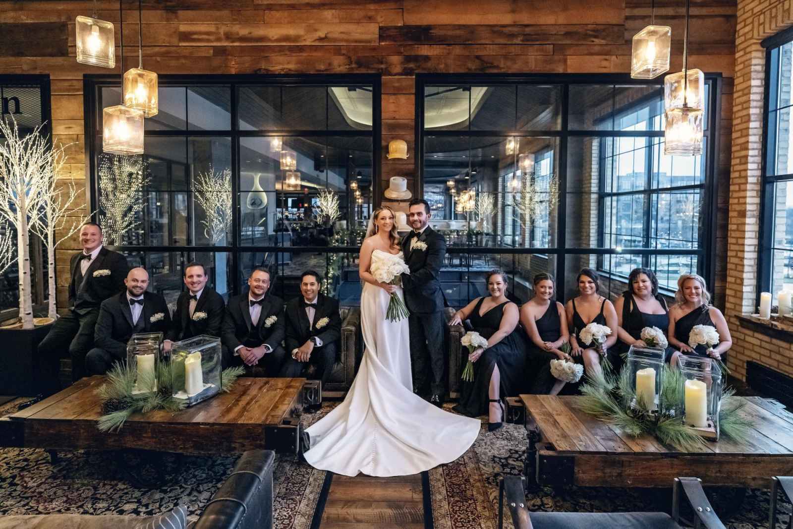 Though Lauren imagined a sophisticated black-tie wedding with gold accents, Brandon, an Indiana University grad, vetoed the “Purdue colors.” So, they decided on black-tie elegance with mixed metals instead. Since they were ringing in the New Year on their big day, they added plenty of sparkle to their opulent occasion, leaning into moody and romantic vibes for the décor. Because of their chosen date, they opted for a non-traditional timeline. The ceremony began at 7:30 and the celebration lasted until one in the morning, so they could ring in the New Year with all their friends and family! For a fun beginning to the year, Brandon and Lauren also sent their guests home with scratch-off lottery tickets instead of more traditional wedding favors.