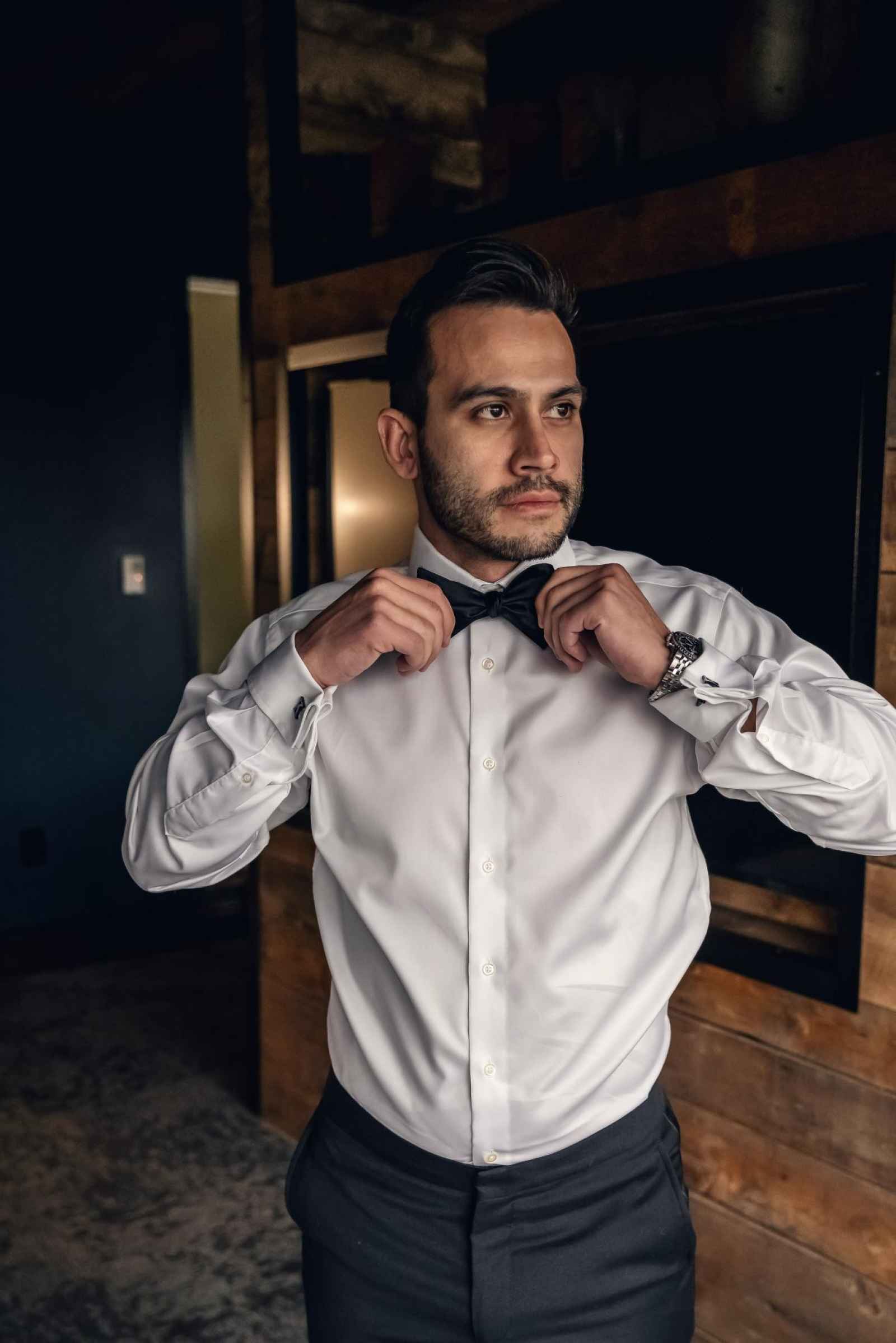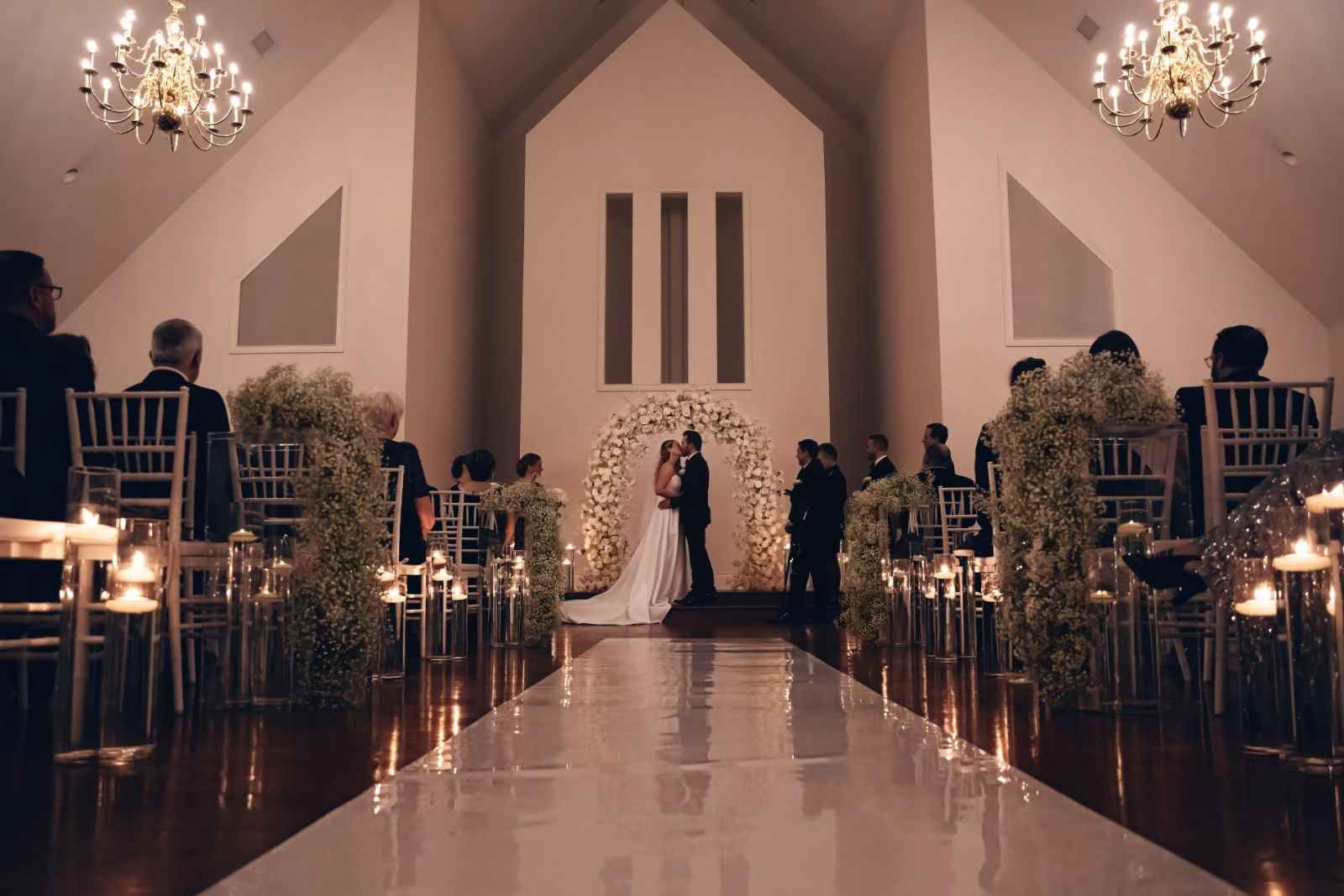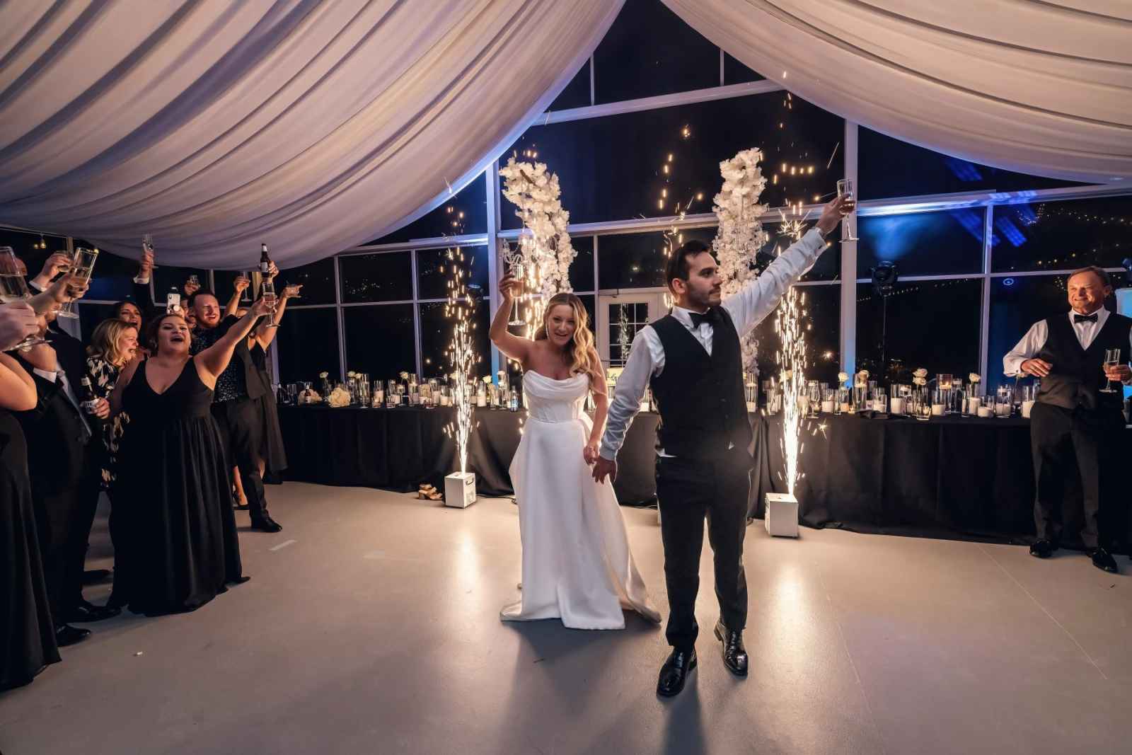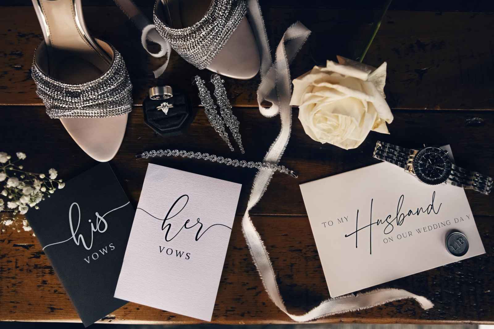 Though Lauren imagined a sophisticated black-tie wedding with gold accents, Brandon, an Indiana University grad, vetoed the “Purdue colors.” So, they decided on black-tie elegance with mixed metals instead. Since they were ringing in the New Year on their big day, they added plenty of sparkle to their opulent occasion, leaning into moody and romantic vibes for the décor. Because of their chosen date, they opted for a non-traditional timeline. The ceremony began at 7:30 and the celebration lasted until one in the morning, so they could ring in the New Year with all their friends and family! For a fun beginning to the year, Brandon and Lauren also sent their guests home with scratch-off lottery tickets instead of more traditional wedding favors.