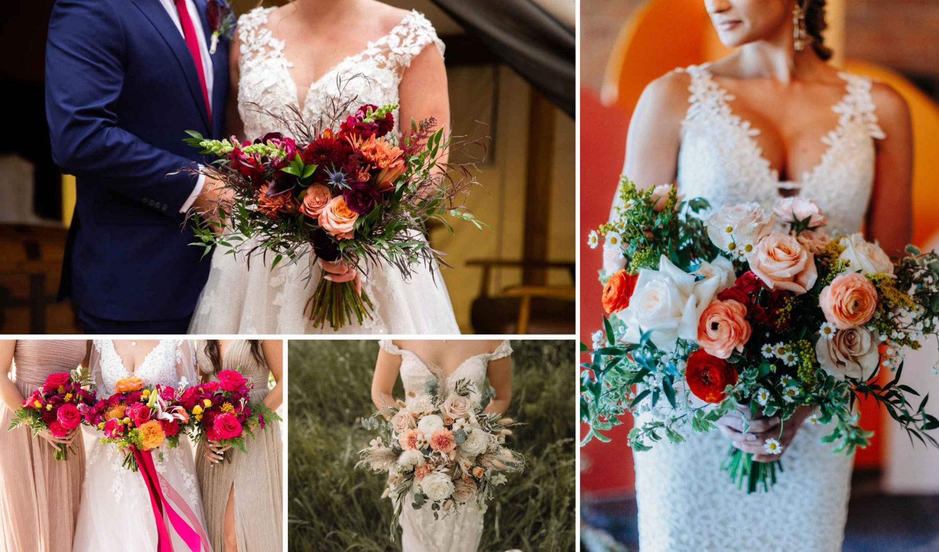 Pictured // Florals: Burns Special Events, Photography: Jessie Silva (top left), Florals: JP Parker Flowers, Photography: Becky Lynn Photography (top right), Florals: Marco Alexzondra Floral, Photography: Monica Z Photography (bottom left), Florals: Snapdragon-Designs, Photography: Brick & Pine Photography (bottom middle)