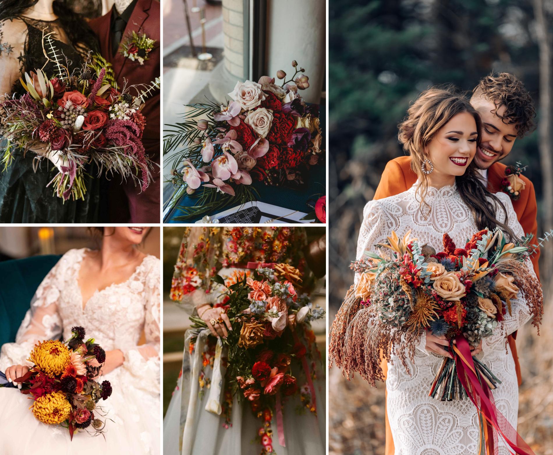 Pictured // Florals: Flora + Flame, Photography: Curious Courtneys Photography (top left), Florals: Coopersville Harmony Floral, Photography: Love Photography by Katie VanderWal (top middle), Florals: Marco Alexzondra Floral, Photography: Pavé Wedding Productions (right), Florals: Sugar on the Rim Events, Photography: J Cole Photography (bottom left), Florals: Pomp and Bloom, Photography: Alexis Nicole Photography (bottom middle)