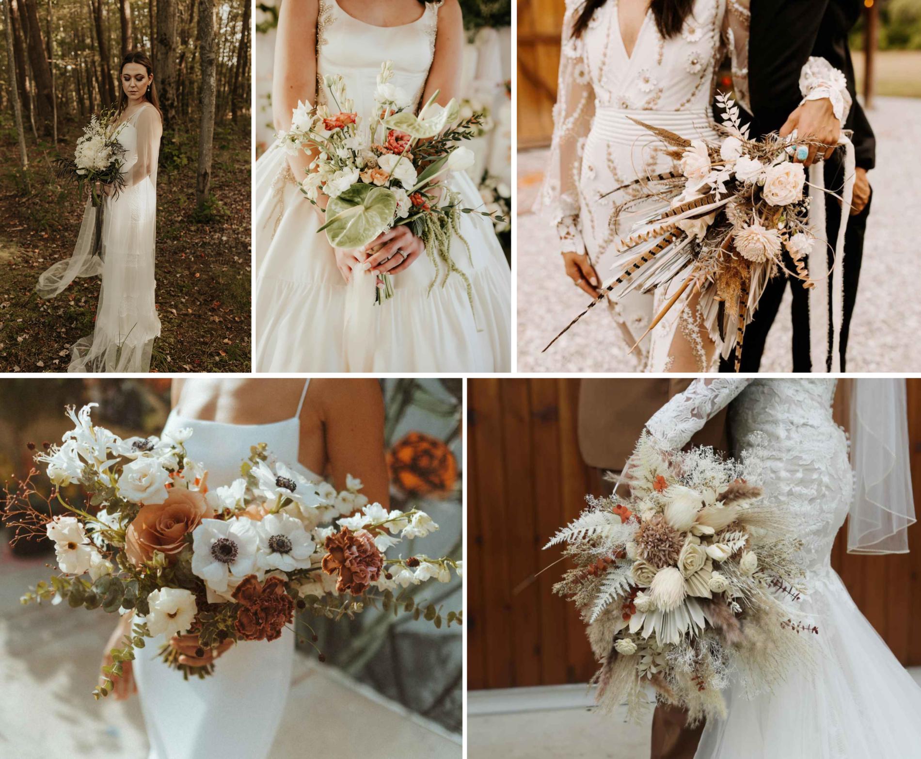 Pictured // Florals: Crystal Springs Florist, Photography: Laura Pucci Photography (top left), Florals: Hedonia Flowers, Photography: Danielle Schury Photography (top middle), Florals: Emily's Backyard Blooms, Photography: Rachael B Photography (top right), Florals: Flowers for Dreams, Photography: Wright Photographs (bottom left), Florals: Jennifer Cook, Photography: KRR Photography (bottom right)