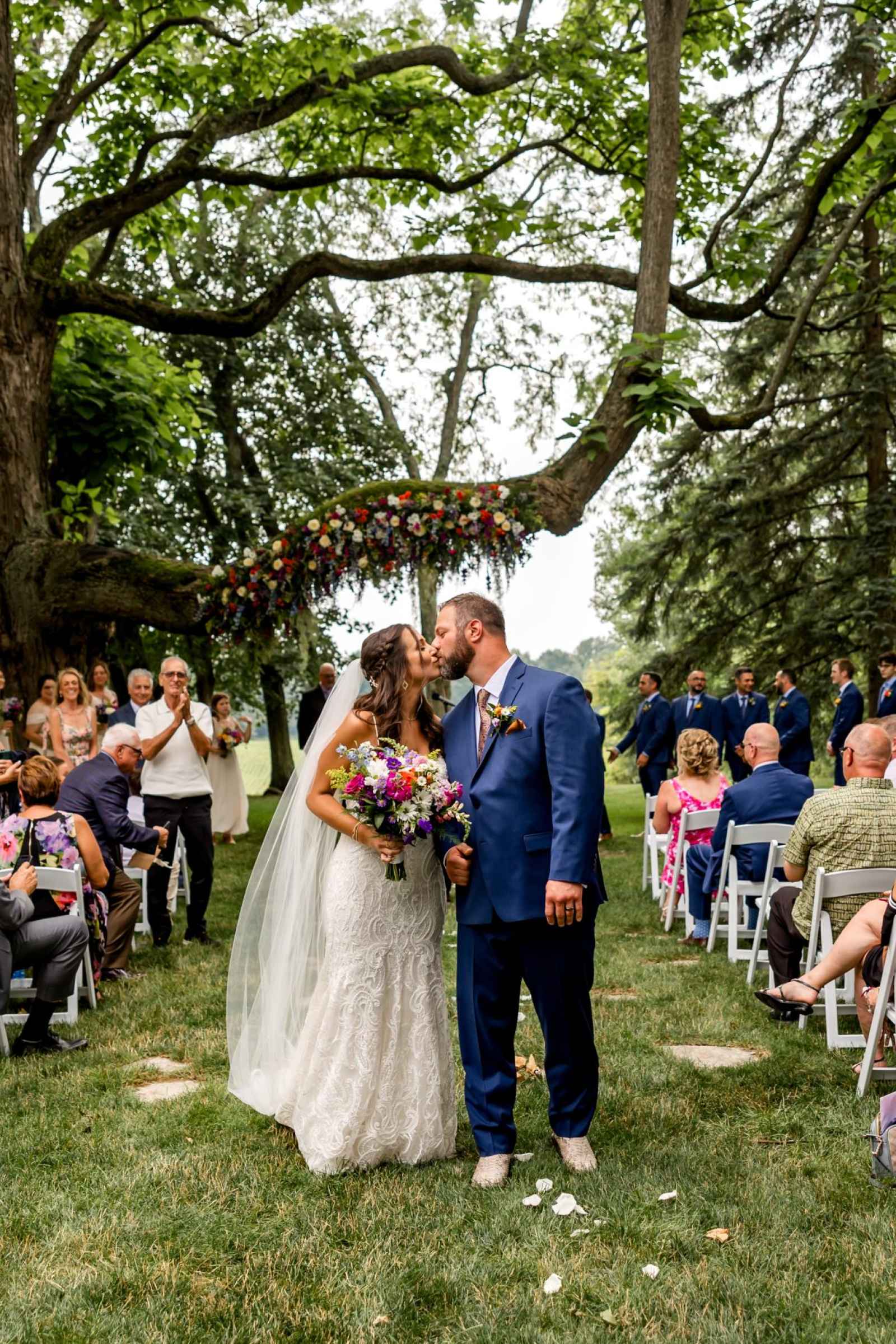 The most important thing to Krista and Phillip was having their closest loved ones there to celebrate with them. They were also able to incorporate someone who unfortunately passed before they could be wed. “My Omi made sure to give me her engagement ring before she passed away—she wanted me to have it,” Krista shares. “My husband had the diamonds from her ring set into my wedding band. It's so meaningful because I know how much she would have loved him, and I always say she sent him to me.”