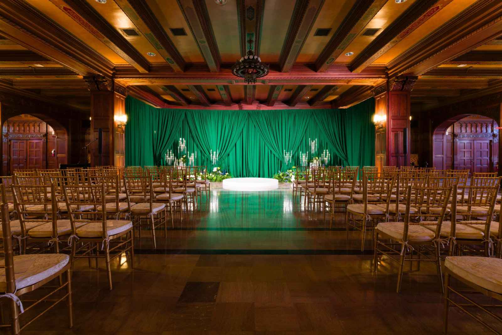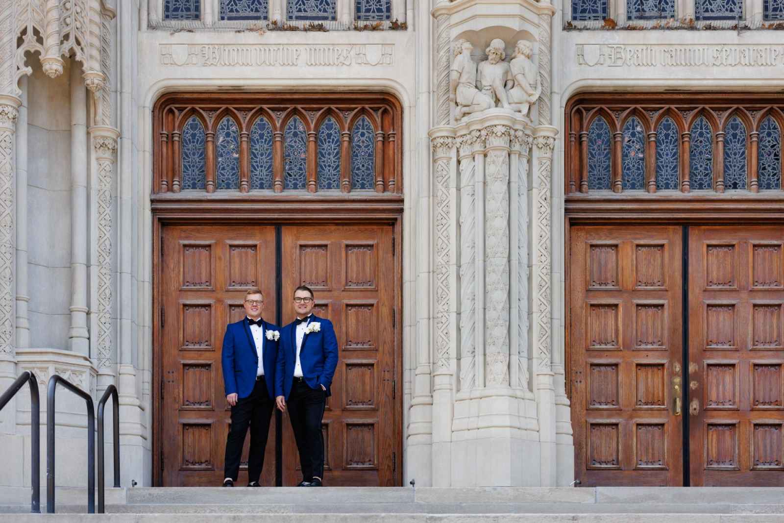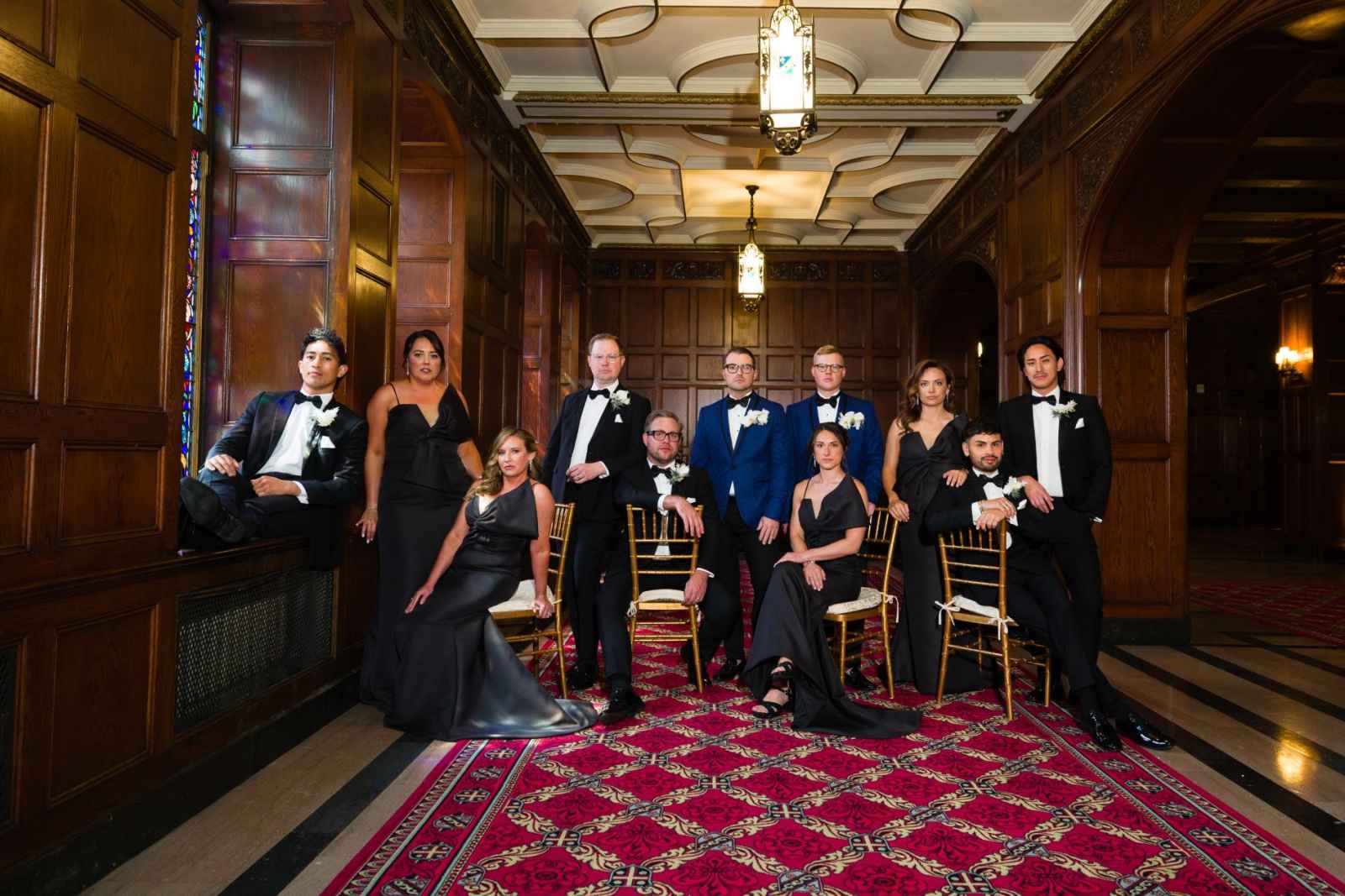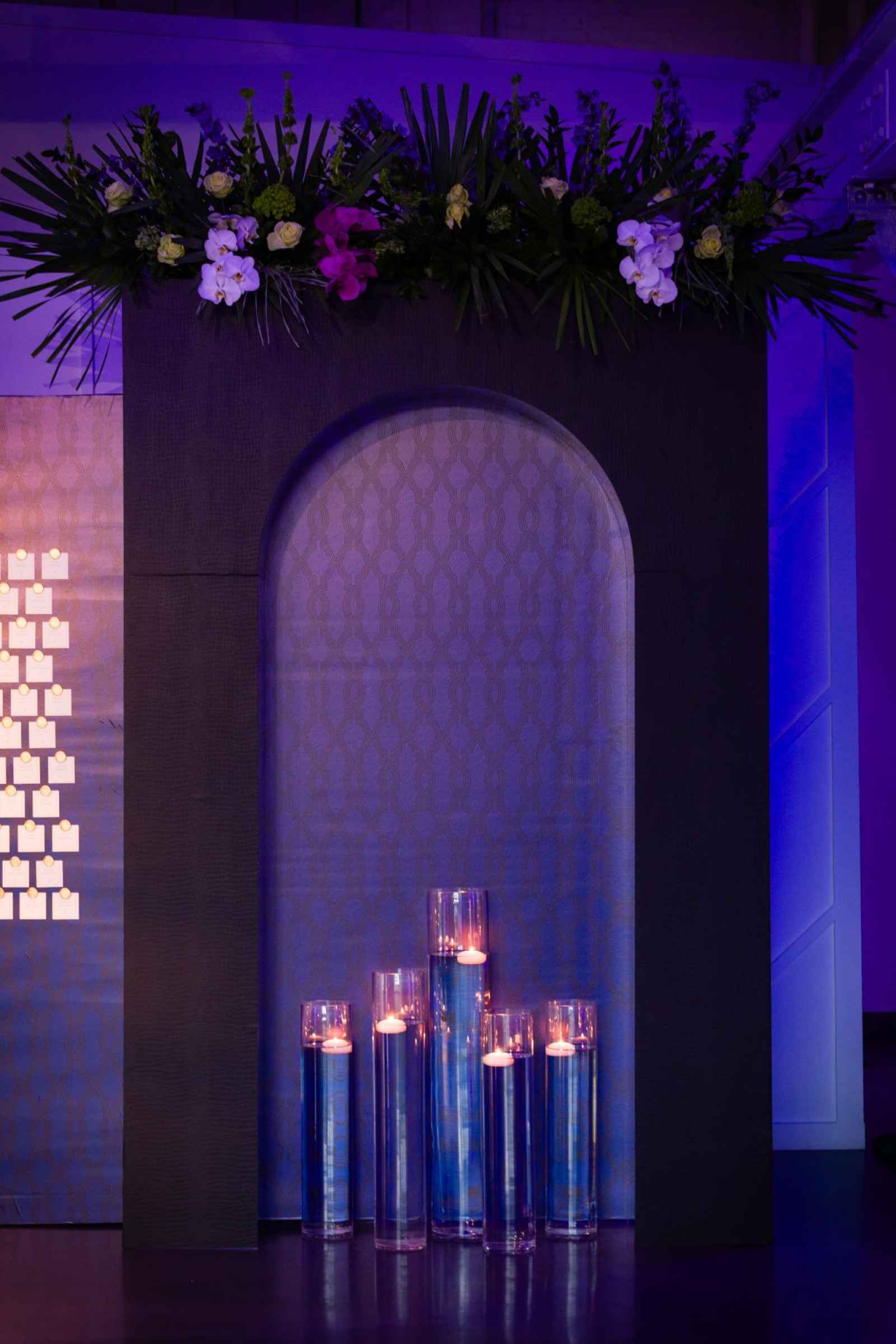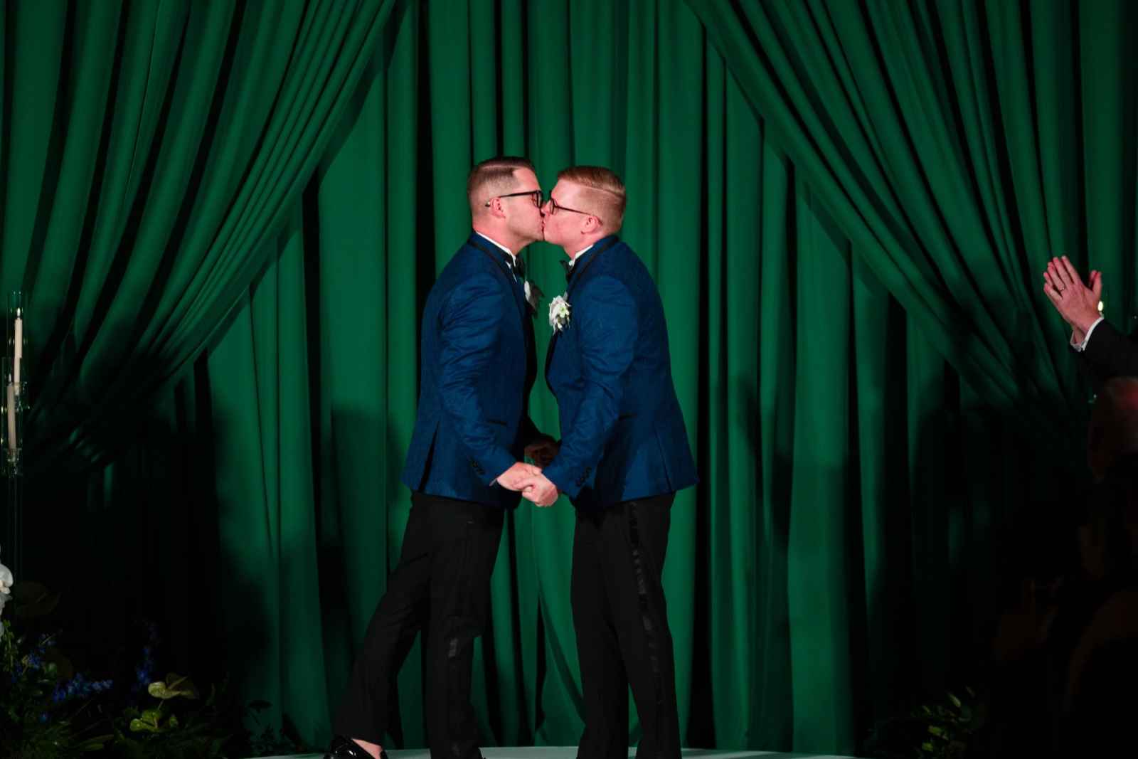 Just like their personalities, Blake and Drew wanted to honor traditional and classic themes while putting their own modern twist on it. There were two things they absolutely wanted for their wedding. One was to bring together everyone they love to celebrate their union. The second was to have a seamless transition from their elegant ceremony to the all-out party that they wanted afterward. “Bold fuchsias, bright greens and electric blues showed up throughout the florals and table linens, creating a lush, high-energy palette. We brought in clear and black ghost chairs and sleek acrylic tables to give the space a modern edge, and added soft seating with large palm trees and uplighting to evoke a playful, intimate vibe,” Blake and Drew share. Burns Special Events was one of the rental companies that helped them pull it all together!