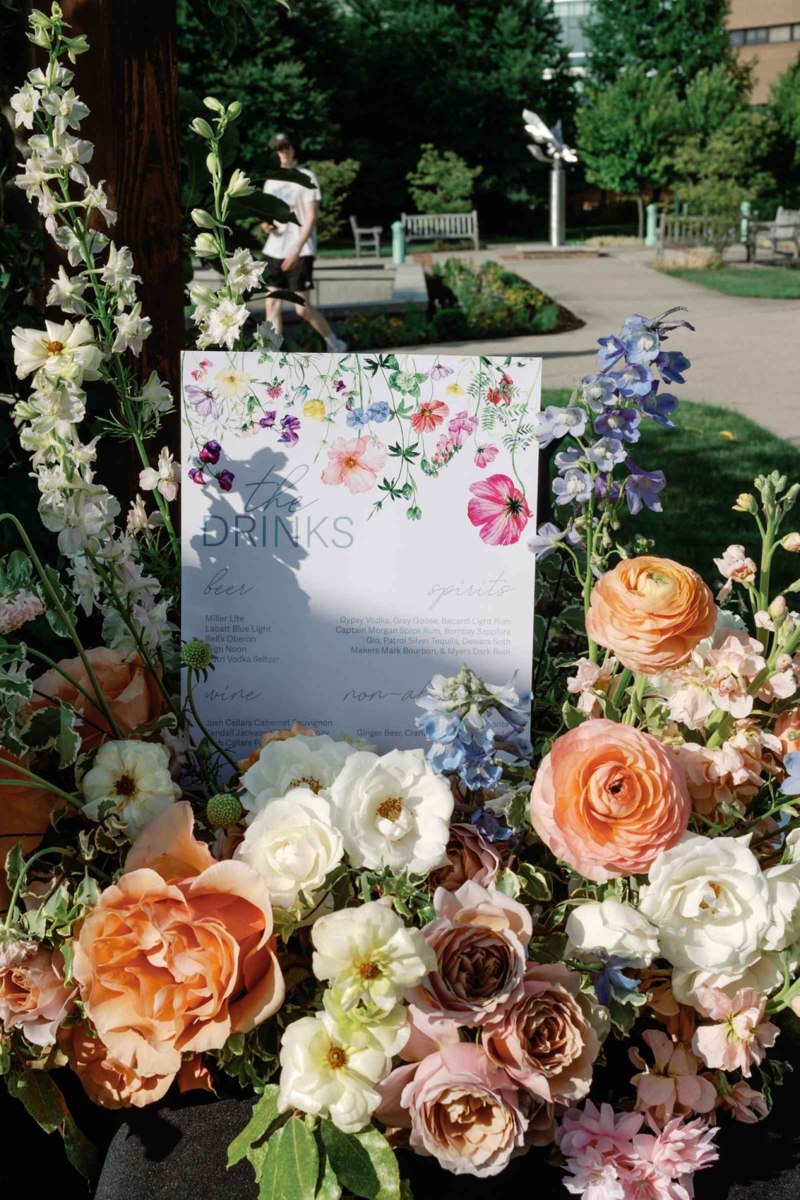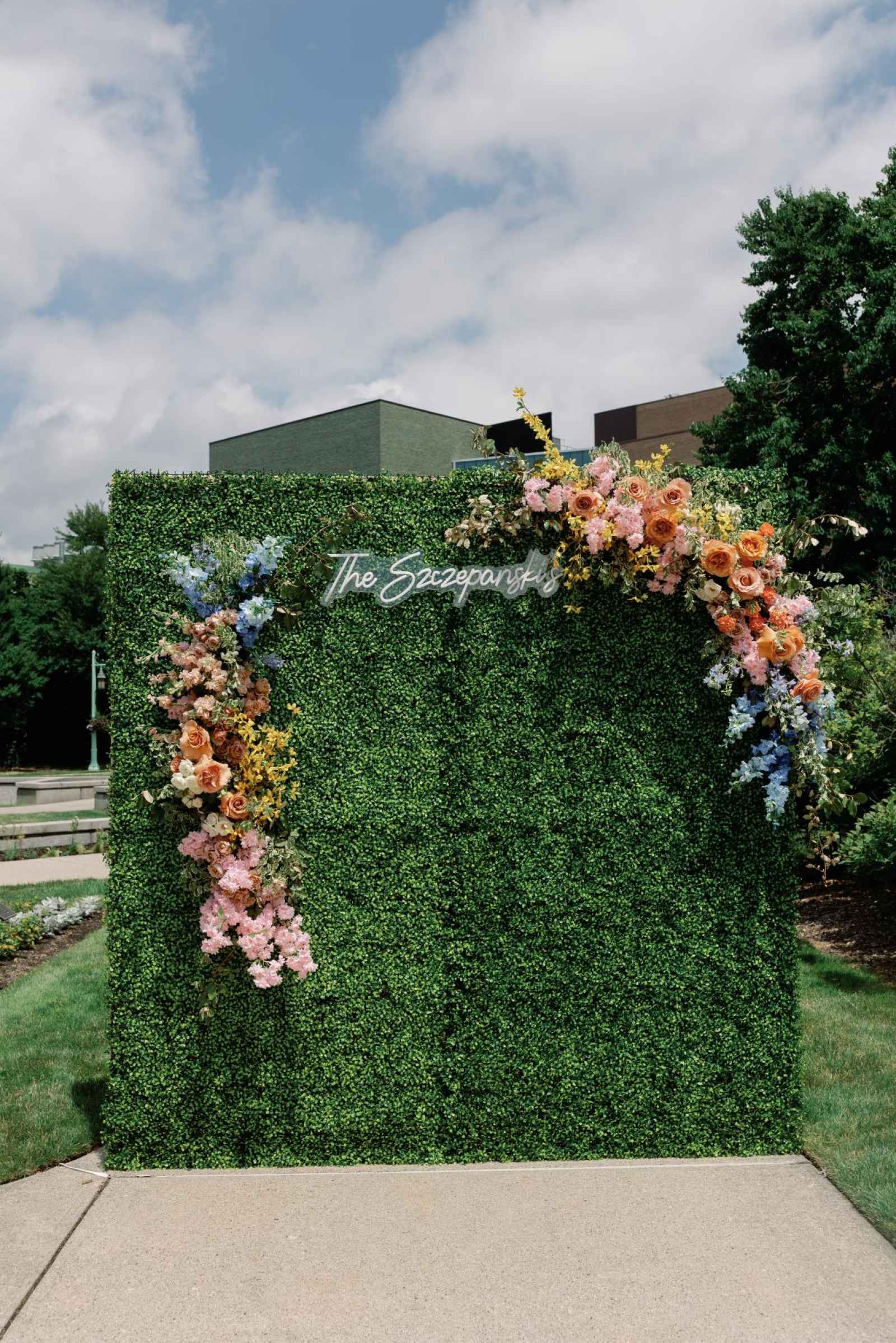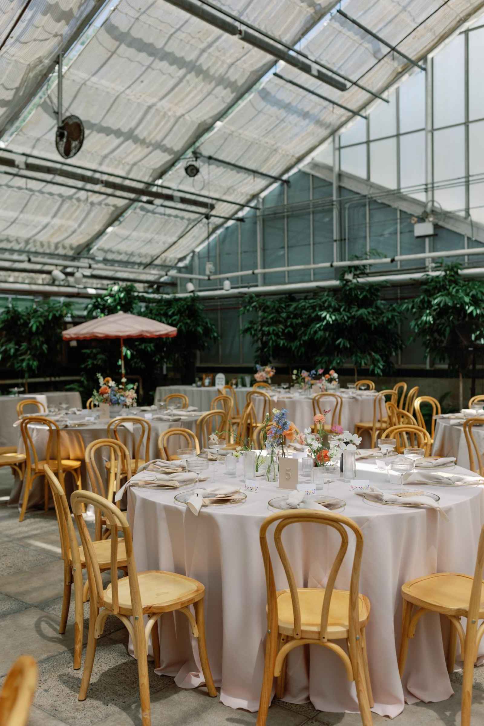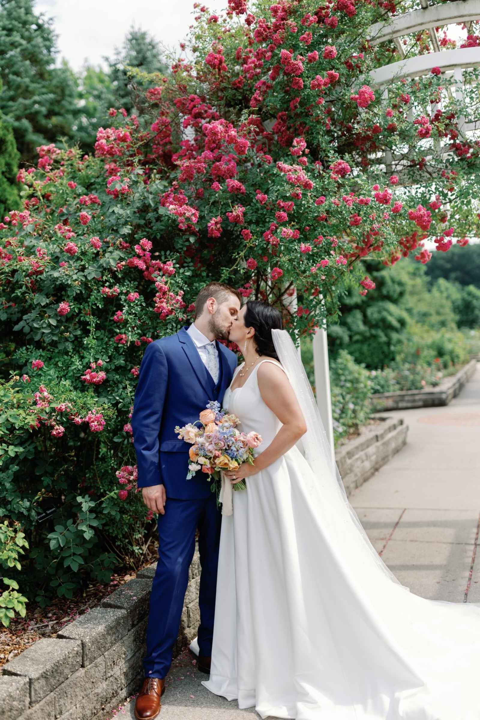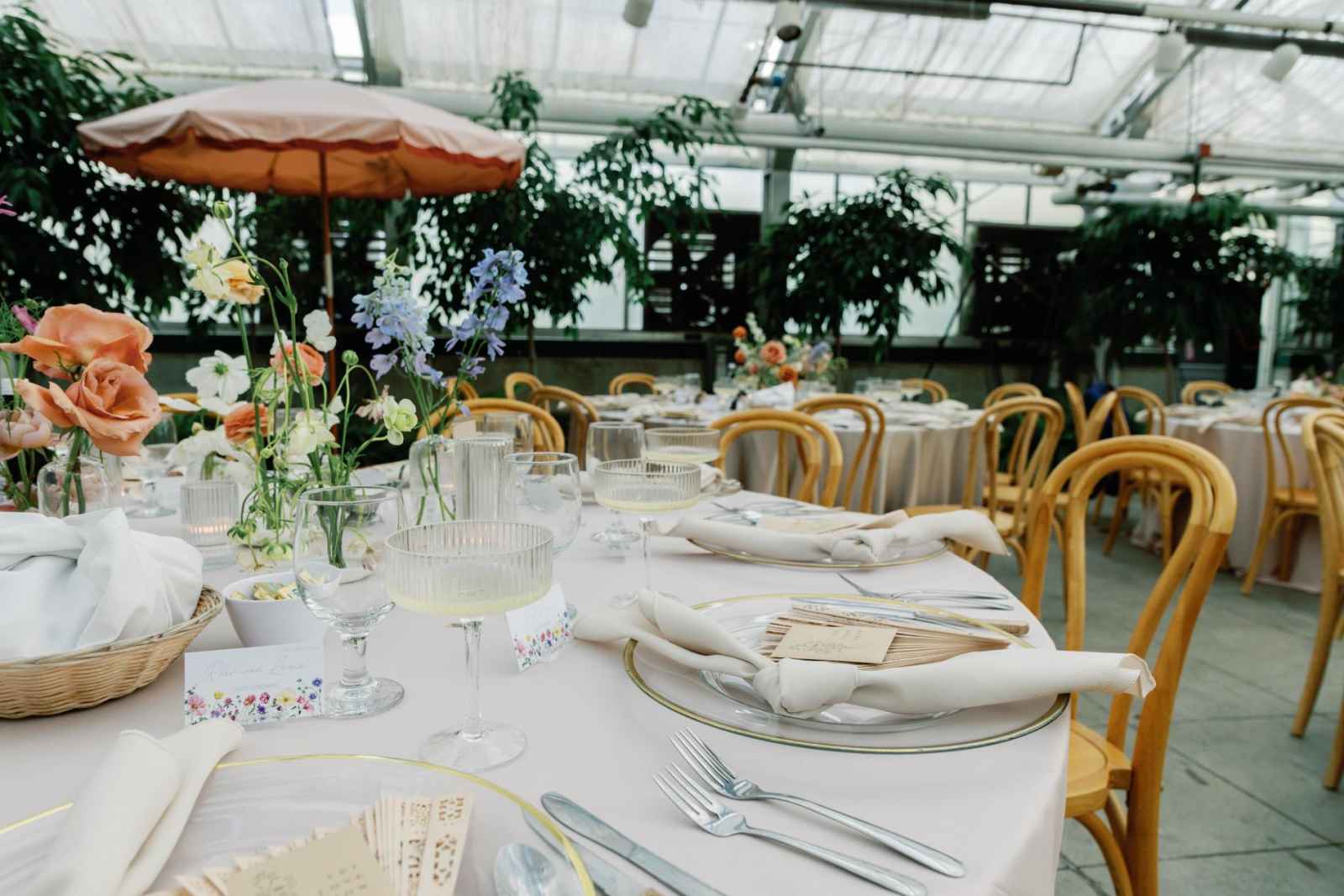 Kim and Michael’s wedding was a vibrant, romantic garden celebration brought to life by the venue’s natural charm, colorful blooms and the couple’s love of the outdoors. Drawn to the lush grounds, open spaces and the unique opportunity to host their reception in a greenhouse, they designed a day that felt whimsical, elegant and joyfully alive. One of the most unforgettable touches was their stunning floral arch (an early non-negotiable!) that All Grand Events + Floral transformed into a showstopping masterpiece. After framing their ceremony, it was moved behind their sweetheart table, becoming the breathtaking centerpiece of their reception and a detail Kim still adores every time she looks back at the photos.