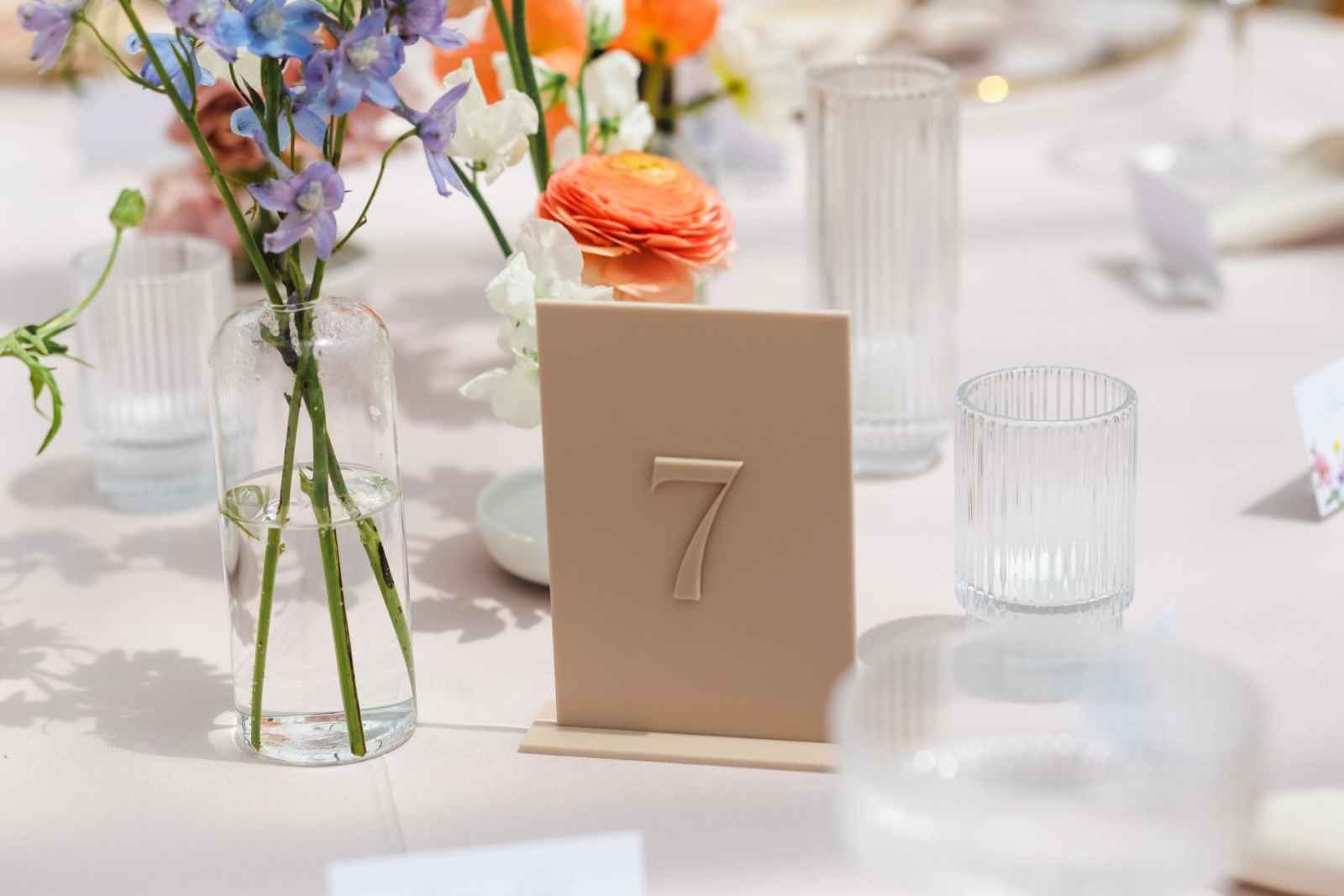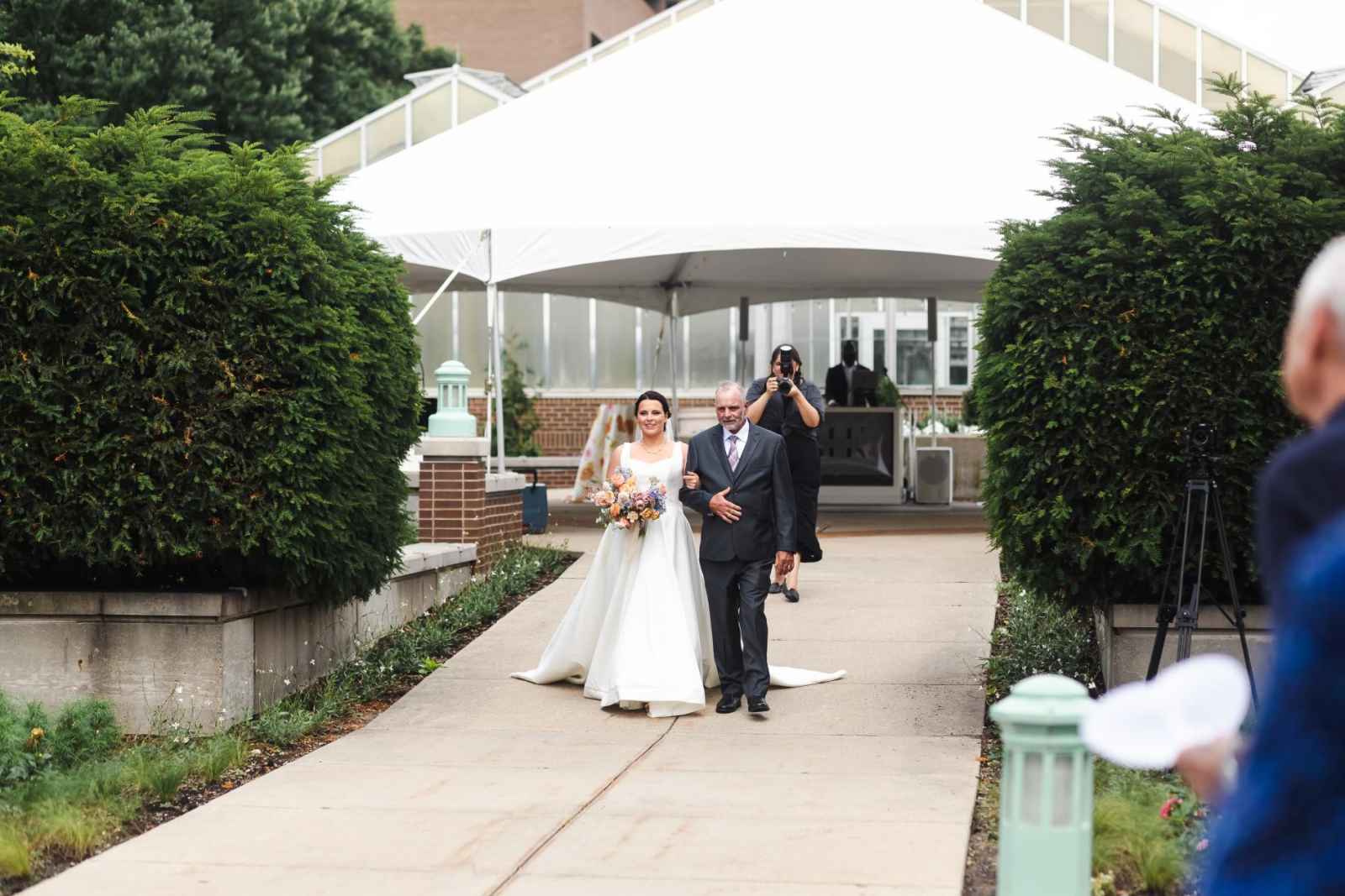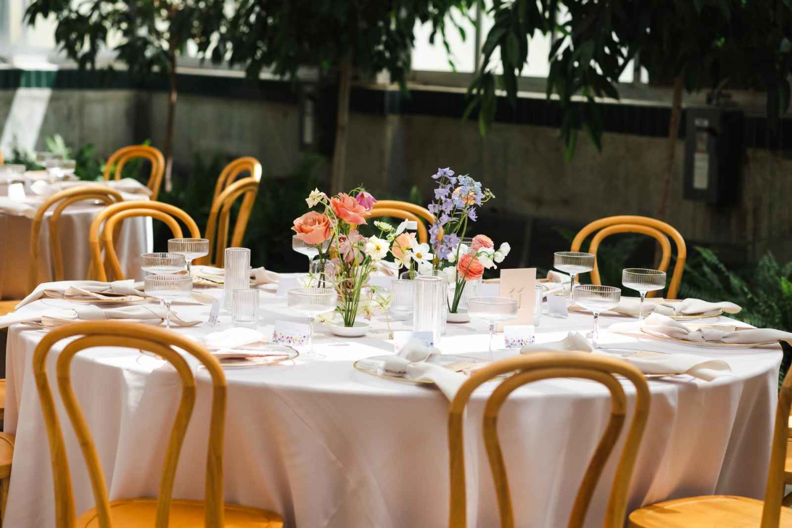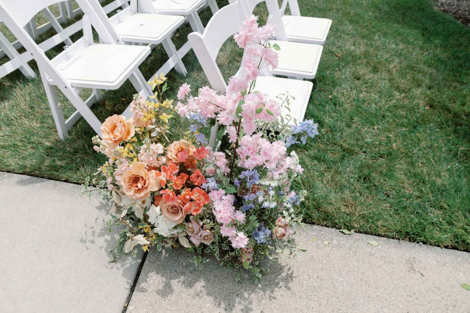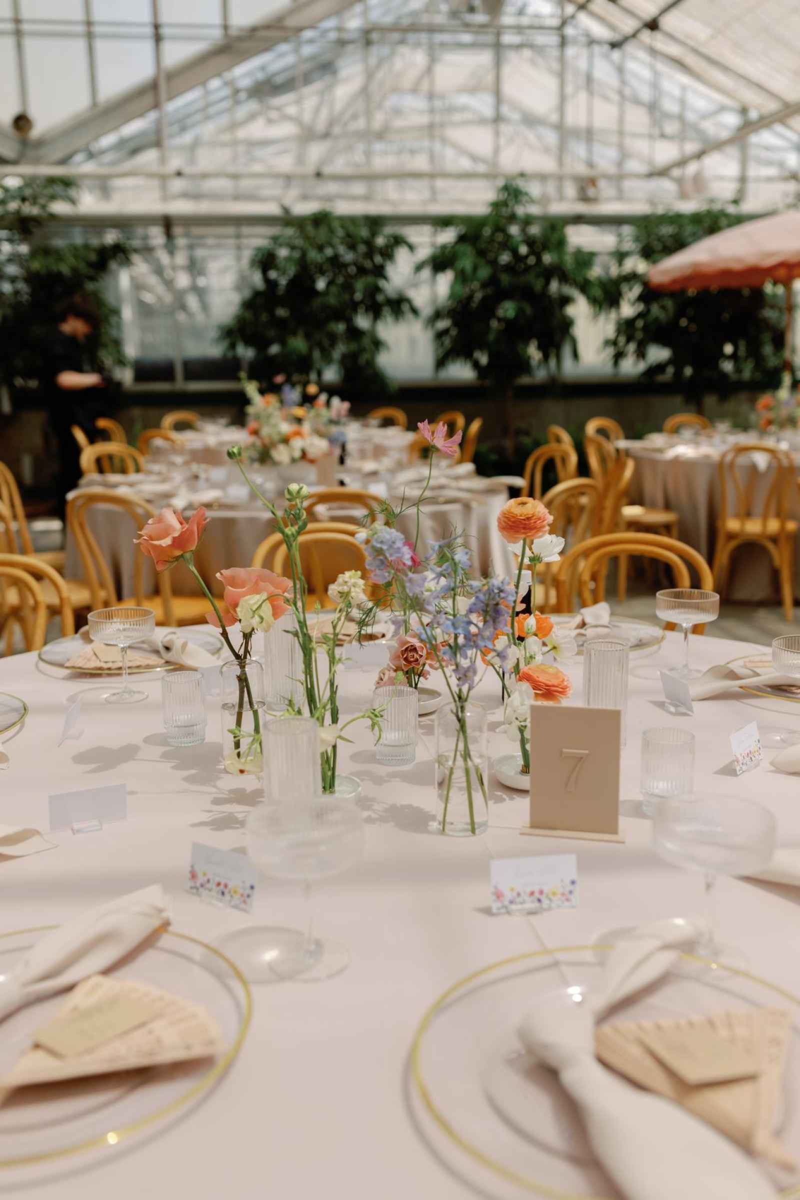Kim and Michael’s wedding was a vibrant, romantic garden celebration brought to life by the venue’s natural charm, colorful blooms and the couple’s love of the outdoors. Drawn to the lush grounds, open spaces and the unique opportunity to host their reception in a greenhouse, they designed a day that felt whimsical, elegant and joyfully alive. One of the most unforgettable touches was their stunning floral arch (an early non-negotiable!) that All Grand Events + Floral transformed into a showstopping masterpiece. After framing their ceremony, it was moved behind their sweetheart table, becoming the breathtaking centerpiece of their reception and a detail Kim still adores every time she looks back at the photos.