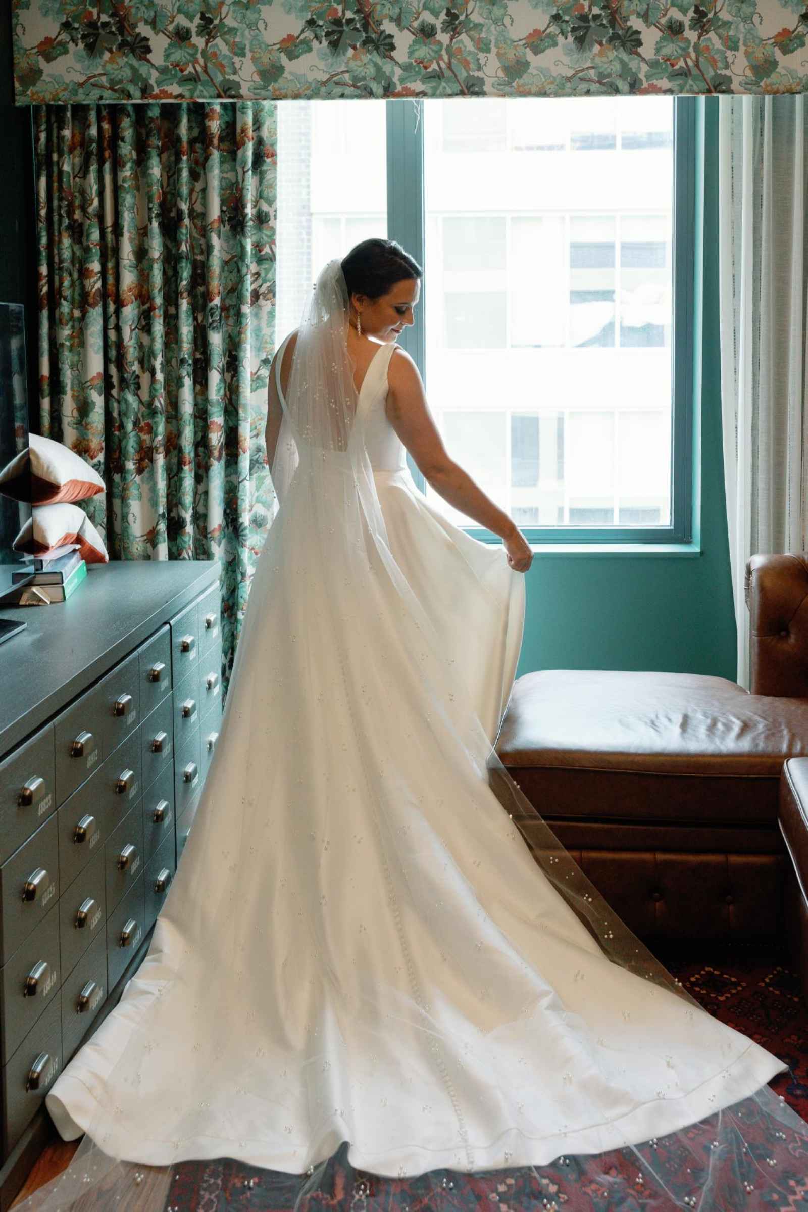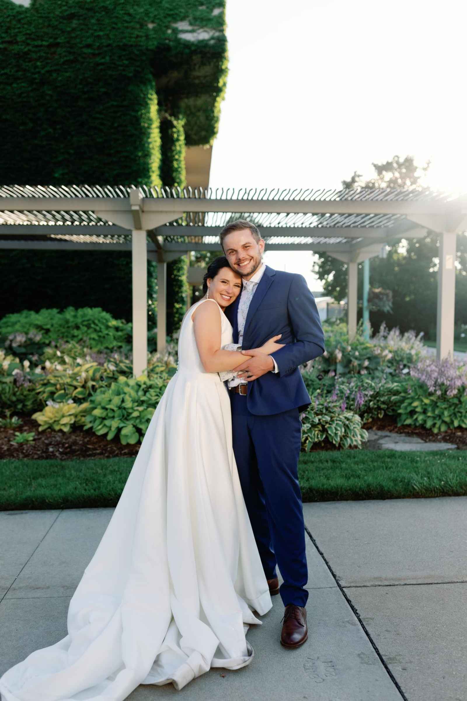 Kim looked absolutely stunning in her Justin Alexander gown from Becker's Bridal! We love how the timeless satin design contrasted with their whimsical, garden celebration.