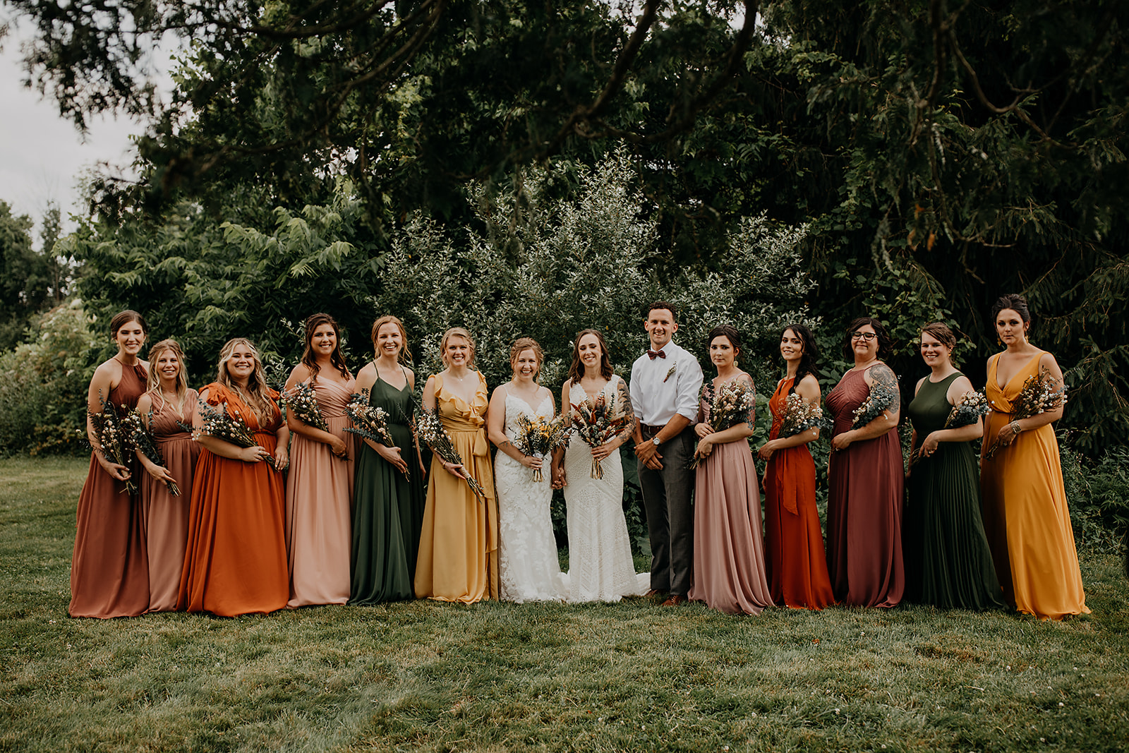Allowing your bridesmaids to pick from the entire color scheme instead of just one color opens up more doors for your bridesmaids. Plus, it makes your photos look fuller and gives your guests a better glimpse of your vision before the reception!