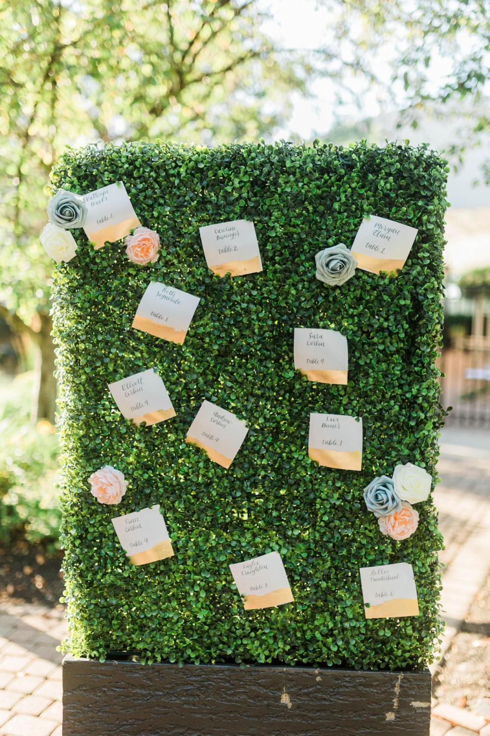 This three-tier cake was hand-painted to add a heartfelt touch. Emma explains this was a way to incorporate modern feel to an otherwise vintage tone. “While a lot of this shoot was meant to have a vintage and romantic feel, the painted cake, bright and vibrant color palette, hedge wall for the seating chart and hand-painted venue portrait combined a lot of current trends,” she notes.