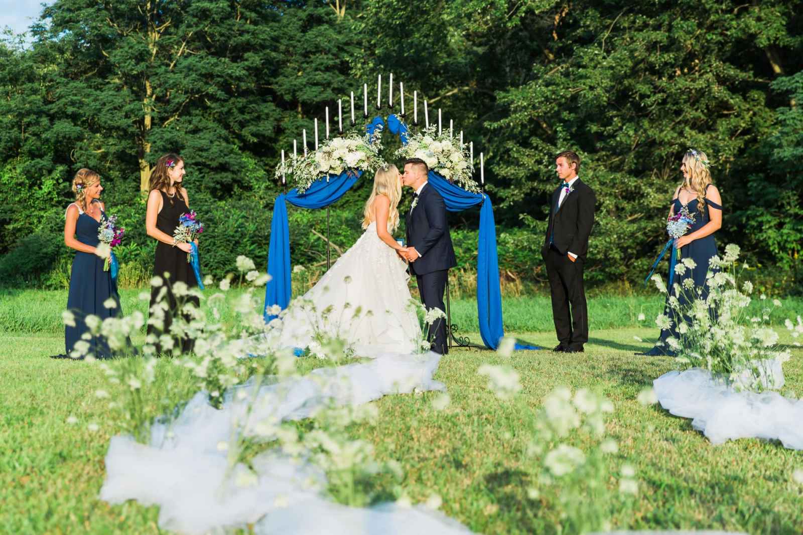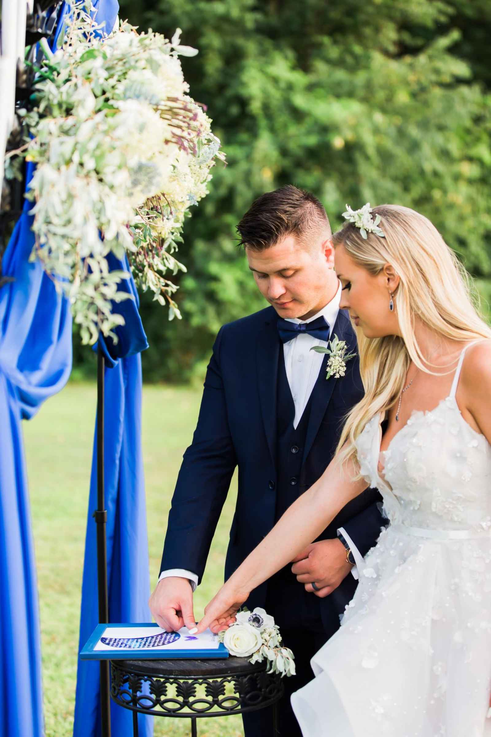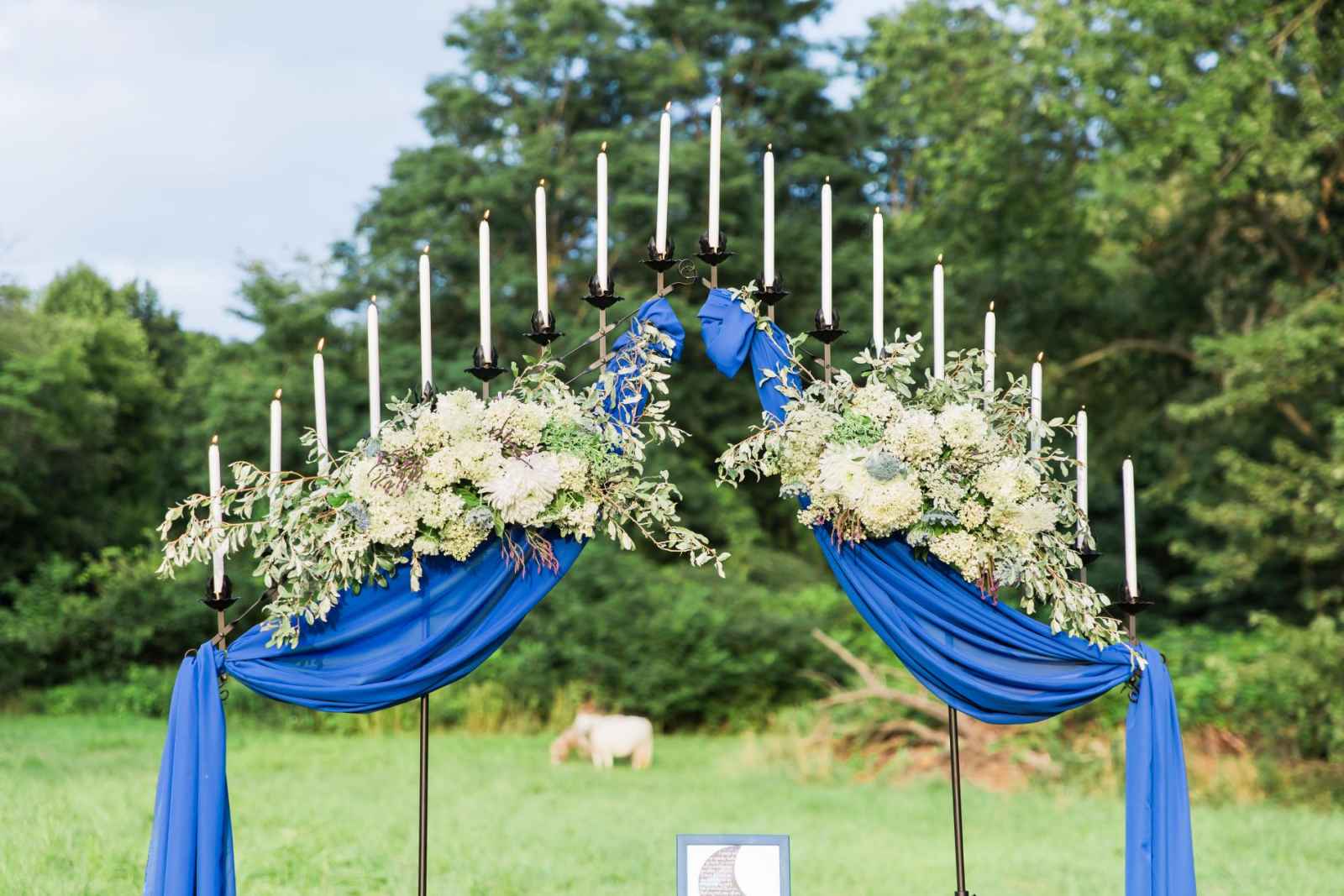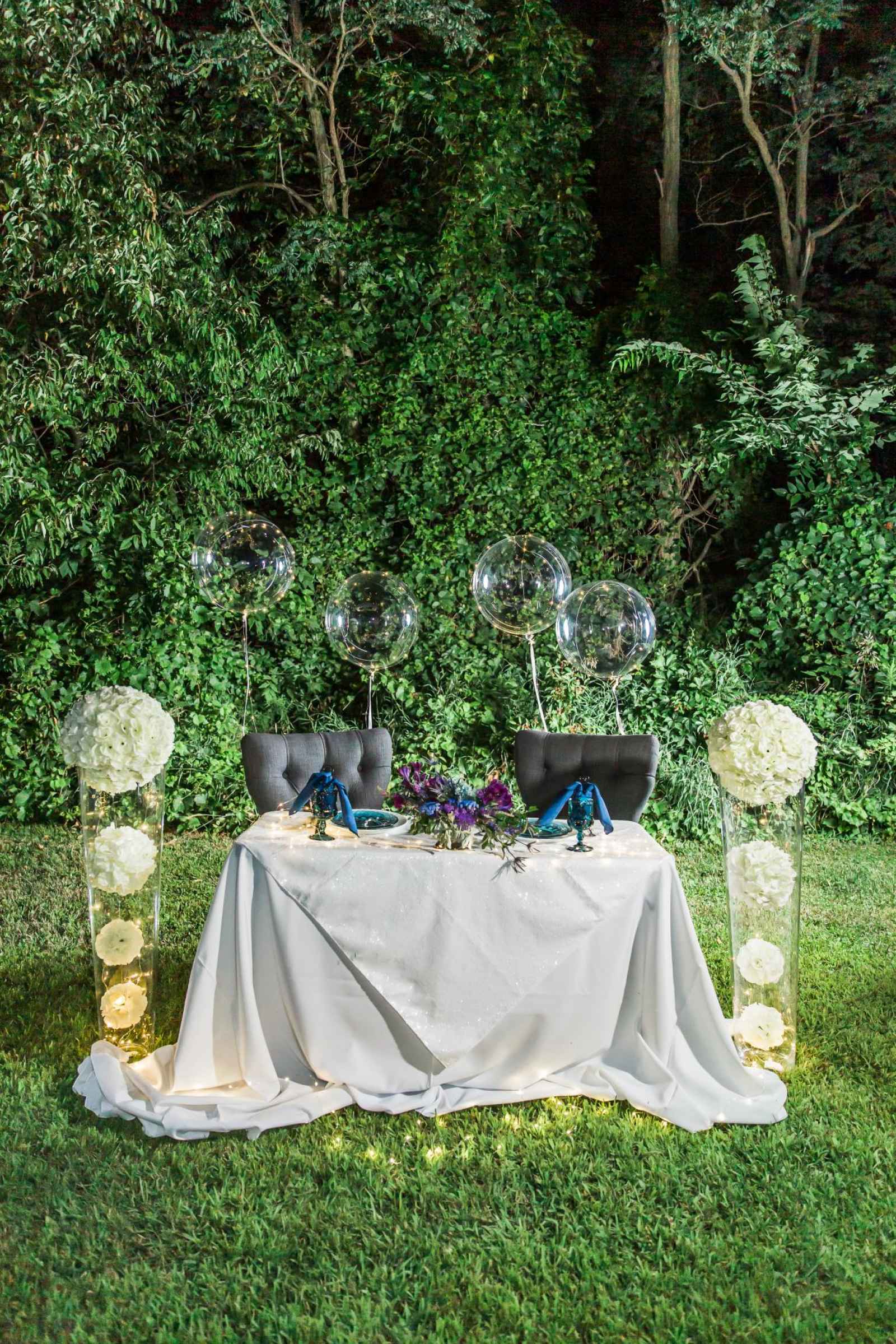 The team hosted this shoot in an outdoor field to inspire brides who want to share their nuptials under the stars. This gave room for lots of extra details! From the blue smoke bombs, towering candles and the constellation balloons, this team wasted no time packing creativity into this shoot’s atmosphere. And, of course, we love the unicorn!