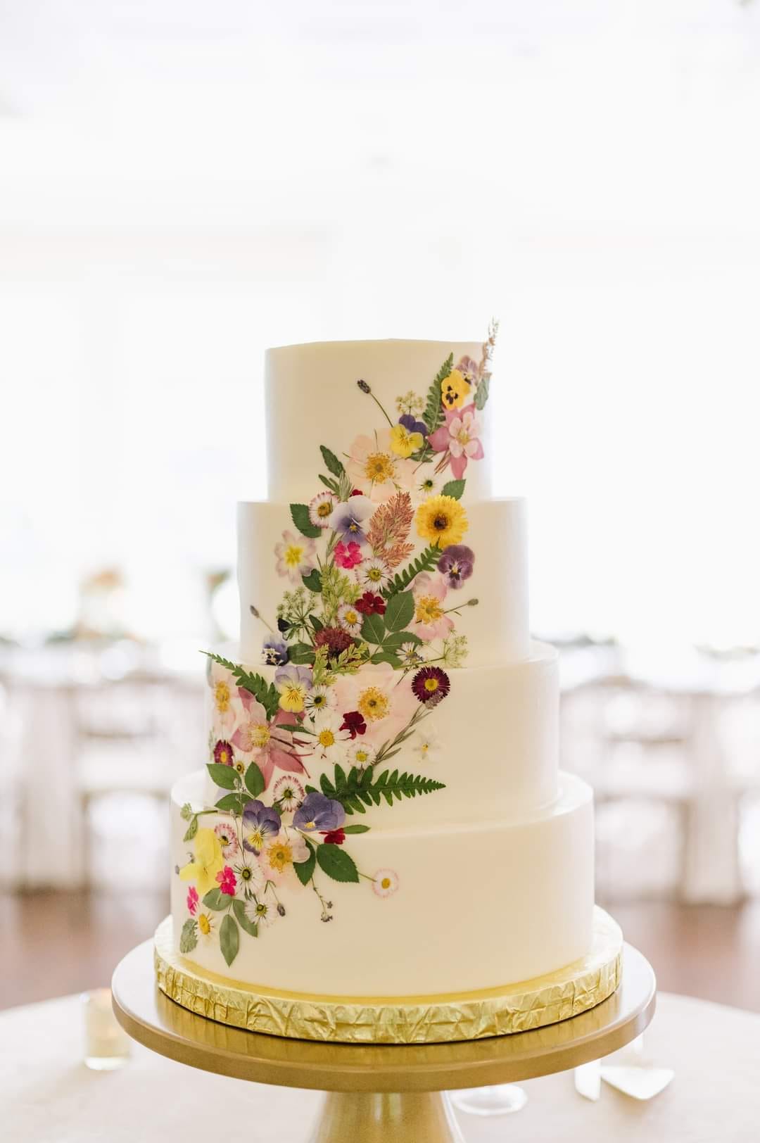 Classic Cakes created this all-white confection with sweet pressed floral details!