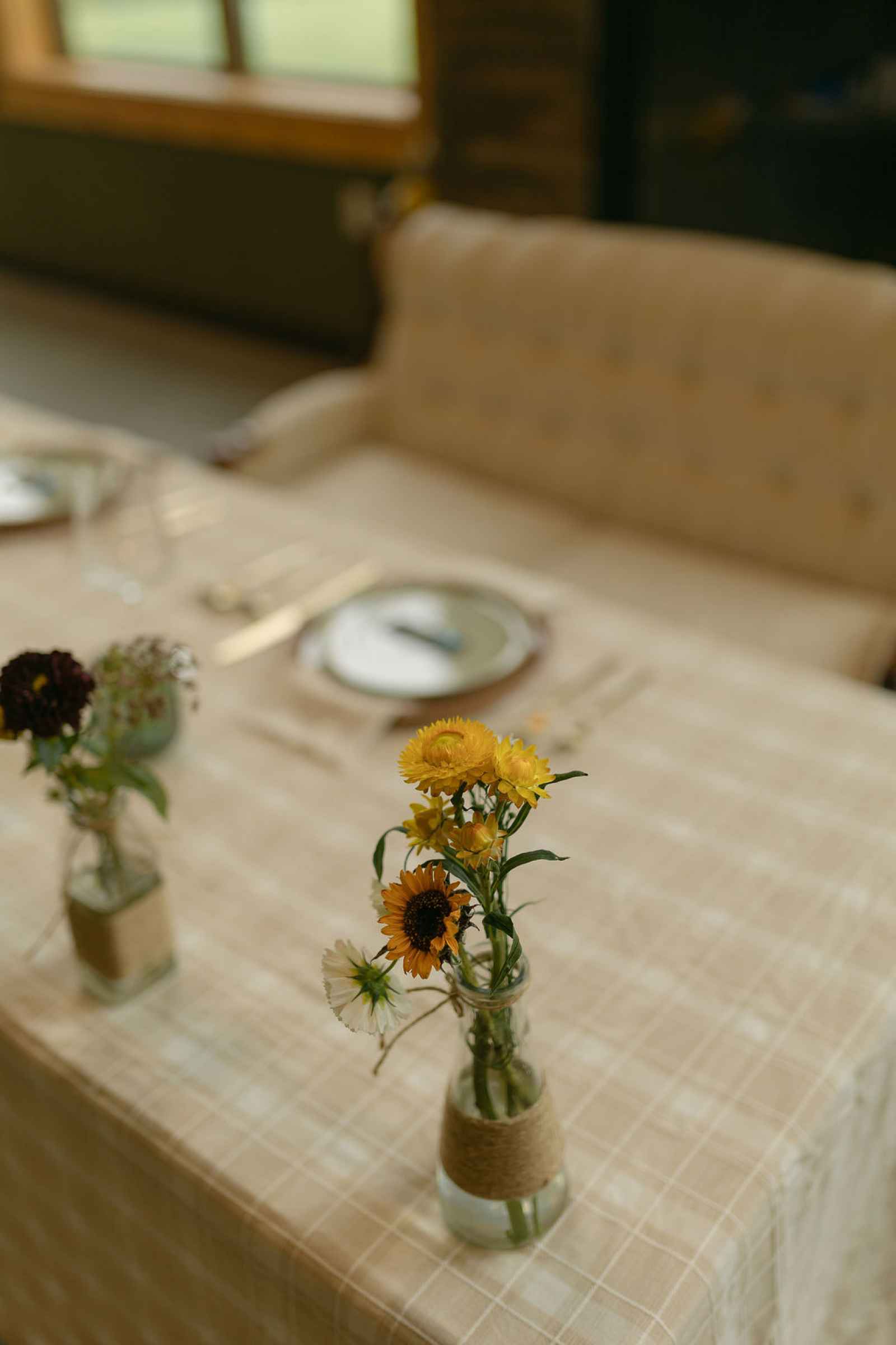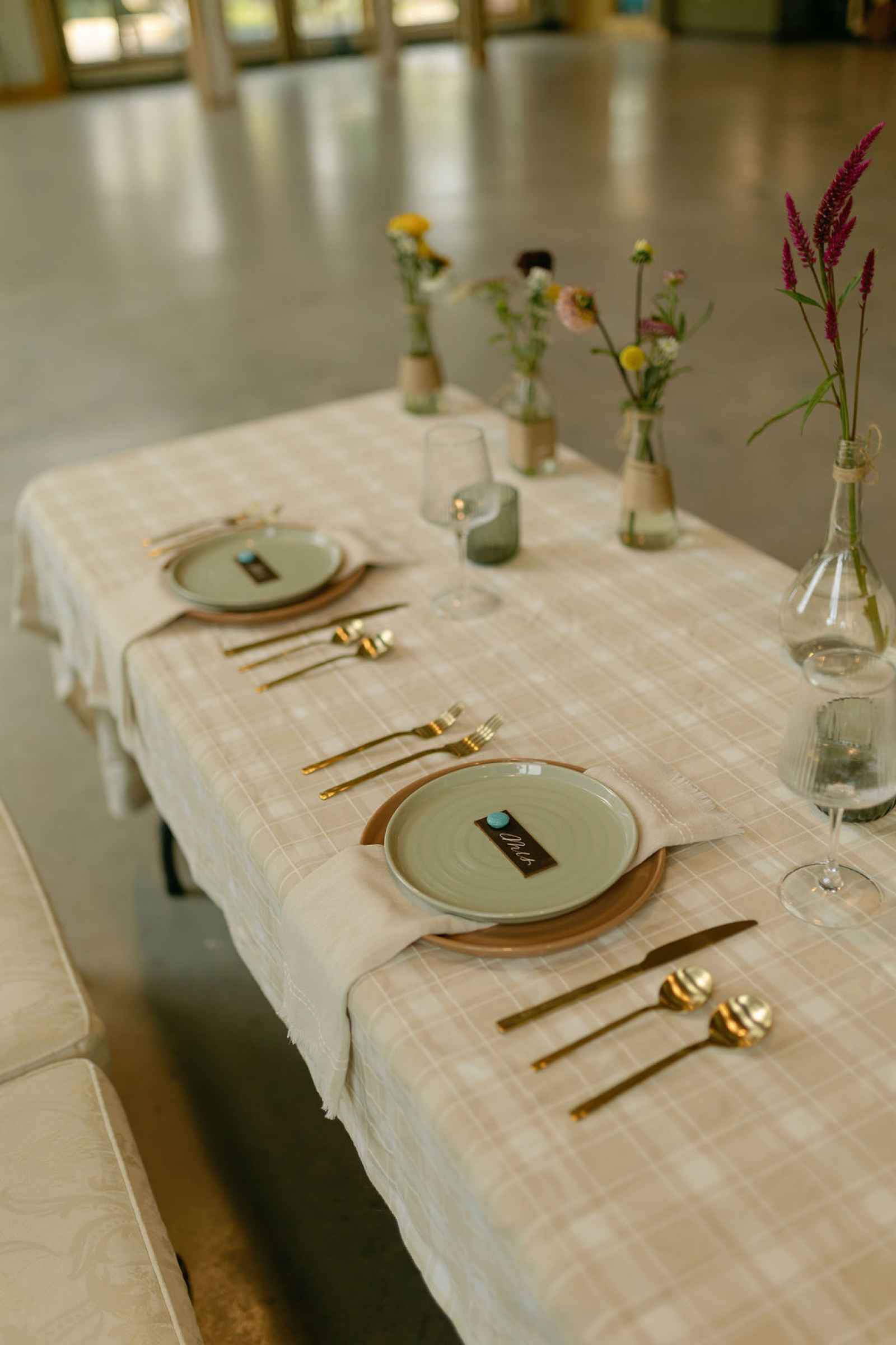 Florals were bold, textural and full of personality. Featuring zinnias, dahlias, cosmos, snow mountain blooms, strawflowers, grasses, eucalyptus and amaranth, the arrangements felt freshly gathered yet thoughtfully composed. The florist was given full creative freedom—and delivered beautifully! Vibrant blooms were balanced with neutral tones, while pops of turquoise subtly nodded to the western influence woven throughout the design.