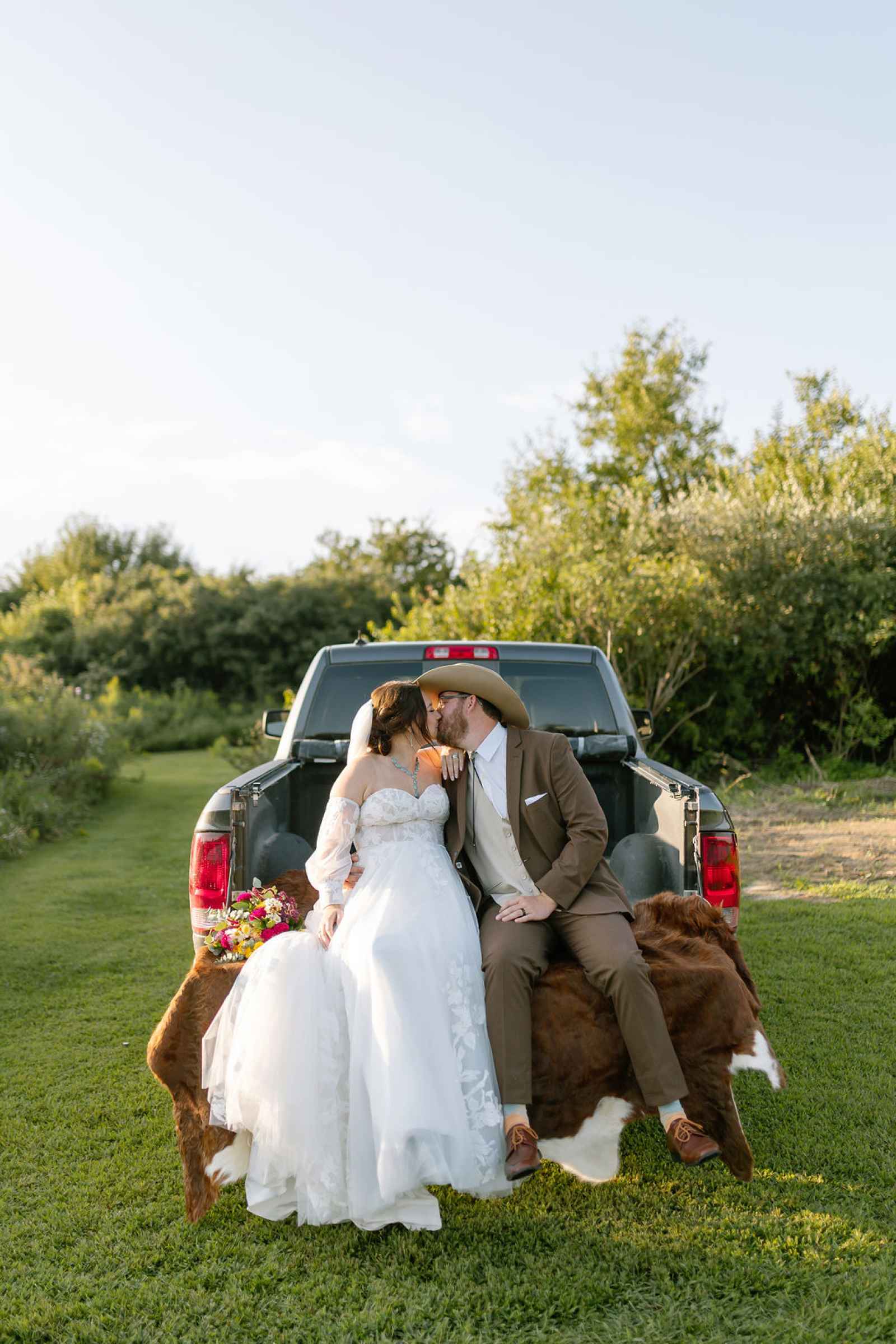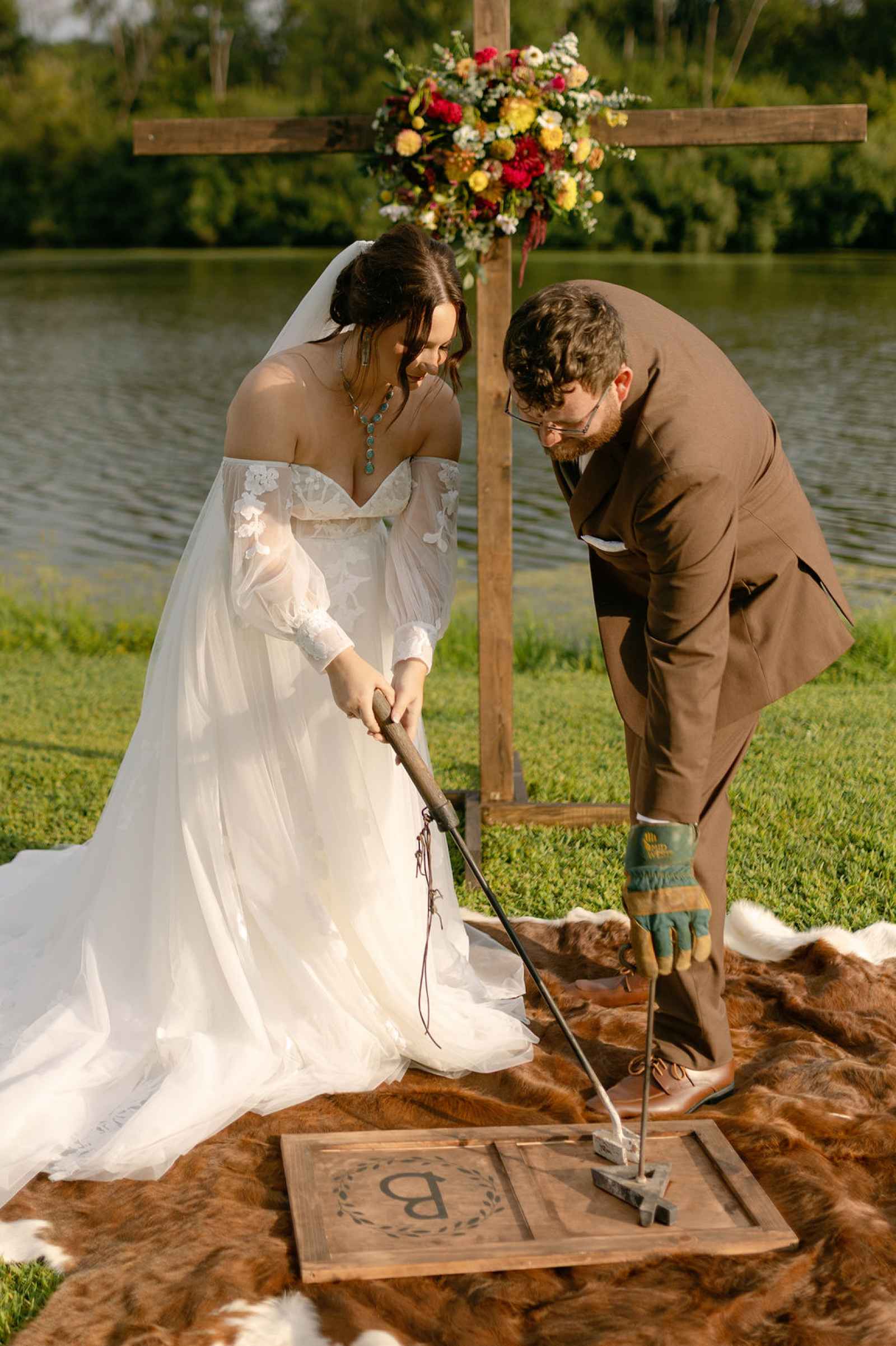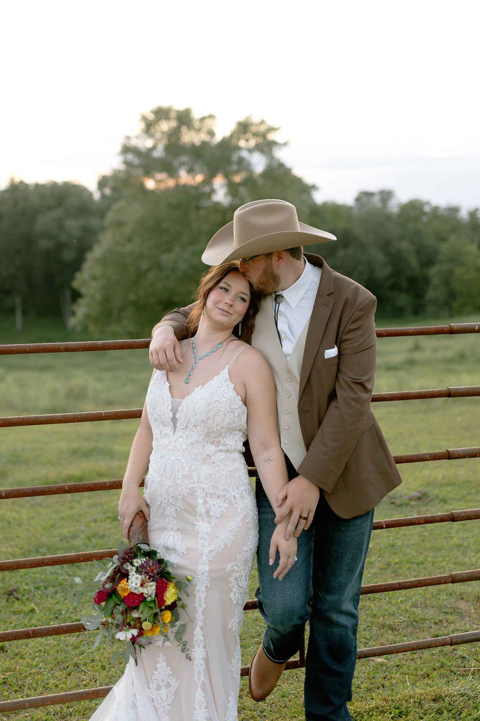 From the beginning, Amanda knew she wanted to design a shoot that honored the beauty of the Iowa countryside and the values many couples hold close: home, heritage and heart. Incorporating authentic western elements—like a branding-style unity ceremony—and layered vintage décor, the team created a non-traditional take on the theme. The result? A wedding aesthetic that felt grounded, meaningful and refreshingly different from a classic ballroom celebration!