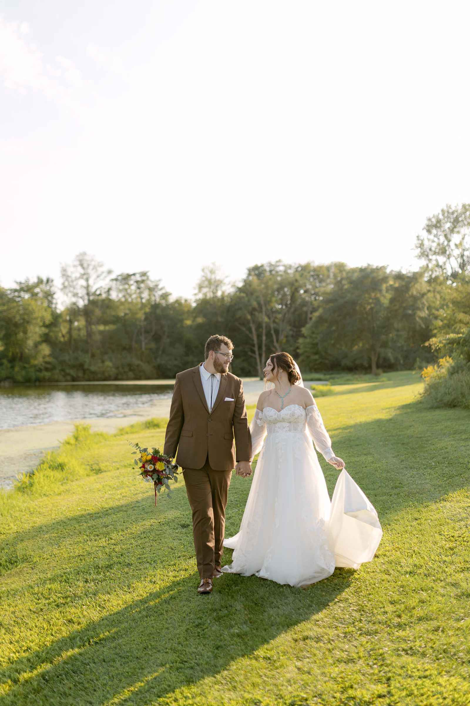 The venue selection was especially personal. Set at Camp Liberty, a place Amanda grew up visiting, the location instantly rose to the top of her list. With horses, a serene lake and sweeping countryside views, it offered endless storytelling opportunities. Beyond its natural beauty, Camp Liberty also features a newly built lodge ideal for receptions and even onsite lodging for wedding parties—making it as practical as it is picturesque!