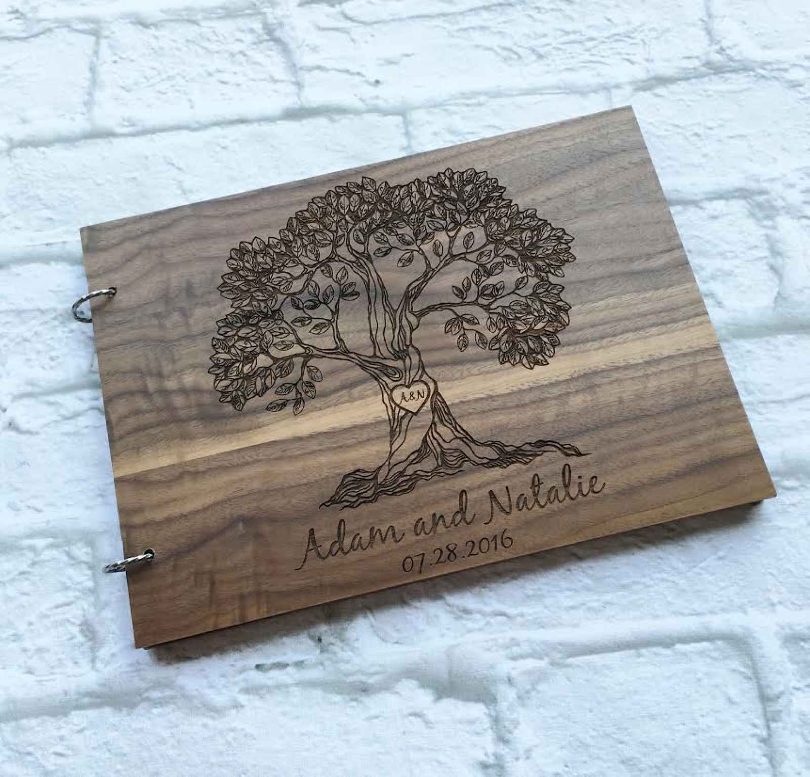 About the Product: All About Impressions’ unique, handmade guest book will keep precious memories of your special day. Their wedding guest book is enclosed in a wooden cover with French mill blank sheets. It is personalized via laser engraving and made with love just for you!