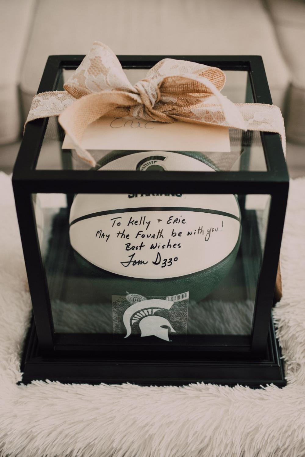 The original idea for the couple’s wedding was a destination wedding, to be held in Florida. But with Kelly in medical school and on a tight schedule, they ended up keeping their wedding in Michigan. Kelly loves anything vintage, so renting out their local township’s chapel was a great choice! “The hall had plenty of space and the guests were easily able to walk right from the chapel over to the reception after the wedding concluded. The look and style was a perfect fit for me, and the convenience was wonderful for our guests,” Kelly says.