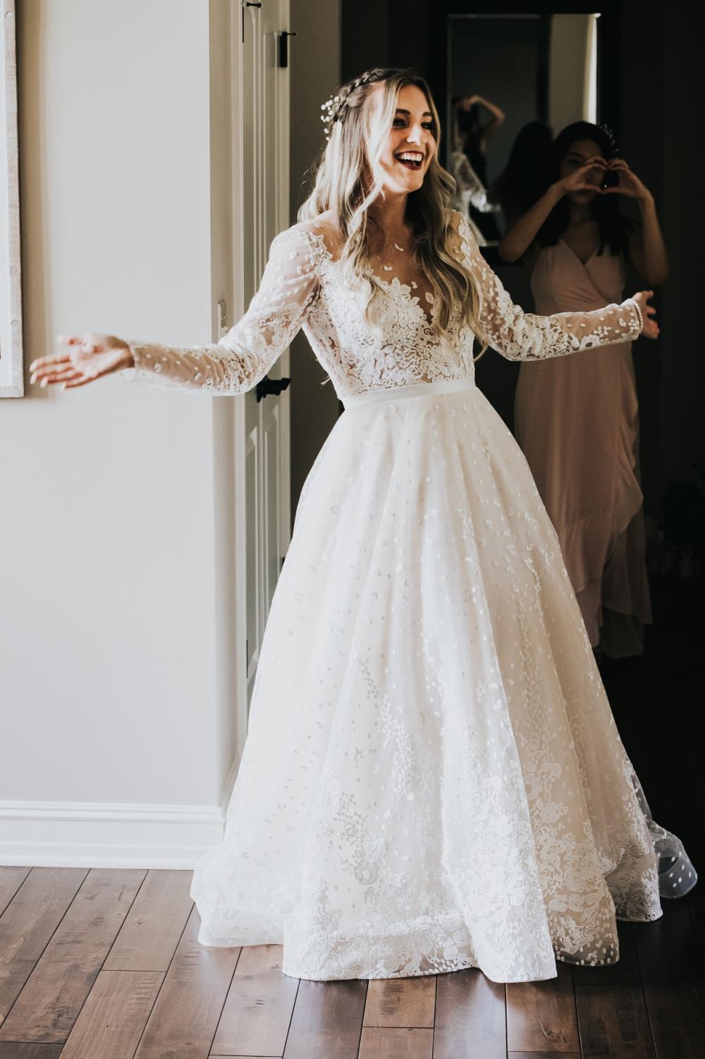 Tristyn decided to go the non-traditional route with her wedding attire. She chose to wear two dresses during her big day and ordered both from international designers on Etsy. Because of this, she was able to have a special moment with her great aunt. "Both had to be taken in which ended up being a special experience for me because my great aunt agreed to tailor them for me," Tristyn gushes. "She taught me how to sew. Having her tailor my dresses was sentimental!" And we think she looks stunning in both of her gowns!