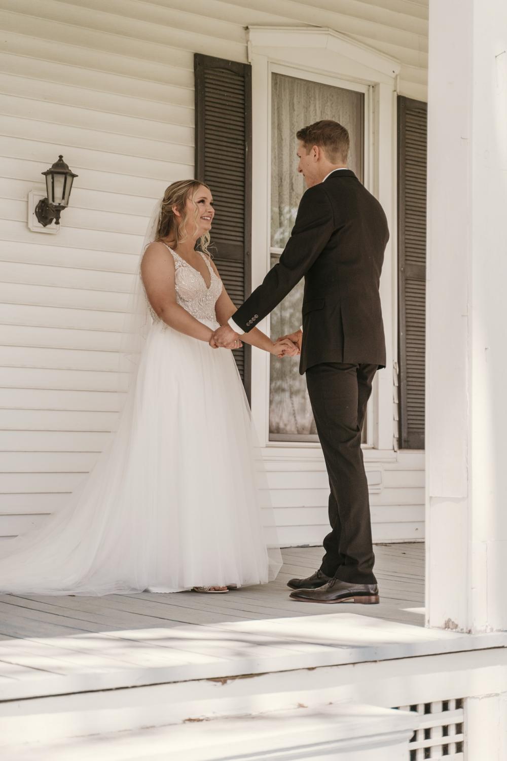 Planning most of their wedding from Texas was the hardest part for Ashley and Brant. "I hadn’t done much planning before we got engaged," Ashley admits. "There were certain things I knew I wanted, like getting married outside, but I had not thought too much about the specifics until after we got engaged." Pinterest and real wedding stories helped Ashley narrow her vision, and Sandy, Ashley's planner, brought it to life. Despite not being able to see the venue, they started planning by booking one then moved along to a caterer, photographer and other vendors since everyone was booking quickly due to the wedding backlog COVID caused!