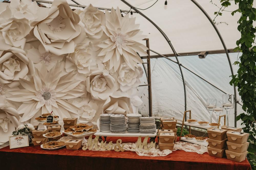 Since the happy couple wasn't sure where their wedding would take place, a lot of their decisions came from visiting the businesses' websites or reading reviews. That's actually how they landed on their venue. "We loved the look of the greenhouse and the option to have our ceremony outside. The venue was already so beautiful without any décor, so we knew it would be the perfect place to bring our wedding vision to life," Ashley raves. They kept the décor and color palette neutral to blend beautifully with the natural greenery around them. To support small businesses in such a turbulent time, Ashley and Brant bought many of their décor elements from Etsy artists.