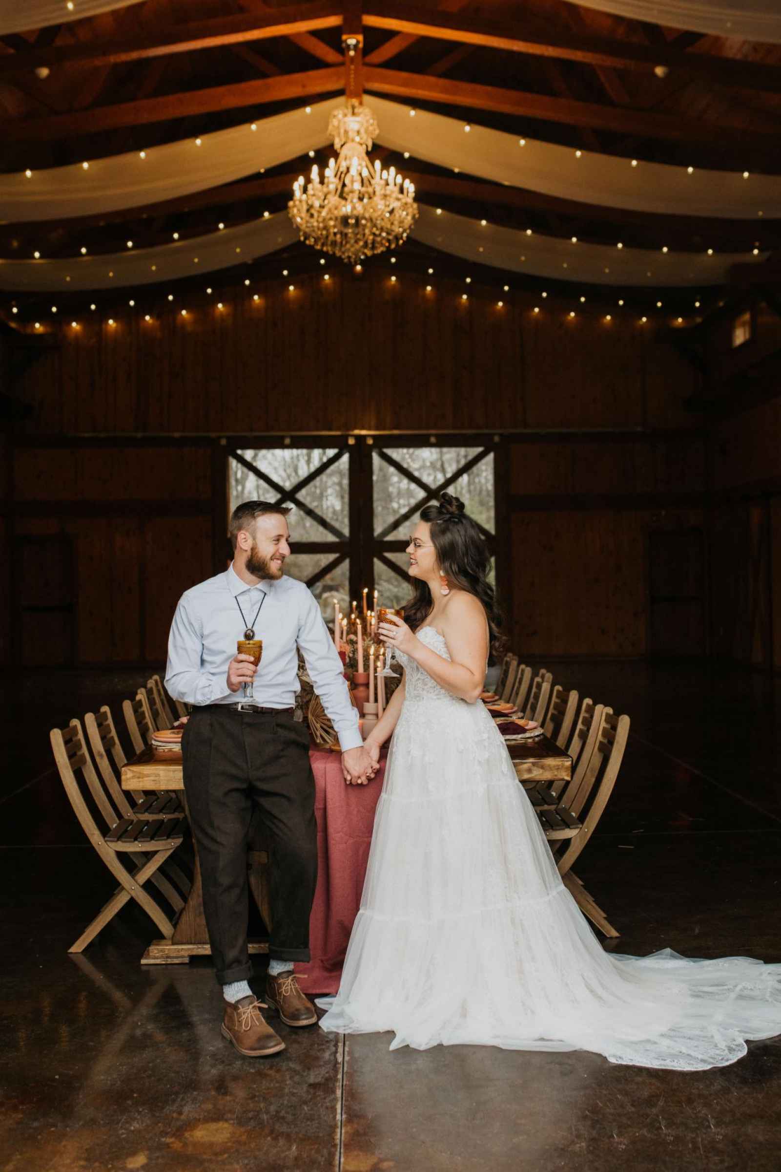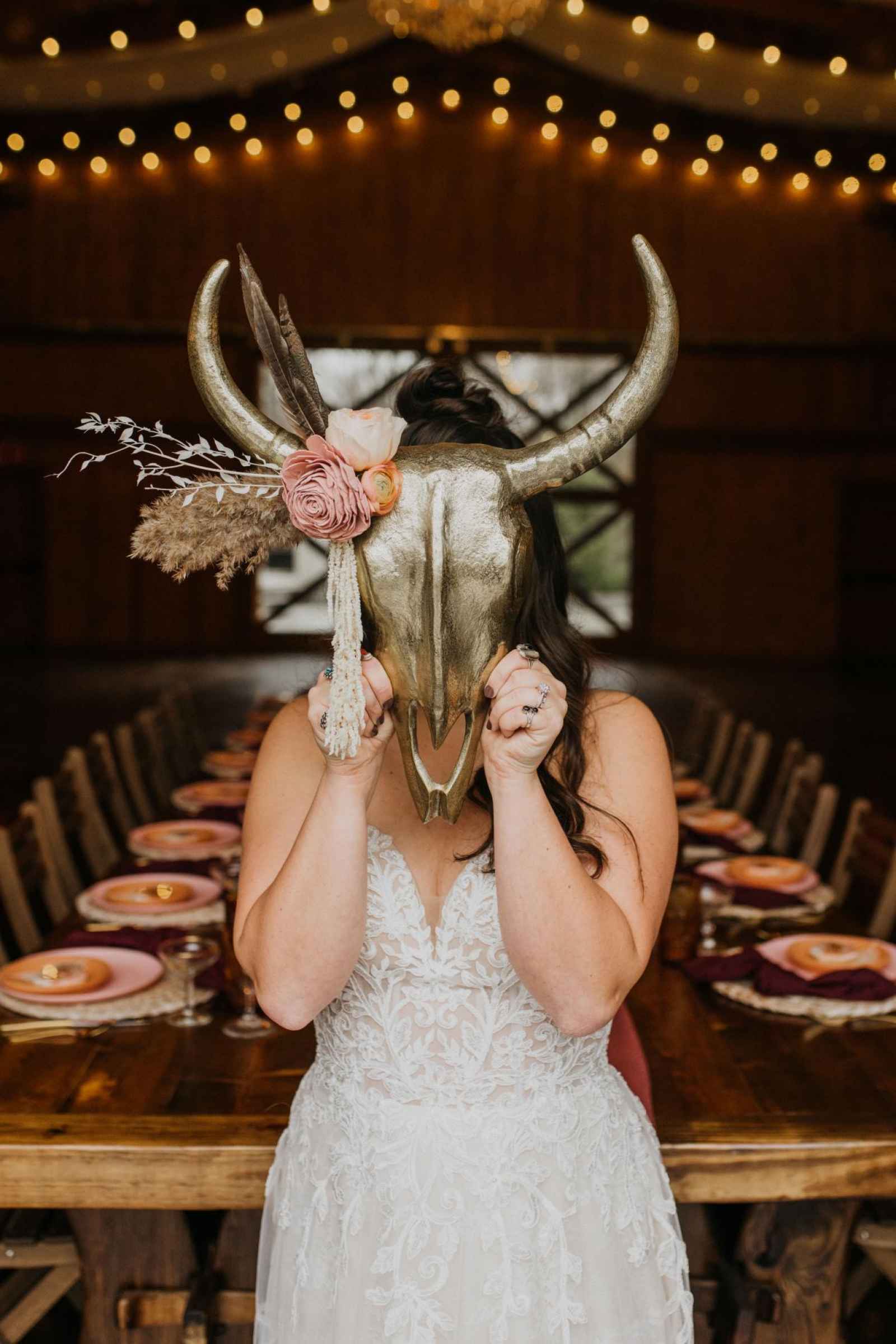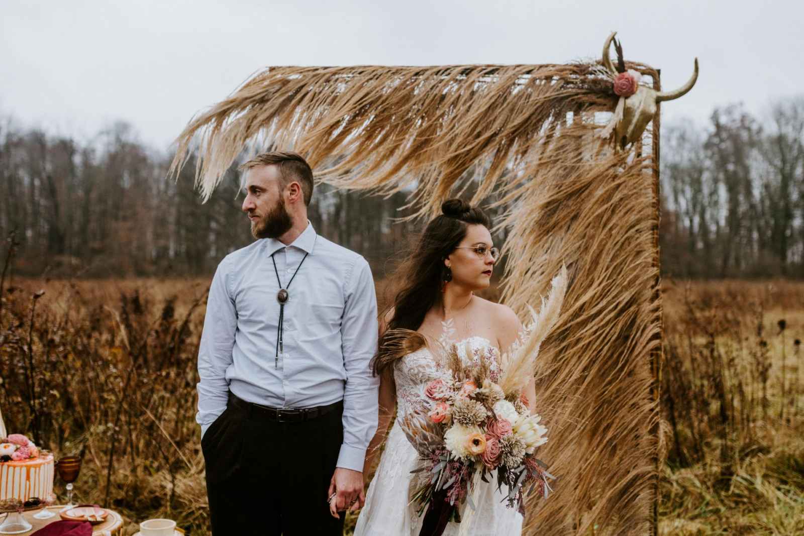 This town might be small, but the ideas and hearts are big! Crawfordsville, Indiana took home the prize of being named the Best Wedding City of 2020 in WeddingDay's very own contest last year. The locals rallied together to show their love for their hometown, bringing us to this quaint town to host this exclusive cover shoot. The team of local award-winning vendors were excited to share their love and talent for their hometown of Crawfordsville. “We pulled inspiration through local vendors and their aesthetics,” says Crawfordsville wedding planner and florist, Vanessa Rische, owner of Copper Jade Events & Design. Vanessa and the team wanted to incorporate some West Coast trends to showcase a few unique details you normally wouldn’t find in a barn wedding. Captured by Crawfordsville photographer, Abbey Elaine Photography, this cover shoot pushes the boundaries to create a Southwestern “Modern Boho” barn vibe you won’t find anywhere else.