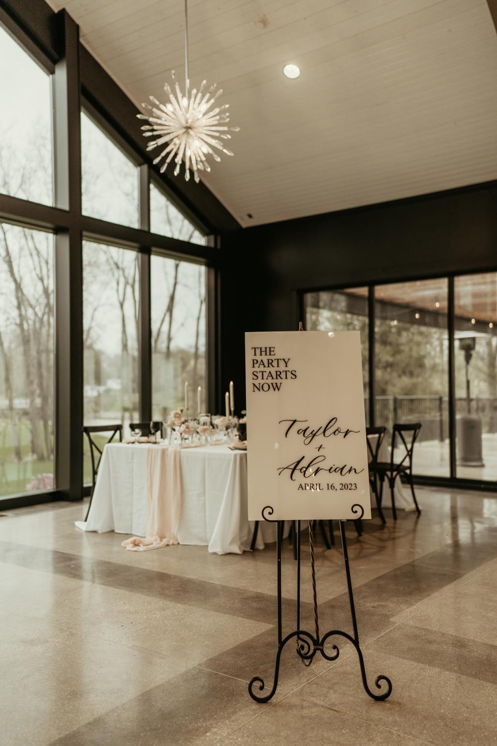When you walk into this stunning venue, you are met with sleek black lines surrounding the windows and an elegant atmosphere. The creative team behind this shoot wanted to play off of that feeling. "I named this style "Elegant Black Tie" because I wanted to pick a style that complemented the Everhart Gathering Place with the modern, black and neutral, well-lit space. I pictured high class, bold—with the sequin dress—and elegant," Gabriella, the photographer and planner for this shoot, shares.