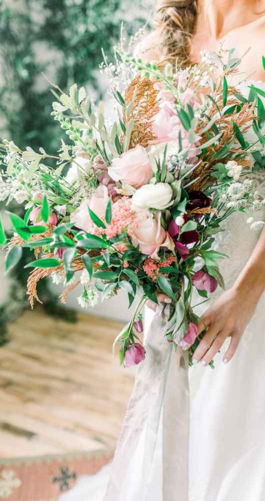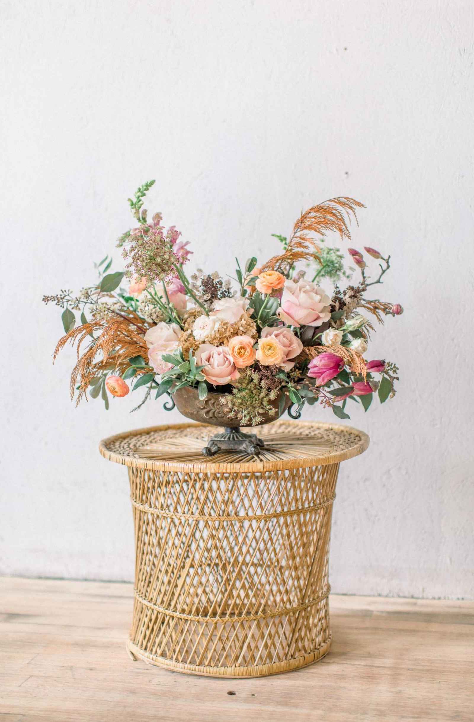 Ellie, owner of The Budding Florist and Christine went forging for a lot of the greenery and florals that were used. Christine says, “We choose ‘Coco Loco’ roses that have these beautiful mauves with brown tones to highlight the coffee aspect of the shoot.”