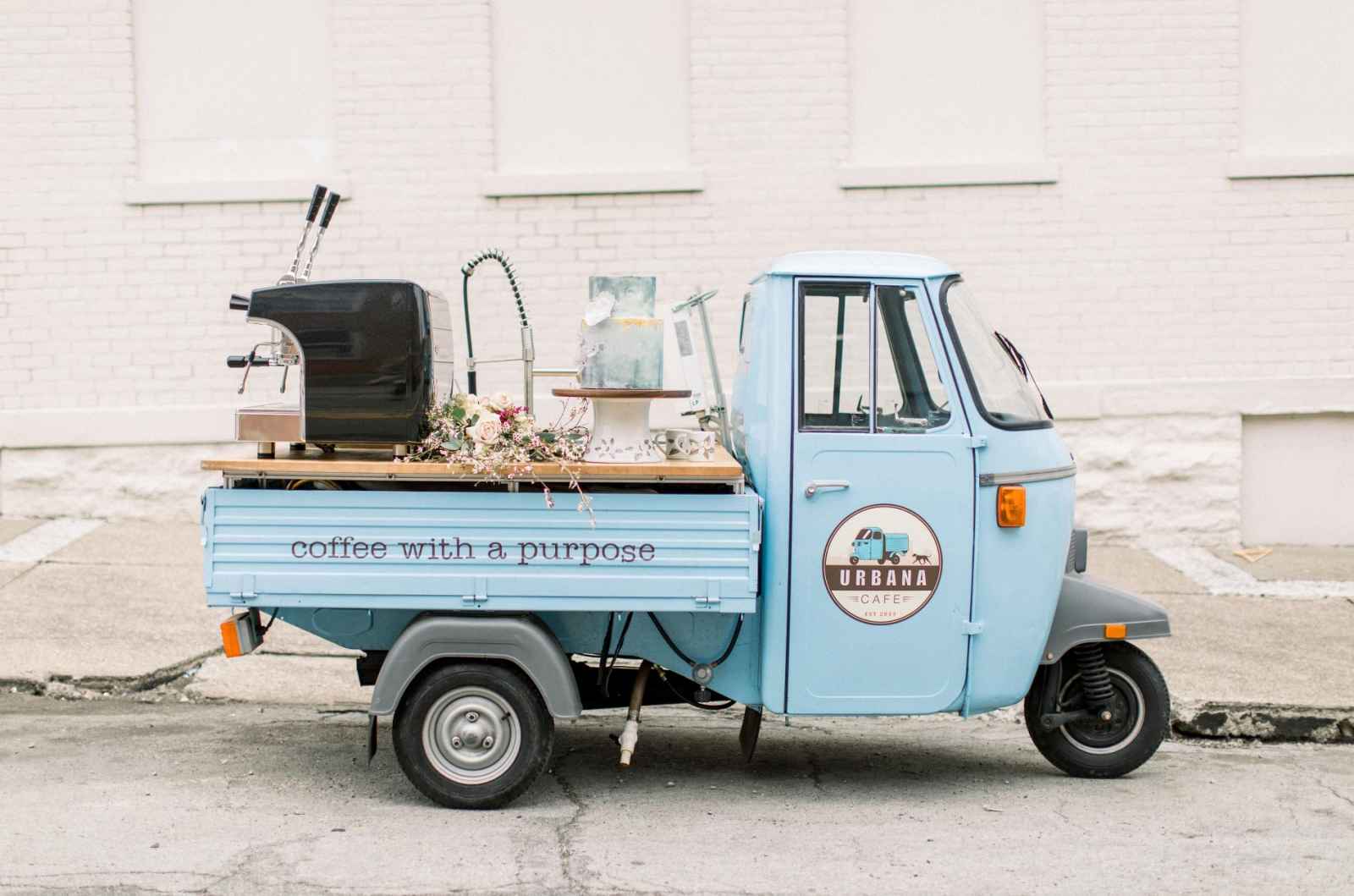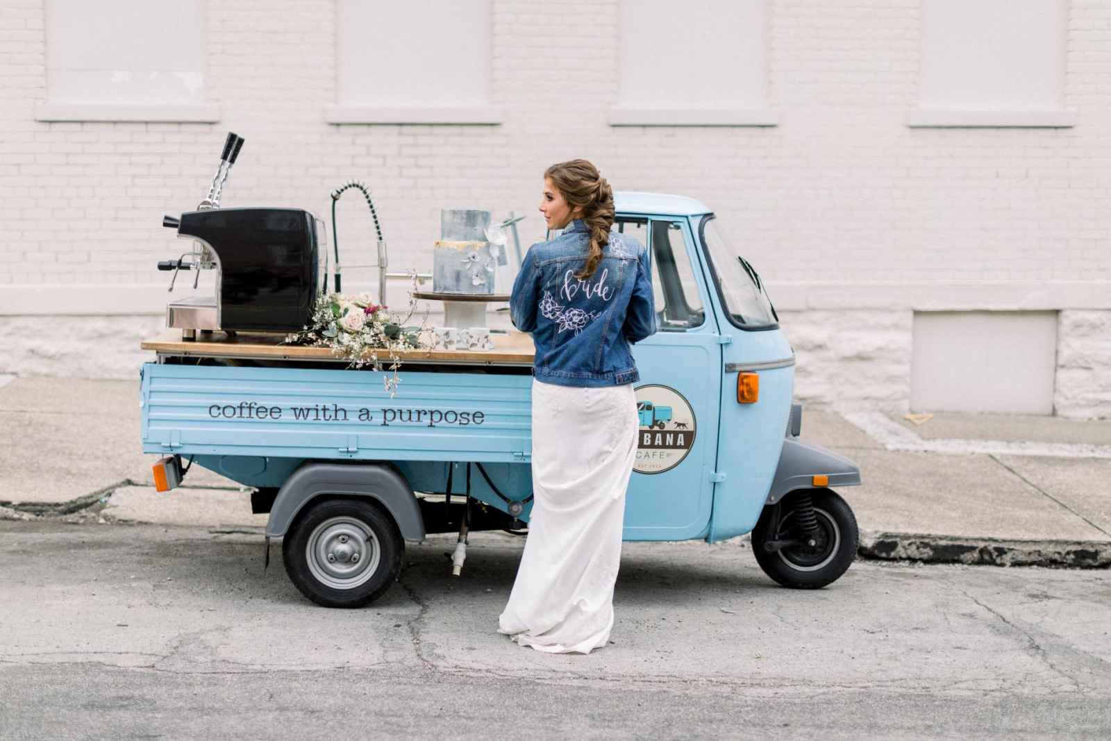 Christine Kim of Ji Chérir Photography dreamt of a style shoot that would satisfy any hipster or coffee lover as it centered around the use of a Vespa Ape, courtesy of Urbana Cafe, a Cincinnati mobile coffee bar.