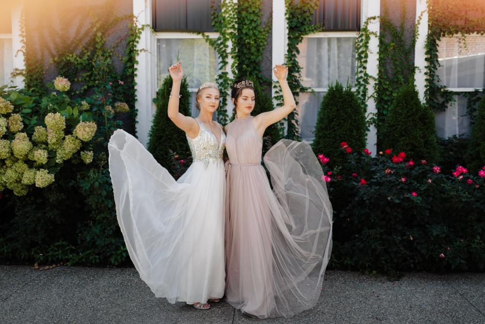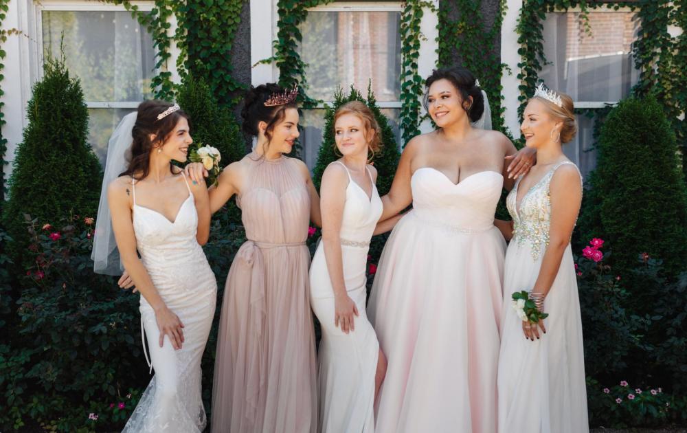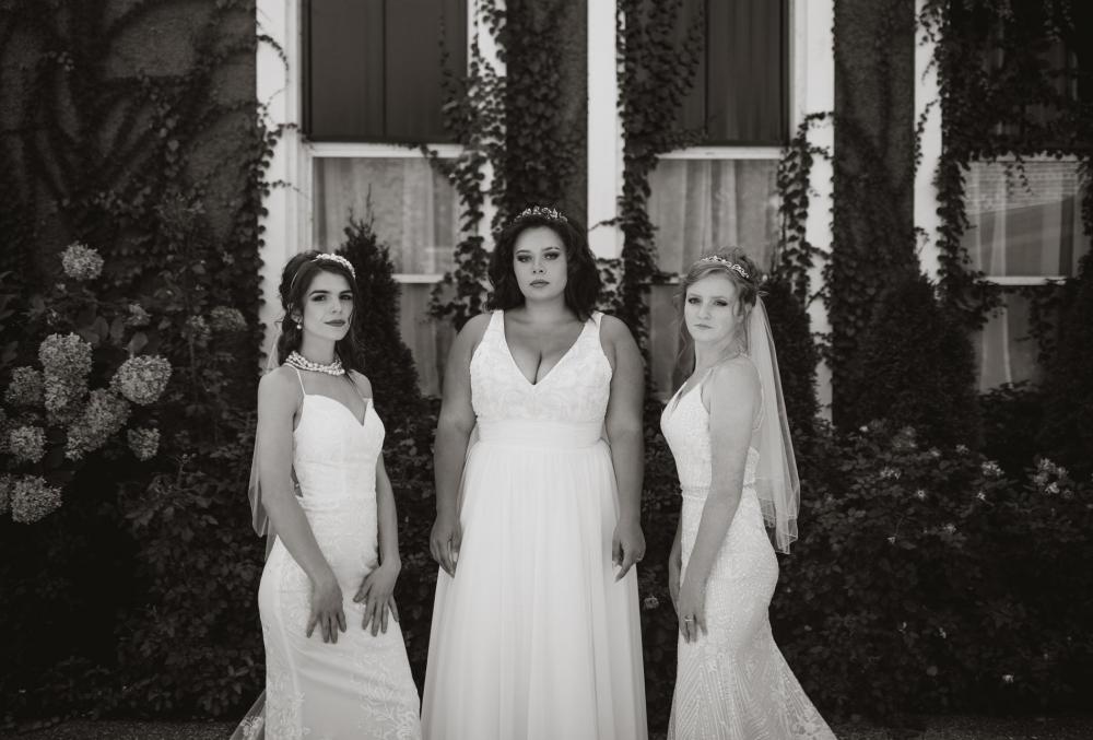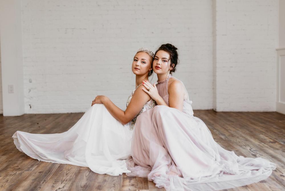 The main focus of this shoot was the brides, so the rest of the shoot was kept classic and simple to help them take center stage. The most important thing was finding dresses that fit Anya's vision, and Expressions in Silk Bridal provided perfect gowns for the occasion! Anya admits, "I did tell the bridal shop owner that I wanted more classic gowns, no dark or cream-colored dresses. Although I also wanted a mix of models and sizes to show beauty in all forms!" Though she was hesitant about the pink gown at first, Anya ended up loving the way it fit into the scene.