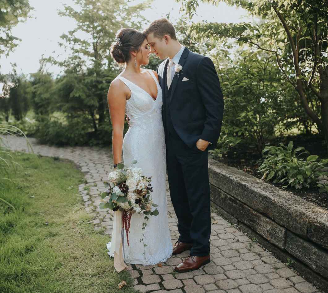 The model wore a fitted Galina lace dress with a mermaid silhouette from David's Bridal. It’s simple yet elegant design aligned with the overall theme and surely kept the bride cool while in the hot, outdoor location. “The day of the shoot was the hottest of the summer. It was 95 degrees with a heat index well over 100 degrees,” Jeri says. “Andi of Something Blue Stylists pulled off hair and makeup magic. You would never know we were sweating buckets.” (We agree that’s a feat!)