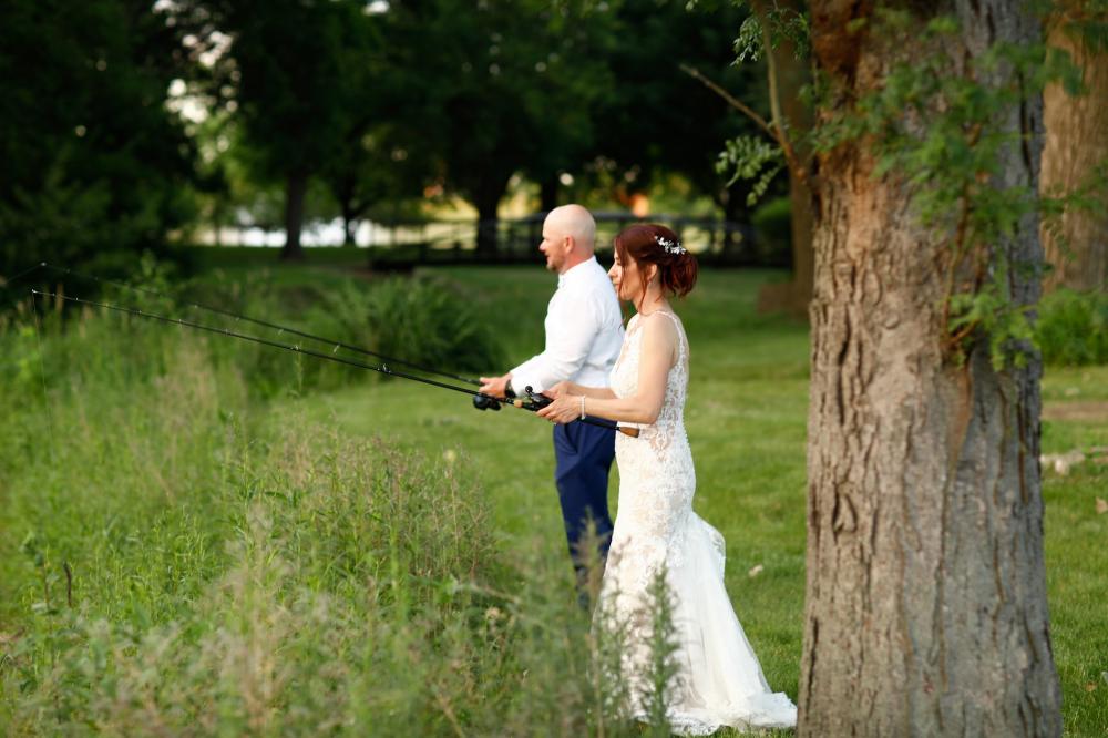 Although Peter and Angela weren’t sure where to begin their planning, they did know the venue was most important to them. Friends tried to encourage them to pick a date first, but they decided to see what the venue had available before picking their date. Once they had the venue, Google searches helped them a lot, but it was their love for fishing that inspired them most. Angela explains, “We are very big into fishing. We incorporated it by doing fishing-related favors and treats.”
