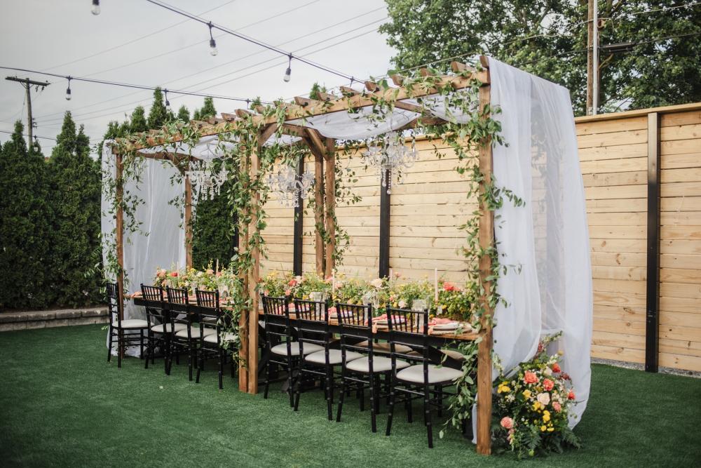 We love that this shoot highlighted the newer outdoor spaces that The Ivory Foundry has to offer. Beth raves, "We have a soft spot for The Foundry and its hidden gem aesthetic. It fit the idea of mixing luxury into the city." With a luxurious Astroturf patio for your guests to dine on and dance the night away, this space is perfect for any kind of outdoor ceremony!