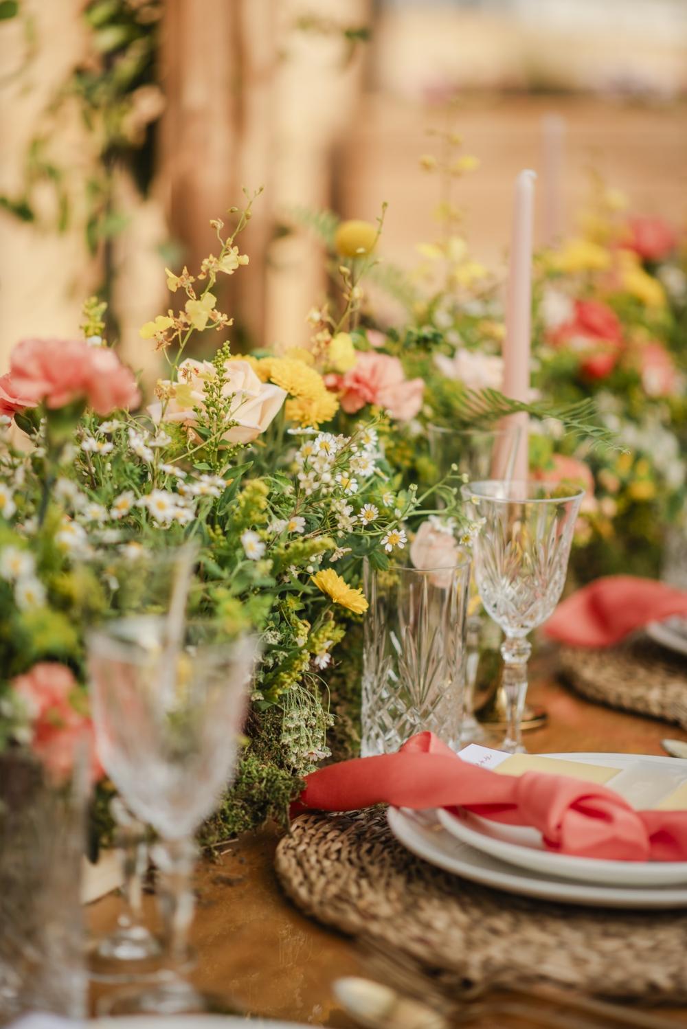 Just as everyone was beginning to wish for sweater weather and pumpkin spiced everything, this vendor team dreamed up the perfect shoot to transition from summer to fall. "We really wanted to bring in fun colors combined with a luxury outdoor aesthetic. My ultimate goal was to create a vision of fun colors, wildflowers and high end," Beth Waterman, the planner for this shoot, explains. Despite the heat of the fleeting summer days, this shoot went off without a hitch!
