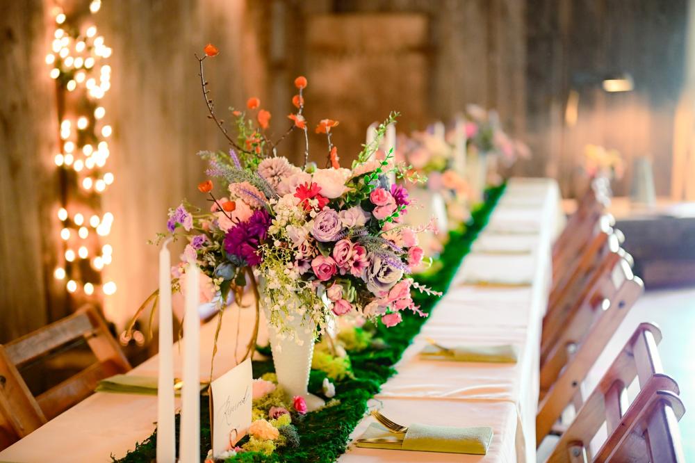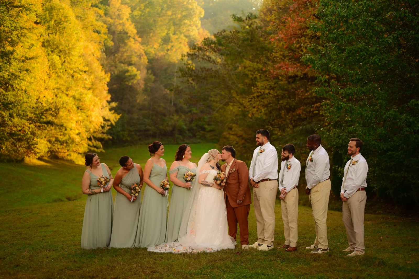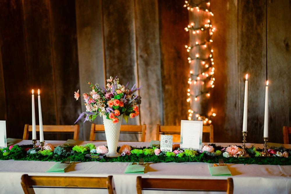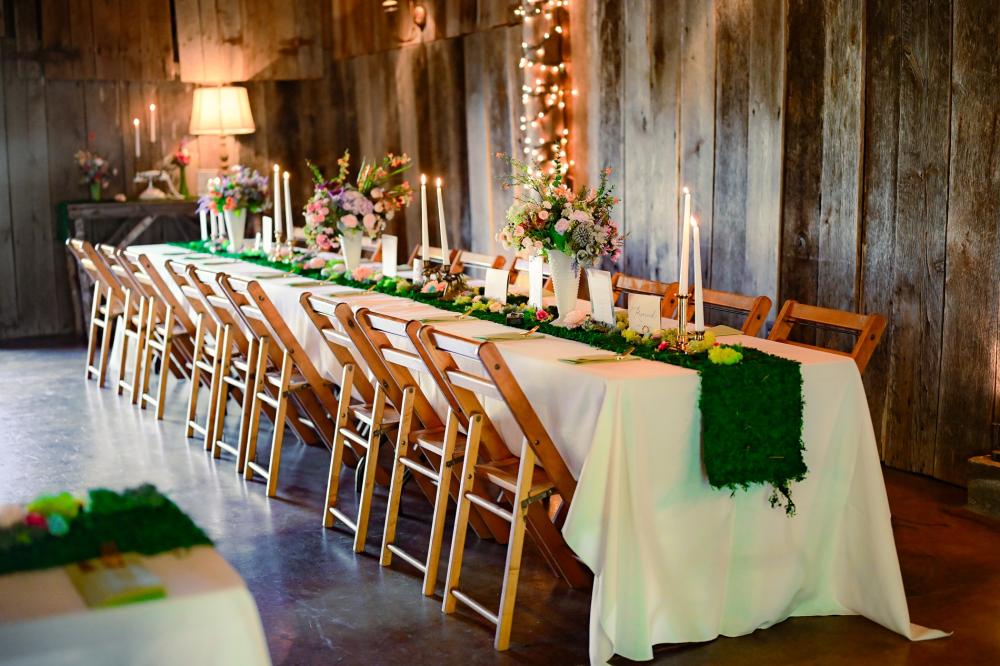 The first idea that Destiny and Drew had when planning their wedding was that they wanted something a little woodsy with a hint of cottagecore whimsy and romanticism. Once they settled on having their nuptials in Tennessee, Destiny and Drew really dove into the rustic theme! Destiny shares, "We used a lot of pastels and mixed in fall colors for the season. We wanted to go for the cottagecore, fairytale kind of vibe." Some of the key details to their day were the thirty milk glass vases for the centerpieces and the faux moss runners on the table. We love how Neeley Photography captured every detail with the same dreamy style!